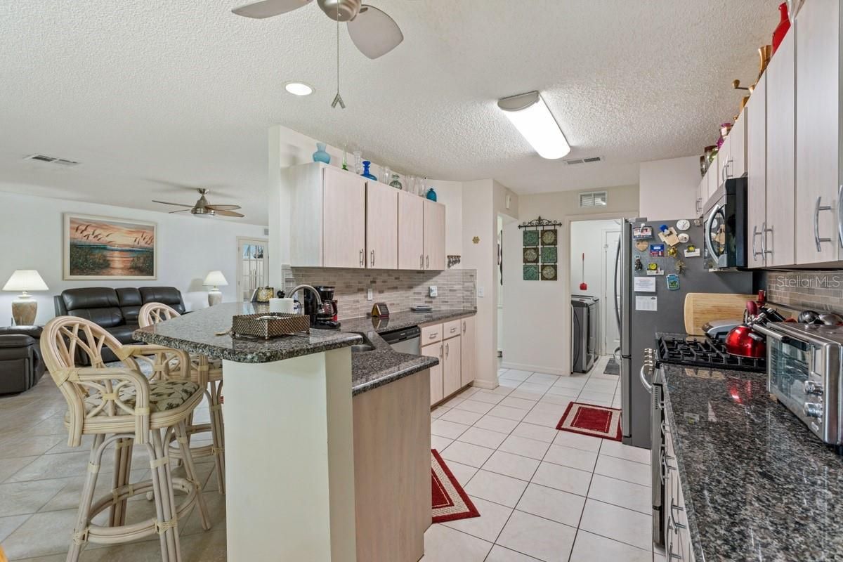 - Ceiling Fan(s), Kitchen/Family Room Combo, Main Level Primary, Open Floorplan, Stone Counters, Thermostat, Walk-In Closet(s)
