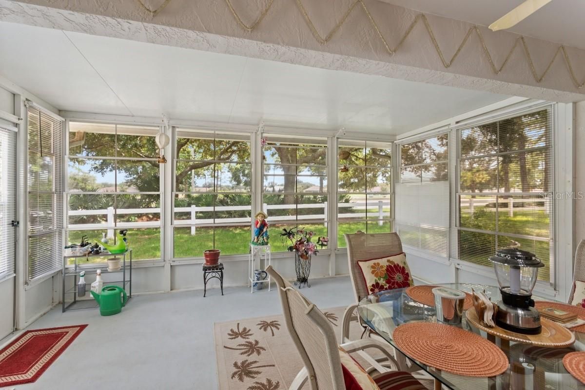 Charming 2 bedroom & 2 bathroom + office, 2 car-garage home nestled on a lush 7,405 Sq.Ft lot located on a quite and peaceful street in the sought out neighborhood of Providence in the 55+ community of On Top of the World. This well maintained home features a rocked front yard, large open spaces with high ceilings and wide windows that allow plenty of natural light to flow through out all the rooms, lots of closet space, walk-in showers in both bathrooms, and a large modern kitchen with stainless steel appliances that opens up to a breakfast nook with large bay windows. As you enter, your are greeted by a large living room/ dinning room with a skylight for extra natural brightness followed a spacious closed-in rear porch sitting area with panoramic views of large green trees and 17th and 18th fairways of the neighborhood's golf course. Some updates include: roof (2020) , A/C system ( 2019), a gas powered Generac generator, solar panels and energy efficient windows that keep the electric bill low. Please click on the Virtual Tour Link to see a walkthrough video of your new home.
