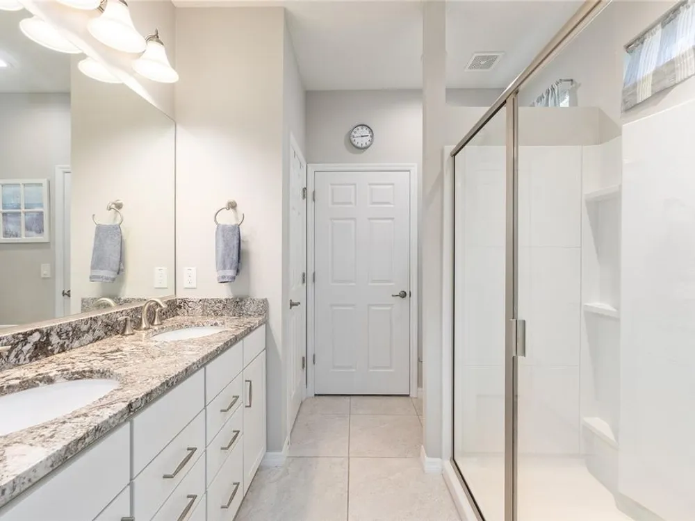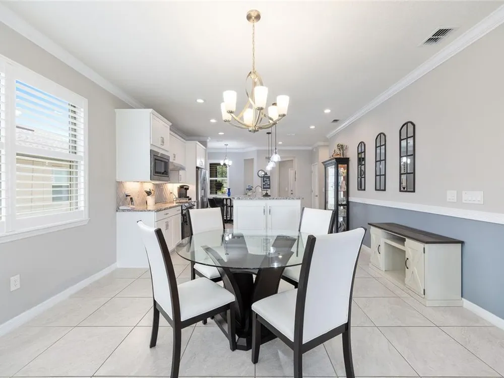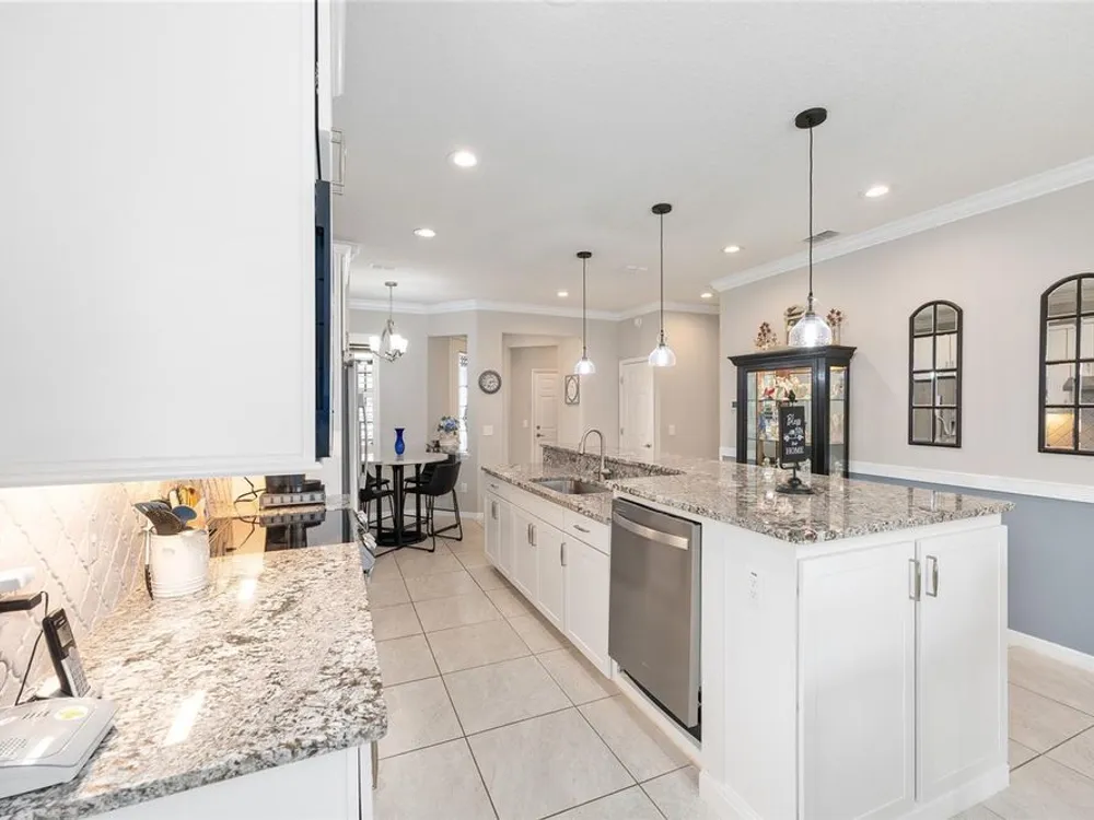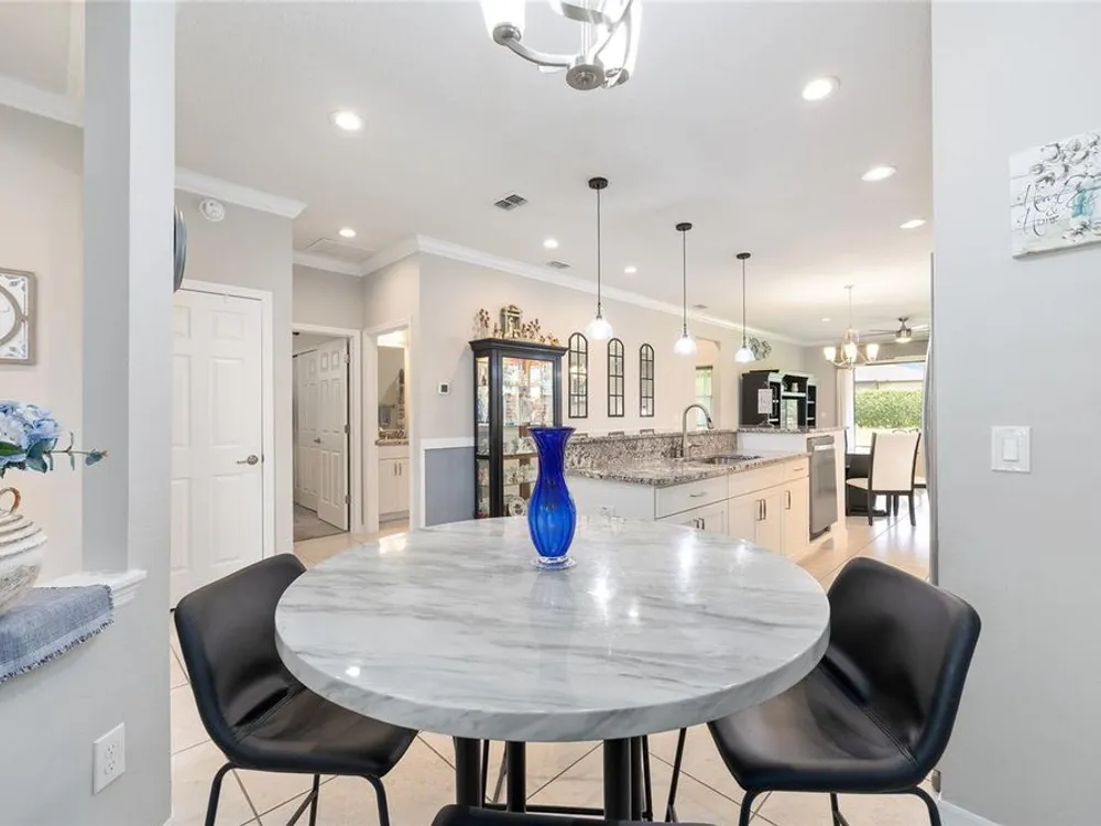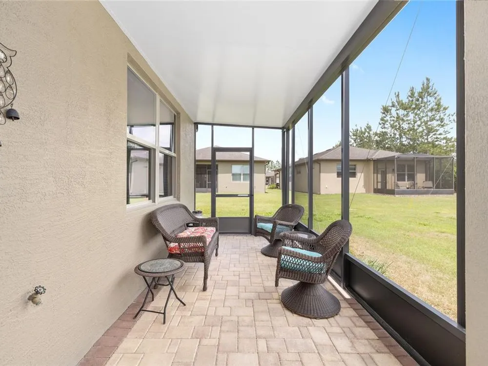 Experience the ease of carefree living in this stunningly designed Steel Creek garden series model situated within the gated 55+ Stone Creek golf community. Overlooking a private nature berm, this exceptional home blends serenity with resort-style amenities, all while offering the convenience of professionally managed lawn and landscaping maintenance. Inside, the thoughtfully crafted open living plan is bathed in natural light, enhanced by sleek tile flooring, Plantation shutters, LED downlighting, and exquisite crown molding throughout the main living areas. The chef-inspired kitchen is a dream, featuring a cozy dining nook, stainless steel appliances—including a comfort-height dishwasher and vented range hood—Shaker-style cabinetry, gleaming granite countertops, and a spacious island with stylish pendant lighting. Retreat to the Owner’s Suite, where a generous walk-in closet and oversized window frame tranquil nature views, inviting relaxation. A sliding barn door leads to the spa-like ensuite bath, complete with a step-in shower with a fiberglass surround, two transom windows for natural illumination, and a luxurious granite-topped double vanity. Outside, the screened-in lanai and extended birdcage patio offer a private escape overlooking the serene nature berm—an ideal spot to unwind and savor the beauty of your surroundings. Embrace the exceptional lifestyle of this vibrant community, featuring a 24/7 staffed gated entrance for security and peace of mind. Luxury-inspired amenities include heated pools, a state-of-the-art fitness center, a spa, and relaxing hot tubs and saunas. Stay active with pickleball, bocce, tennis, and a softball field, while a dedicated lifestyle staff curates entertainment, activities, and special events to foster connections. Just beyond the gates, enjoy a golf course, pro shop, and restaurant—perfect for socializing and unwinding. Make your move today and experience resort-style living at its finest!