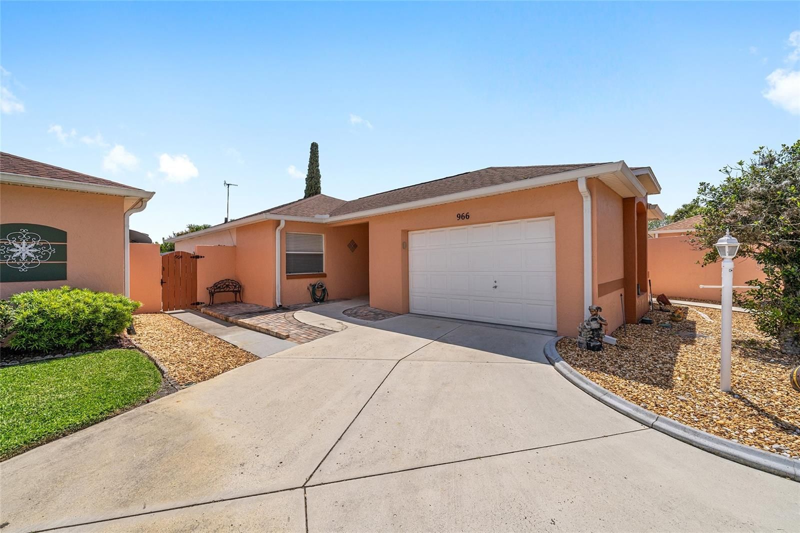 Welcome to this EXPANDED BAJA COURTYARD VILLA, a 2-bedroom, 2-bathroom TURN-KEY home with NO BOND & GOLF CART INCLUDED! Step inside to find TILE FLOORING throughout the living areas and CROWN MOLDING adding an elegant touch throughout the home. The front of the home features ROCK LANDSCAPING for easy curb appeal with minimal upkeep. The kitchen is sure to impress with CROWNED WHITE CABINETS, GRANITE COUNTERTOPS, a TILE BACKSPLASH, PENDANT LIGHTING, and an extended island with cabinets, making it as stylish as it is functional. The primary suite features a WALK-IN CLOSET and an attached EN SUITE bathroom appointed with an UPGRADED VANITY, CHAIR RAIL detailing, and a TILED WALK-IN SHOWER, providing a private and relaxing retreat. The guest bedroom offers a BUILT-IN CLOSET, and the guest bathroom is well appointed with WHITE CABINETS, GRANITE COUNTERTOPS, and a TUB/SHOWER COMBO. The FLORIDA ROOM is a true bonus space, complete with a MINI SPLIT for year round comfort and VAULTED CEILINGS. Step outside to your PRIVATE BACKYARD with LUSH GRASS, surrounded by a PRIVACY WALL, featuring a PATIO PAD and a dedicated SIDE PATIO AREA perfect for grilling and outdoor entertaining. Roof (2021) HVAC (2017) Enjoy all The Villages lifestyle has to offer with recreation centers, shopping and dining, and just minutes from Spanish Springs and Lake Sumter Landing Town Squares!