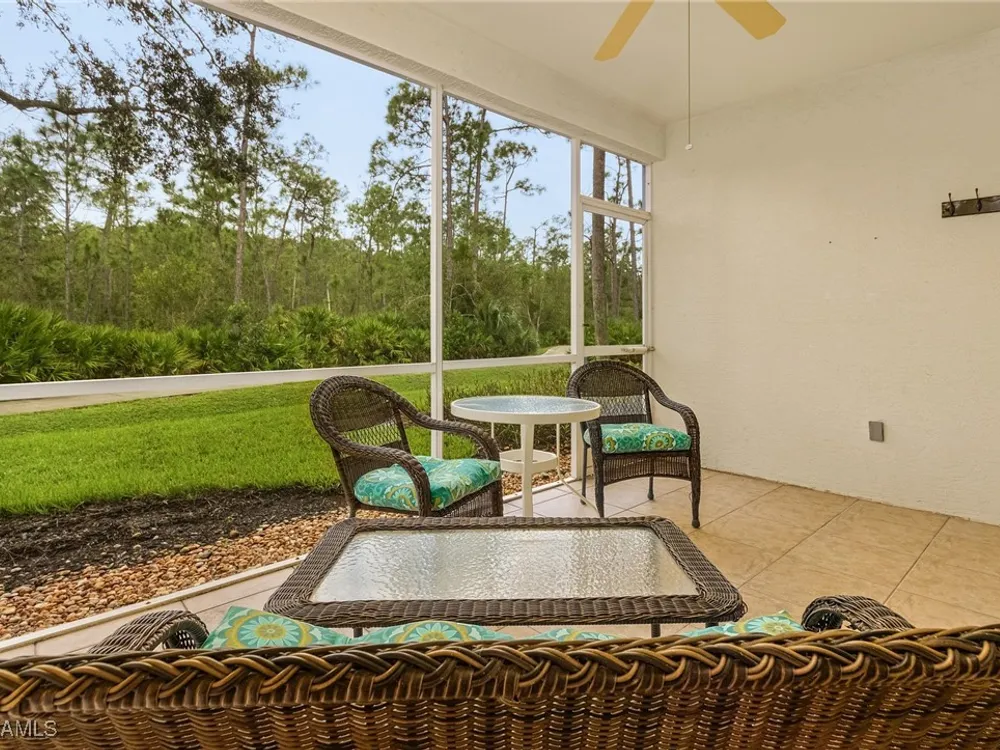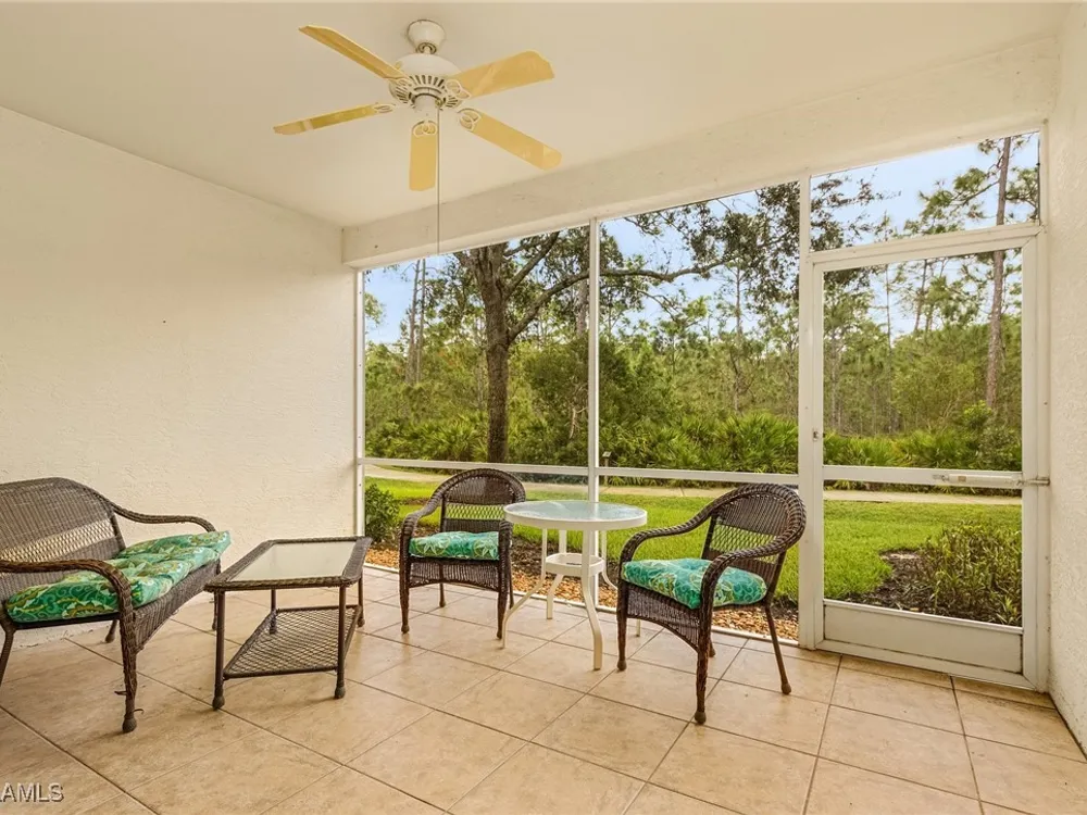 Here is your RARE opportunity to own a charming 2 bedroom, 2 bath condo in the HIGHLY DESIRABLE Colonial Country Club in Fort Myers! This 2006 1st floor condo feels MUCH larger than 1,200 sf due to OPEN split floor plan and high ceilings. This unit is in the Preserve IV community. If you are looking for a peaceful tranquil home setting, look NO MORE!! Just open the 3 large sliding doors to lanai to your amazing view shared by neighboring bunnies, squirrels, and birds. The Preserve Boardwalk Path passes through the back yard next to the lush green vegetation so you can enjoy a leisurely stroll any time of day or evening. No time like NOW to bask in the Florida sunshine at the private Preserve IV Community Pool. This PRESTIGIOUS community has it ALL; World Class 18-hole Golf Course (Pay per play), Plenty of Social Activities, Formal/Informal Dining, Resort Style Pools, Full Spa, State-of-the-Art Fitness Center, Tennis, Pickleball, Bocce Ball, Business Center, and so much MORE! This community is approx. 20 minutes from RSW airport, close to beaches, and terrific restaurants in downtown Ft. Myers. Don’t miss this RARE opportunity to live YOUR DREAM Florida Lifestyle! SEE BOTH VIDEOS