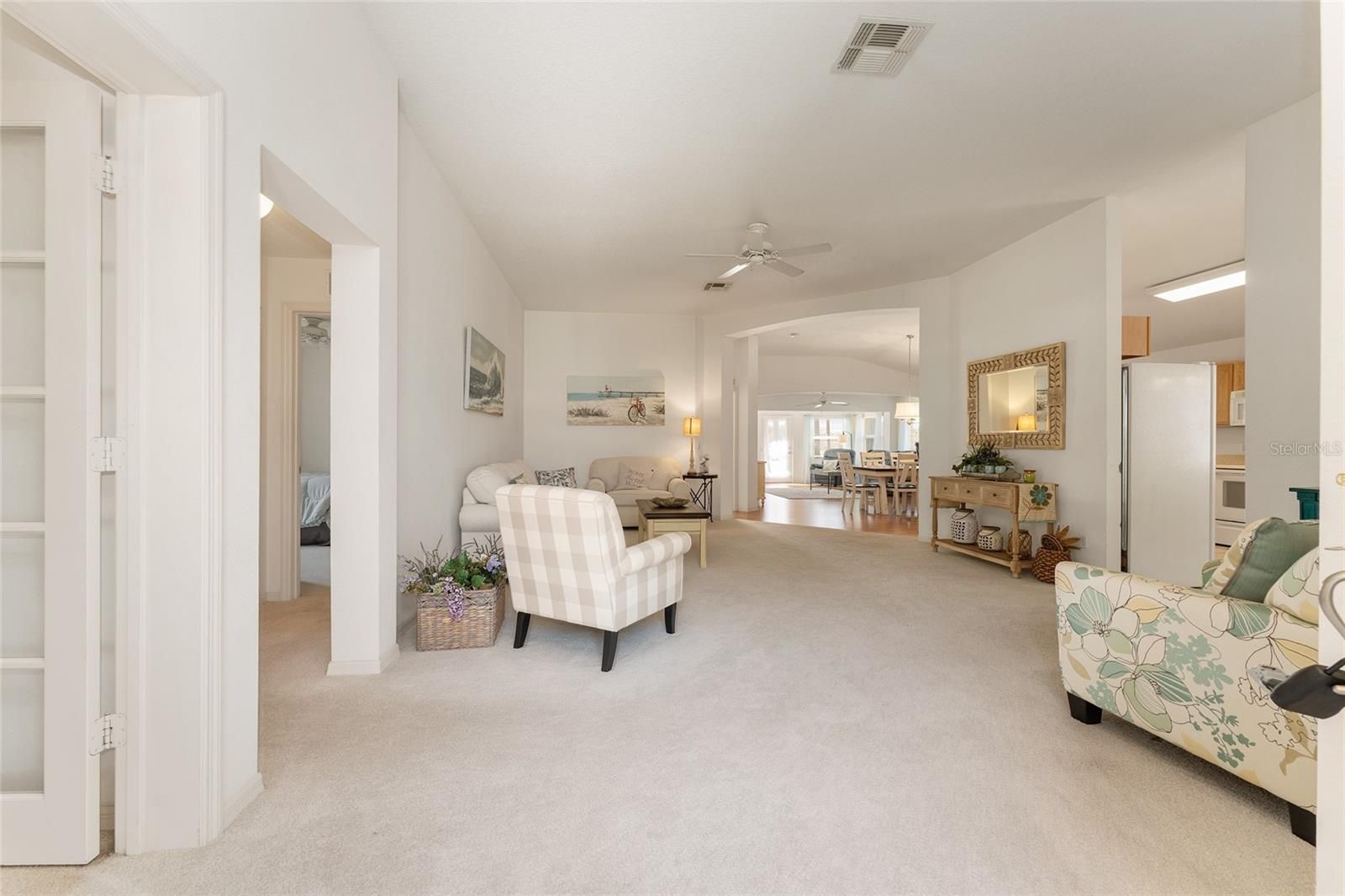 This spacious 2-bedroom, 2-bath home offers an inviting layout with a bonus sitting room that works beautifully as a den, office, or dedicated work-from-home space. Step through the front door and immediately feel the openness of the main living areas, designed for comfort and easy everyday living. The property is fully landscaped and enjoys peaceful golf-course views from the backyard—an ideal setting for morning coffee or relaxing afternoons. Major updates provide added peace of mind, including a roof replaced in 2020 and an HVAC system updated in 2021. Located within the gated 55+ community of On Top of the World in Ocala, residents enjoy access to an impressive array of amenities. The community features multiple golf courses, fitness centers, pools, recreational clubs, walking trails, and a vibrant calendar of activities. As a golf-cart-friendly community, getting around is both convenient and enjoyable. A comfortable home paired with a lifestyle rich in amenities—this property offers a wonderful opportunity to enjoy all that On Top of the World has to offer.