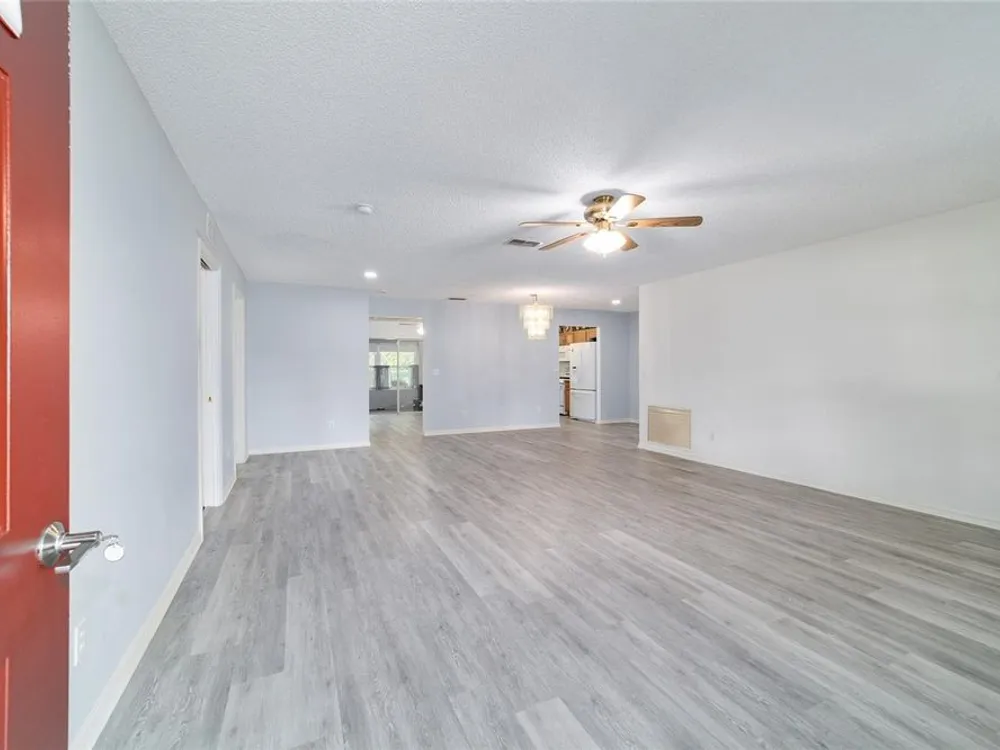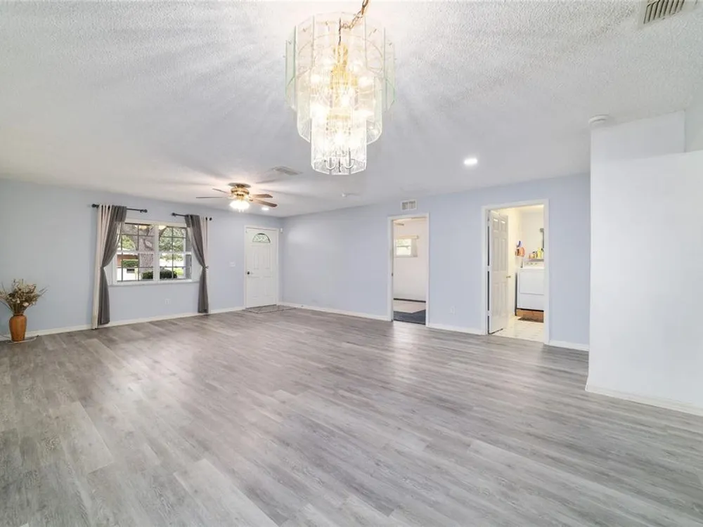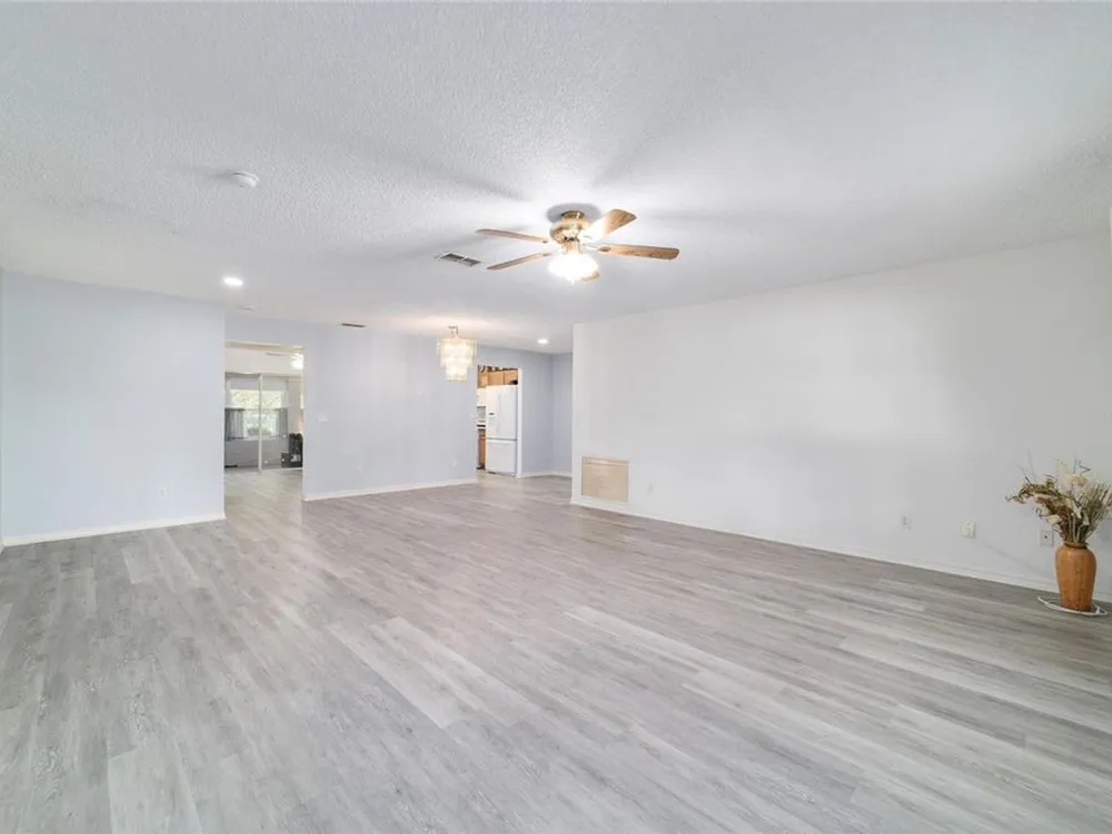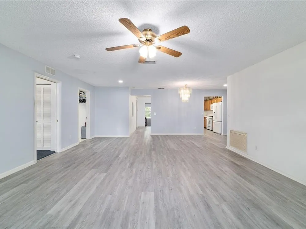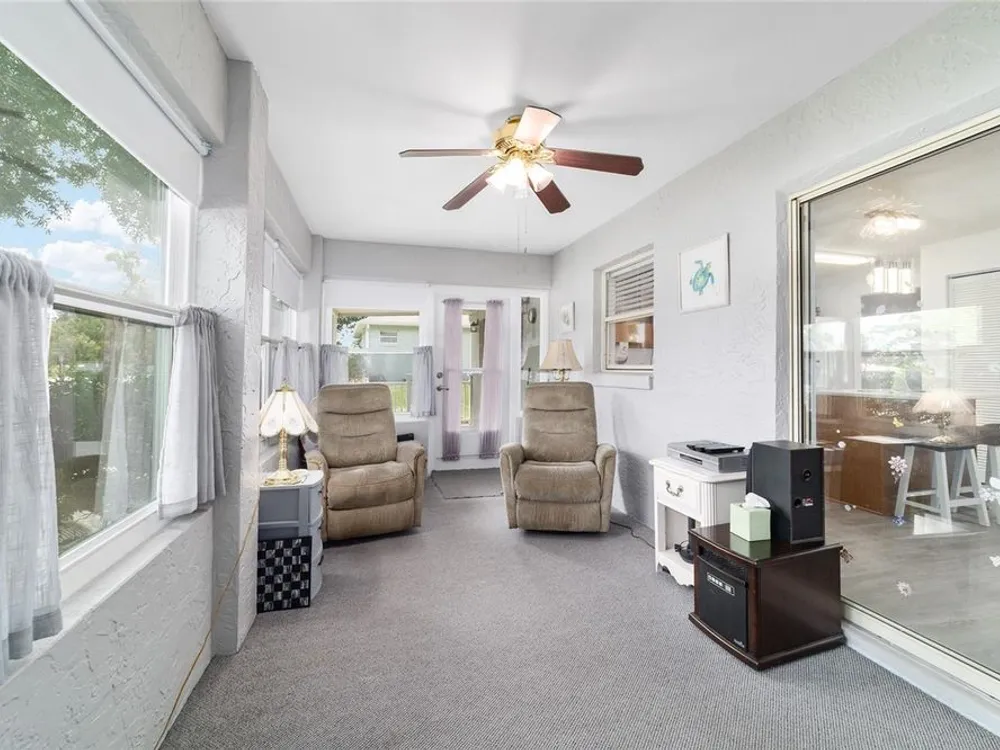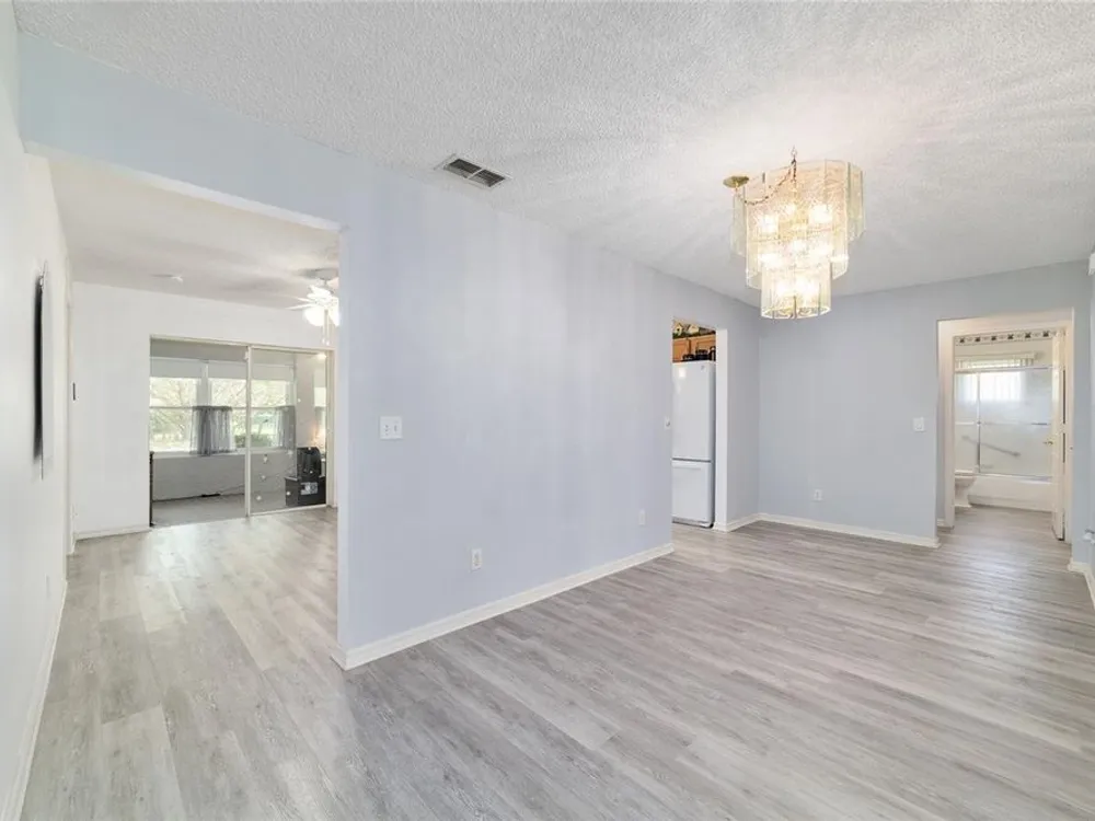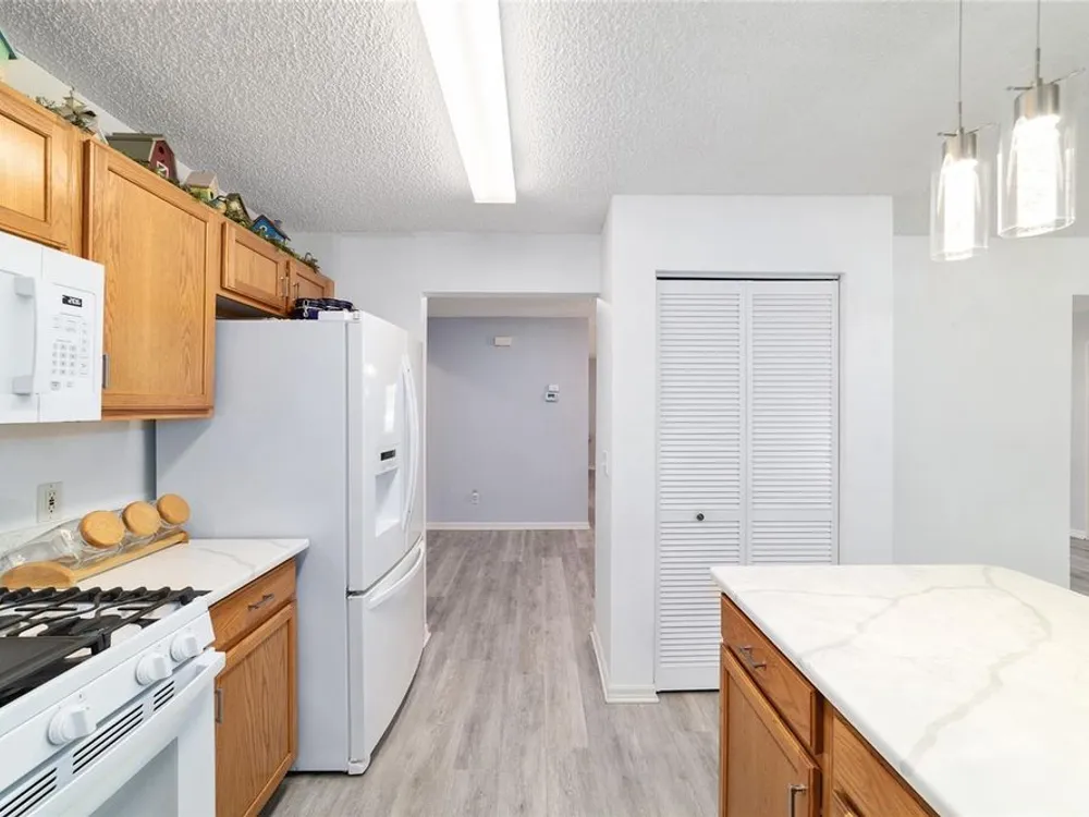 Nestled in desirable Crescent Ridge, this beautifully updated 3-bedroom, 2-bath corner home is just steps from Veterans Park and the community mailboxes. Inside, enjoy newly installed luxury vinyl flooring, fresh paint, and generous closets throughout, including a master suite with a spacious walk-in closet. The kitchen is a chef's delight with quartz countertops, a center island with designer lighting, gas stove, and all appliances included, while the baths feature a walk-in tub and raised toilets. Natural light fills the enclosed lanai under air, and a generous laundry room with washer, dryer, and hanging racks adds everyday convenience. Additional highlights include leaf-guard gutters, water softener system, inviting front porch, private fenced patio, and a garage work area with extra shelving. With its thoughtful updates, modern comforts, and ideal north/south exposure, this home is move-in ready--the sellers have already relocated, making it the perfect opportunity for a new buyer to step in, fall in love, and make it their own.