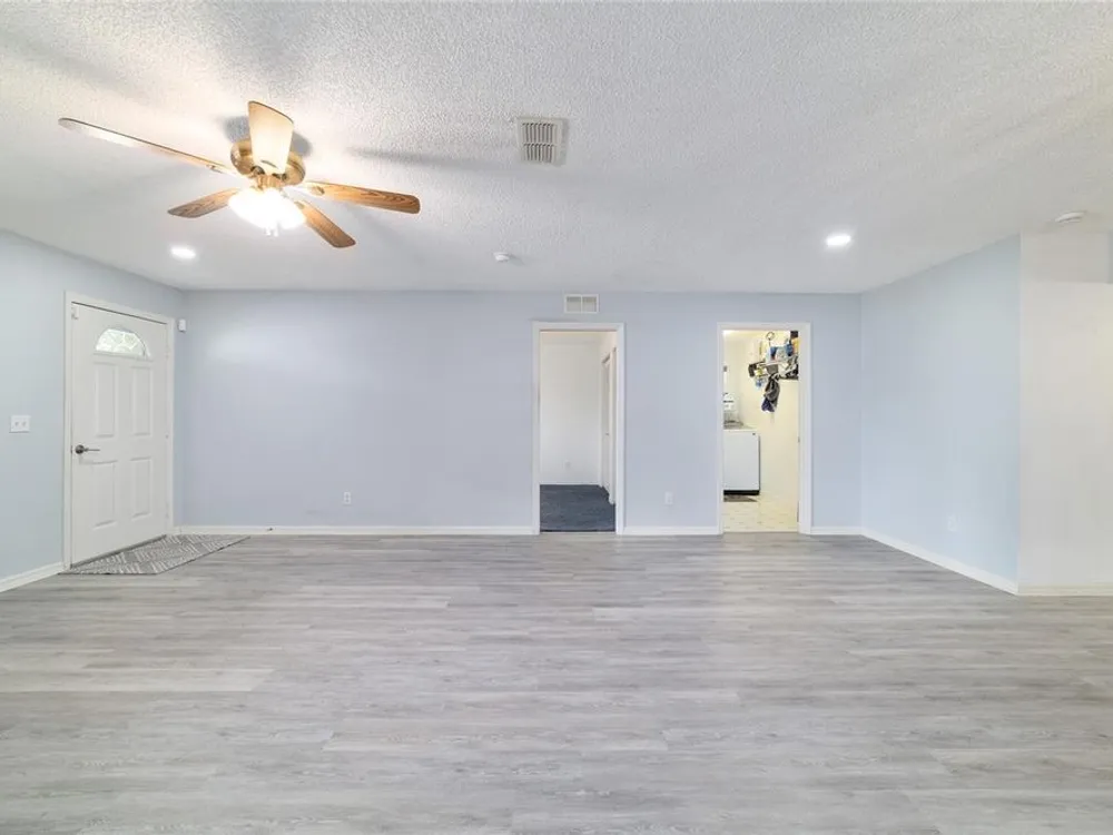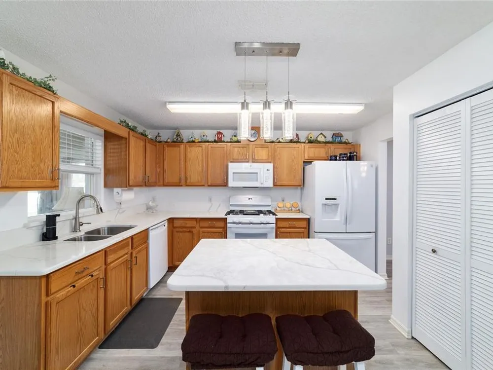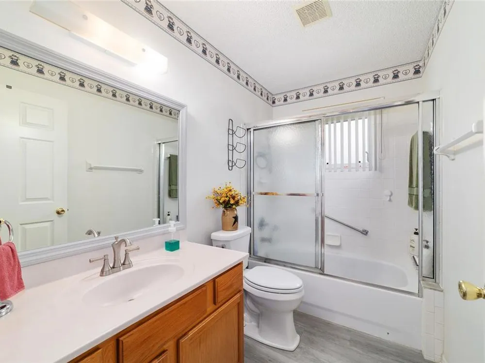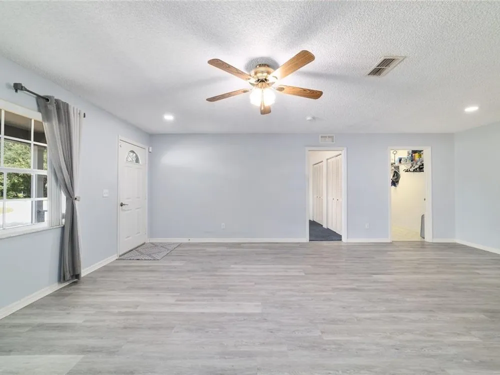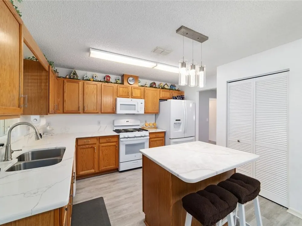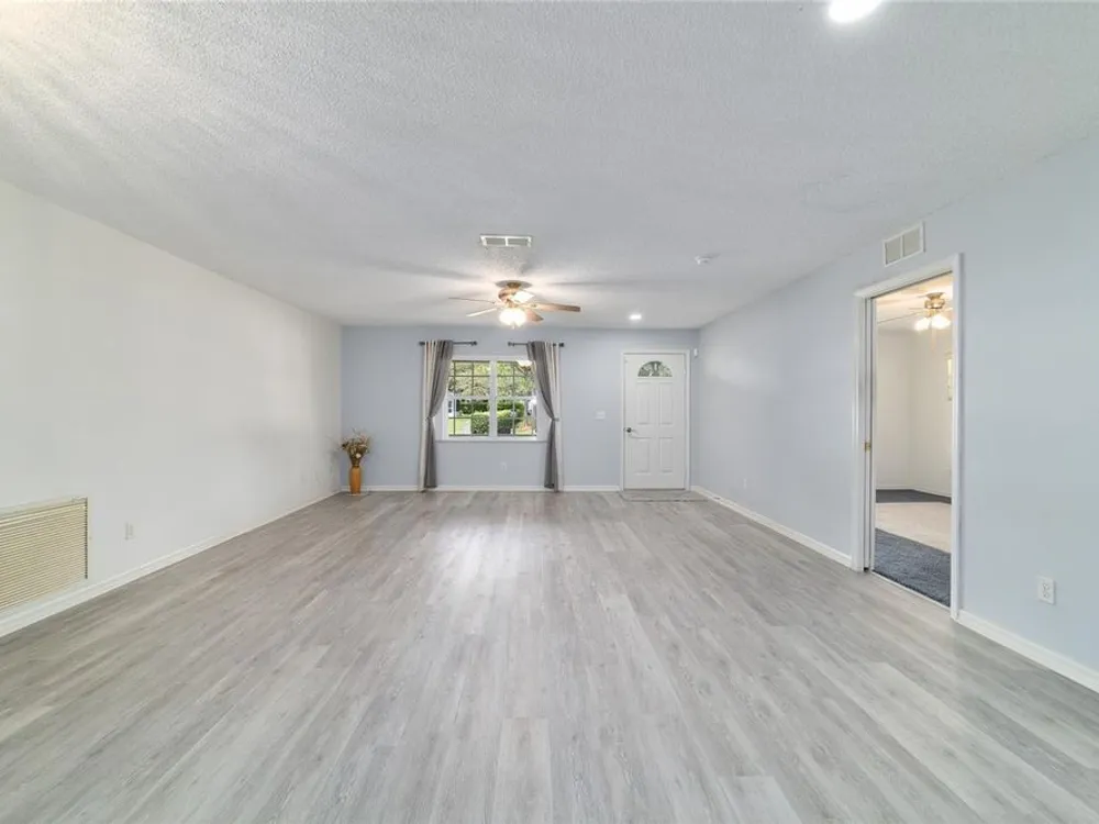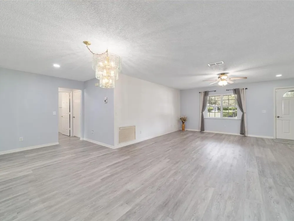 Nestled in desirable Crescent Ridge, this beautifully updated 3-bedroom, 2-bath corner home is just steps from Veterans Park and the community mailboxes. Inside, enjoy newly installed luxury vinyl flooring, fresh paint, and generous closets throughout, including a master suite with a spacious walk-in closet. The kitchen is a chef's delight with quartz countertops, a center island with designer lighting, gas stove, and all appliances included, while the baths feature a walk-in tub and raised toilets. Natural light fills the enclosed lanai under air, and a generous laundry room with washer, dryer, and hanging racks adds everyday convenience. Additional highlights include leaf-guard gutters, water softener system, inviting front porch, private fenced patio, and a garage work area with extra shelving. With its thoughtful updates, modern comforts, and ideal north/south exposure, this home is move-in ready--the sellers have already relocated, making it the perfect opportunity for a new buyer to step in, fall in love, and make it their own.