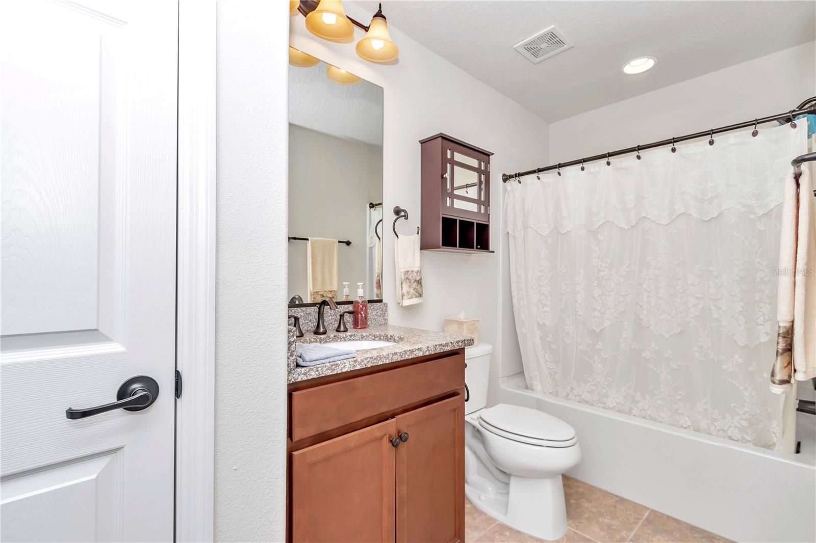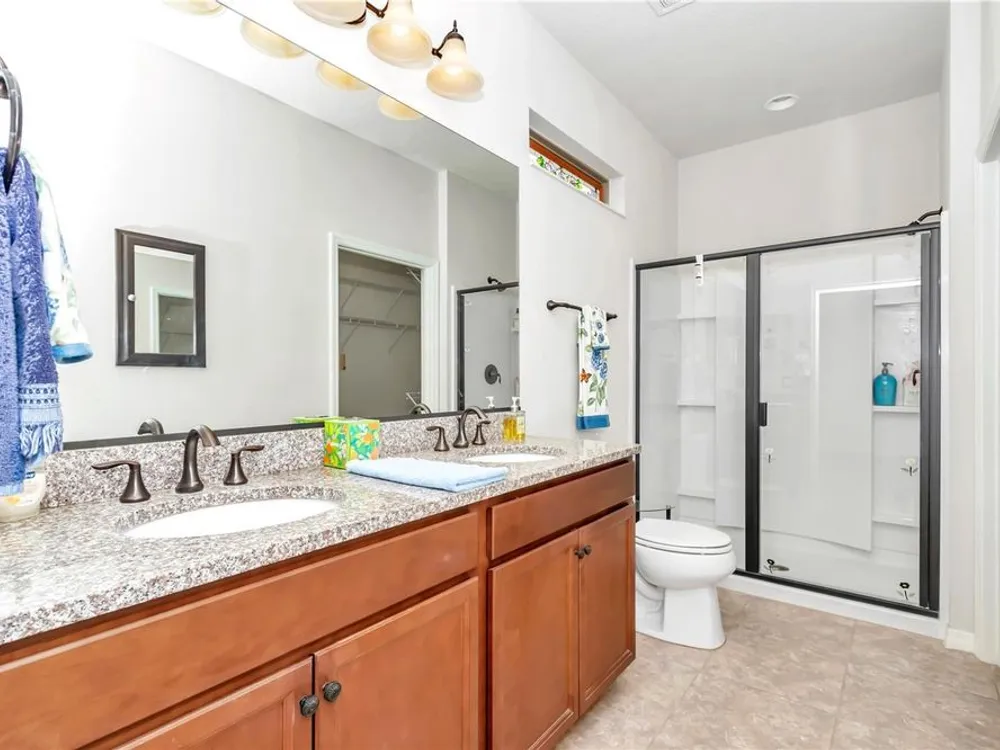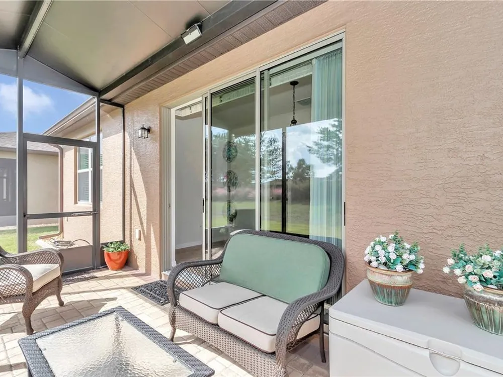 This exceptional two-story garden home, located in Del Webb’s sought-after Stone Creek gated golf community, is a rare opportunity! Offering 3 bedrooms and 3 baths, this home provides low-maintenance, resort-style 55+ living with yard care included in the $398/month HOA. The main floor features brand-new, elegant wood laminate flooring that flows seamlessly through the open-concept layout, making it ideal for entertaining. The kitchen shines with granite countertops, stainless steel appliances (updated approximately 4 years ago), and impressive 42" upper cabinets, providing ample storage space. The main-level primary suite offers comfort and convenience, alongside a guest bedroom and a fully remodeled bathroom featuring a newly installed walk-in shower with additional storage cabinetry. Upstairs, your guests will enjoy the privacy of a complete suite with a bedroom, ensuite bath, living area, and a spacious walk-in closet. The versatile loft space is perfect for a home office, hobby area, or entertainment room. This home has a few upgrades to mention, including stylish lighting, custom ceiling fans, a tasteful tile backsplash, and quality blinds throughout. Outside, enjoy the benefits of an optionally screened in garage with epoxy flooring, a covered screened lanai with stone pavers, and a beautifully landscaped backyard with plenty of space between neighboring homes. Stone Creek’s array of amenities includes walking trails, a clubhouse, a golf course, fitness centers, resort-style and indoor pools, tennis and pickleball courts, and much more. Plus, you’re just minutes away from the World Equestrian Center, top dining, shopping, and entertainment! Schedule your showing today and don't miss your opportunity to become apart of the equally peaceful and active lifestyle of Del Webb's Stone Creek Community.