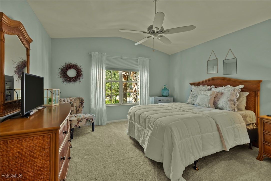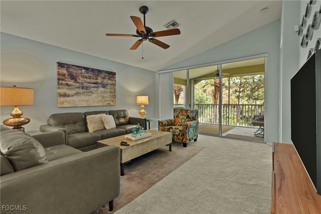 HIGHLY DESIRED 1,558SF UPSTAIRS END UNIT THAT COMES TURN-KEY NICELY FURNISHED WITH NEWER ITEMS! This 2BR+Den/2BA condo has an excellent floor plan with large kitchen and high ceilings. SUPERB LOCATION AT END OF STREET NEXT TO GOLF COURSE WITH TROPICAL WOODED PRESERVE BEHIND. Recently repainted and has plush newer carpeting in main living areas with tile in kitchen & baths. Accordion storm shutters for lanai & windows. A/C replaced in 2014 and newer water heater also. This unit has an assigned carport space and exterior storage closet. Comes with SOCIAL MEMBERSHIP which provides access to all community amenities including Pay As You Play Golf. Colonial Country Club offers 18 holes of Championship Golf, Clubhouse with dining, resort style pools, fitness center, tennis, pickleball, bocce, miles of walking trails and MORE! This community is highly desired for its high quality amenities, moderate HOA fees and convenient location near restaurants, shopping, the airport and I-75. ATTRACTIVE DECOR - MOVE IN READY!