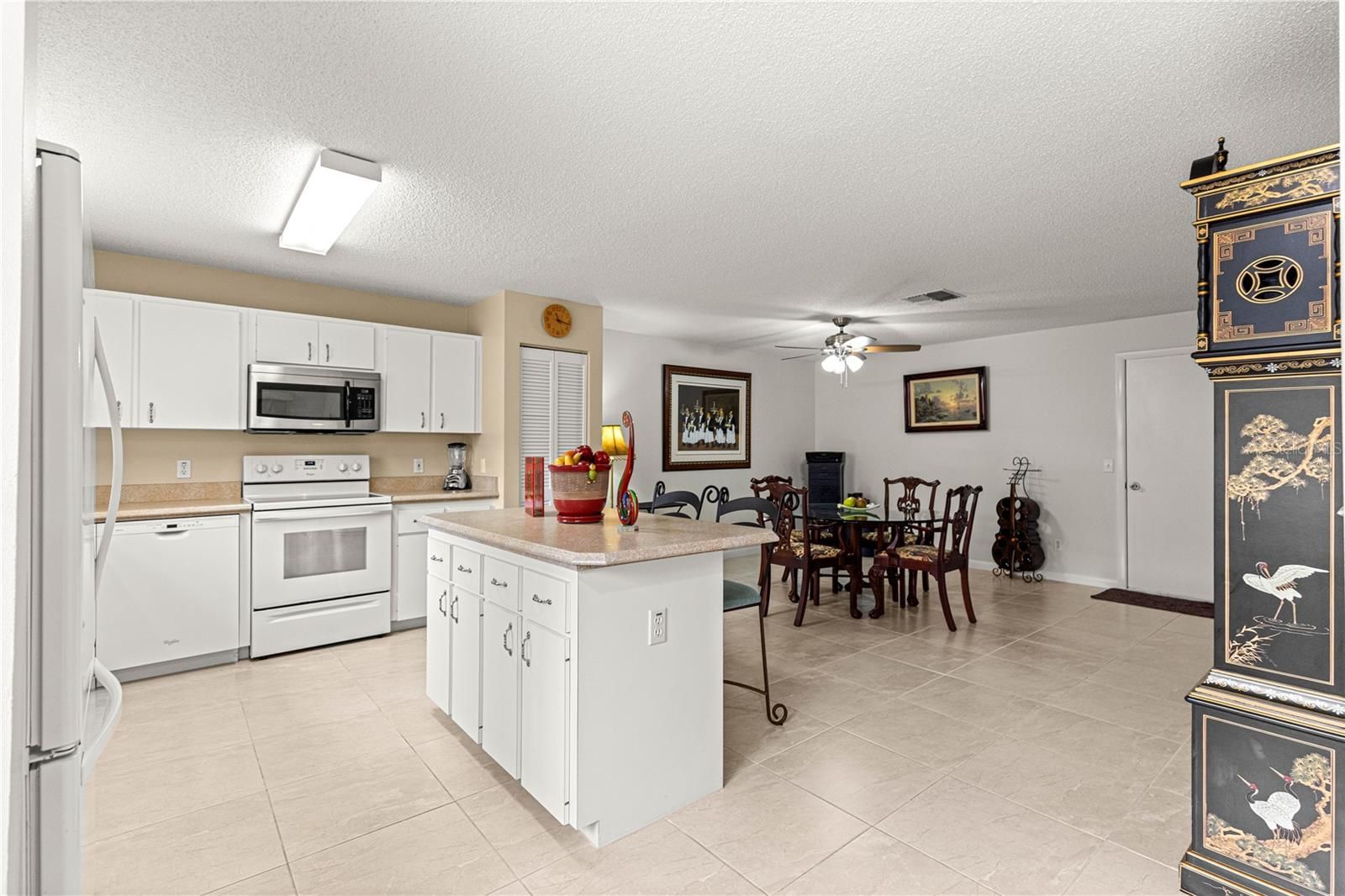 Welcome to easy, resort-style living in this beautifully maintained 2-bedroom, 2-bath villa located in Ocala’s premier 55+ community of On Top of the World. Designed for comfort and convenience, this home offers thoughtful indoor and outdoor living spaces perfect for relaxing or entertaining. Inside, you’ll love the new larger tile flooring throughout — no carpet anywhere, giving the home a clean, fresh modern feel. Also, a versatile flex space to tailor to fit your lifestyle. The bright and functional kitchen features updated countertops paired with classic white appliances and plenty of space to prepare meals or entertain with ease.  Step outside to enjoy Florida living at its best with a screened lanai for year-round comfort and a covered patio ideal for grilling, outdoor seating, or even golf cart parking. Major updates add peace of mind, including a newer HVAC system (2024) for energy efficiency and reliable comfort. Home has a 1 Car Garage with Utility sink. Best of all, this home is truly move in ready, so you can start enjoying the vibrant amenities and social lifestyle of this sought-after golf cart community right away. On Top of the World offers over 190 different clubs, swimming pools, fitness center, pickle ball courts, golf course, putting green, RC race track, RC flying field, softball field, etc. Conveniently located near shopping, restaurants, doctors and hospitals. Whether you’re looking for a seasonal retreat or a full-time residence, this villa delivers low-maintenance living in a welcoming, resort-style setting.