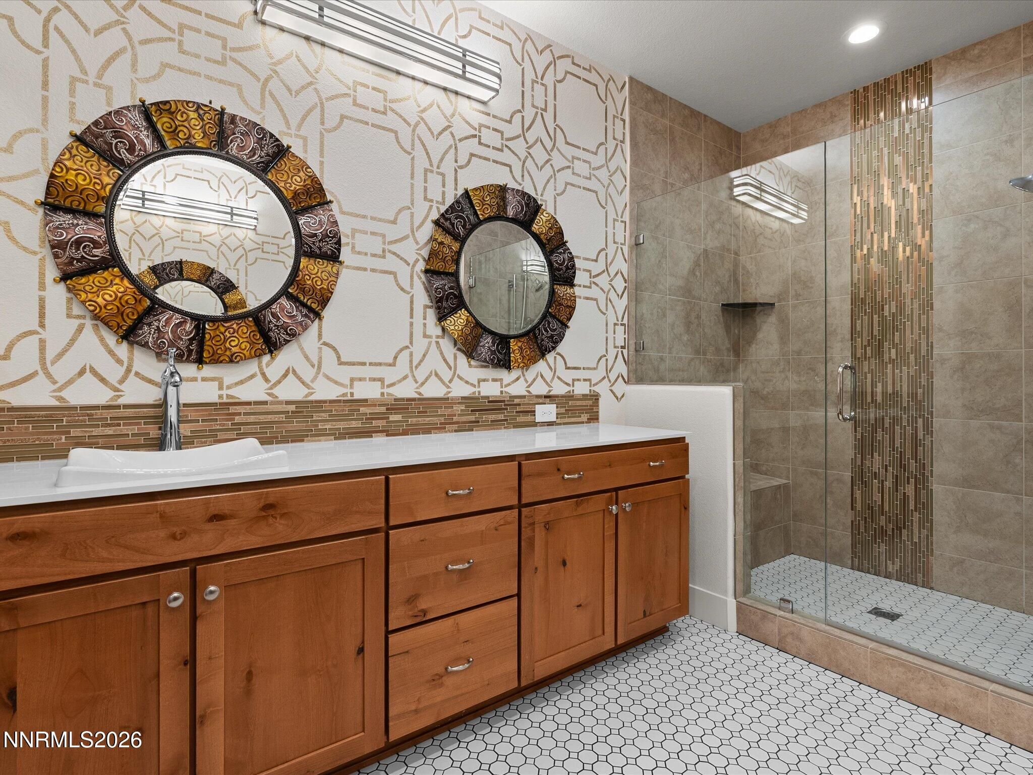Welcome to Regency Presidio, where 55+ living is redefined, and life truly begins. Ideally located just two blocks from the clubhouse, this home offers effortless access to the vibrant, amenity-rich lifestyle that makes Regency so sought after. What sets this property apart is the rare, thoughtfully designed outdoor living space, perfectly oriented to shield from Northern Nevada winds while remaining comfortably covered from the afternoon sun. Whether you're hosting under the string lights, unwinding by the fire pit, or simply soaking in the surrounding mountains, this backyard is a true extension of the home for year-round enjoyment. Inside, the kitchen makes a statement with upgraded wood cabinetry carried to the ceiling, complete with glass panel accents and recessed lighting, it blends warmth, function, and elevated design. Every detail has been curated to support a lifestyle that feels both refined and relaxed. This is more than a home! It's a place to belong. At Regency, connection, convenience, and elevated living come together in one of Reno's premier 55+ communities.