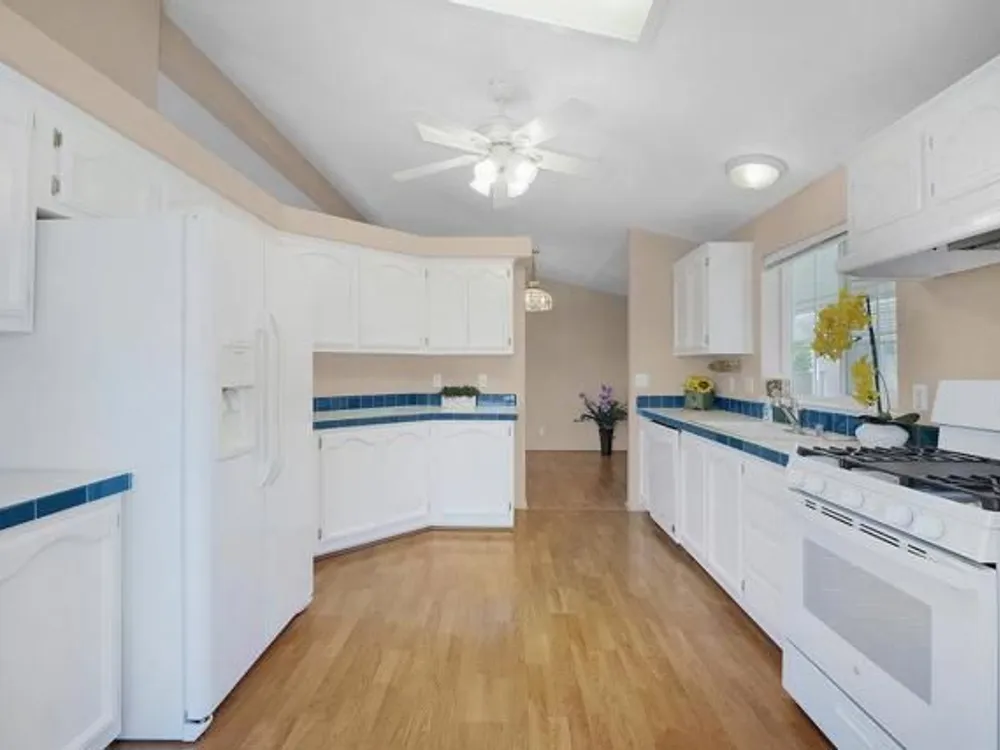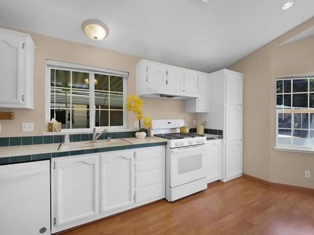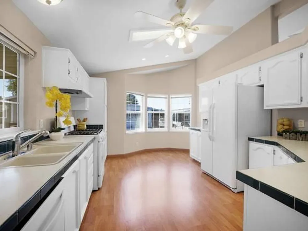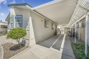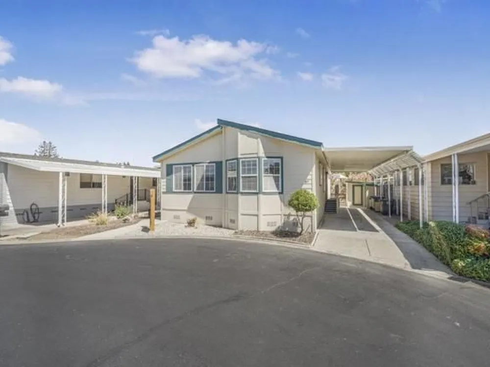 Beautifully Updated Manufactured Home in Sought-After Woodland Estates (55+/45+ Co-op Community). This well-maintained home offers all the features you're looking for in a newer manufactured property! Enjoy double-paned windows, sheetrocked walls with bullnose corners, and high clerestory windows that fill the home with natural light. The spacious kitchen includes newly painted white cabinetry, generous counter space, and a new stove. A cozy breakfast area in the bay window adds charm and functionality. The home offers 3 bedrooms, including a primary suite with a walk-in closet, deep soaking tub, separate walk-in shower, and dual vanities. New carpet in all bedrooms, new washer and dryer, new HVAC system, and condenser. Additional features include a storage shed with a workbench, and a dedicated garden tool area. Located just one home away from the greenbelt and within easy walking distance to the clubhouse and amenities!