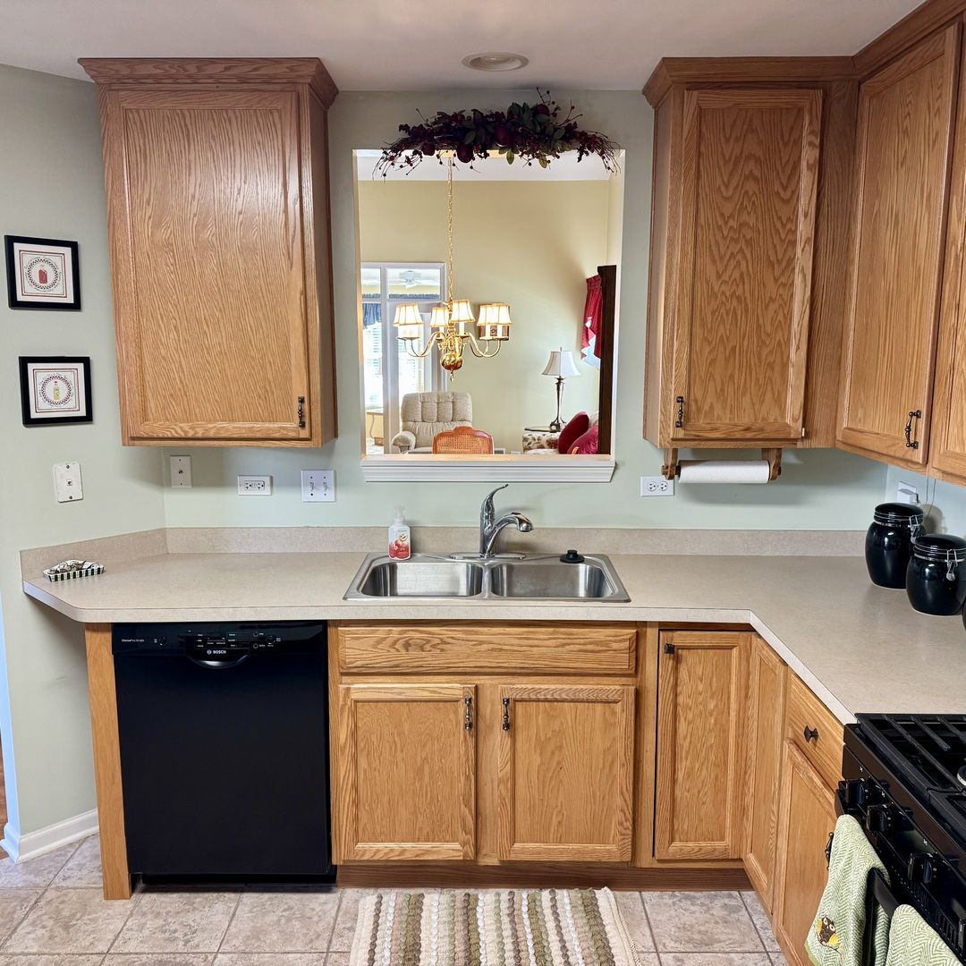 This beautiful ranch style home in the over 55 community of Bradford Place is immaculate and beautifully decorated! It features soaring cathedral ceilings, lots of windows and plenty of natural light, a large living room and full sized dining room, a great kitchen with ceramic tile flooring, plenty of cabinet and countertop space, including a cabinet with a lazy susan. The kitchen also has a double stainless steel sink. There is a big eating area, pantries, a window and like new black appliances. There is also a cutout so that you can see the dining room and living room from the kitchen. The cozy, beautiful sun room has a vaulted ceiling, lots of windows, a ceiling fan, and a door leading to the backyard. The spacious, bright master bedroom has a ceiling fan with a light, two windows, a huge walk-in closet, plus a full, private master bathroom with a shower. The shower has benches and a handrail. The nice sized second bedroom has a ceiling fan with a light and attic access. The second full bathroom has a large vanity with a sink and a bathtub/shower. This home also includes a fully drywalled deep attached two car garage with lots of shelving, two windows, an electric garage door opener, and attic access. The laundry room has a washer and dryer, a laundry tub, shelving, and plenty of cabinet space. Immediate occupancy is ok!