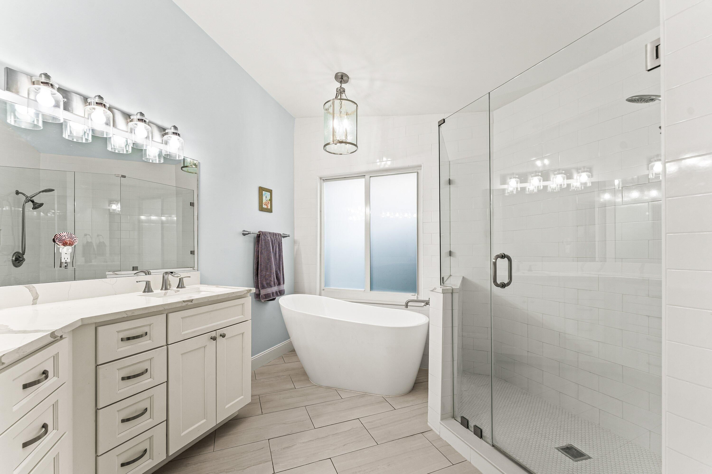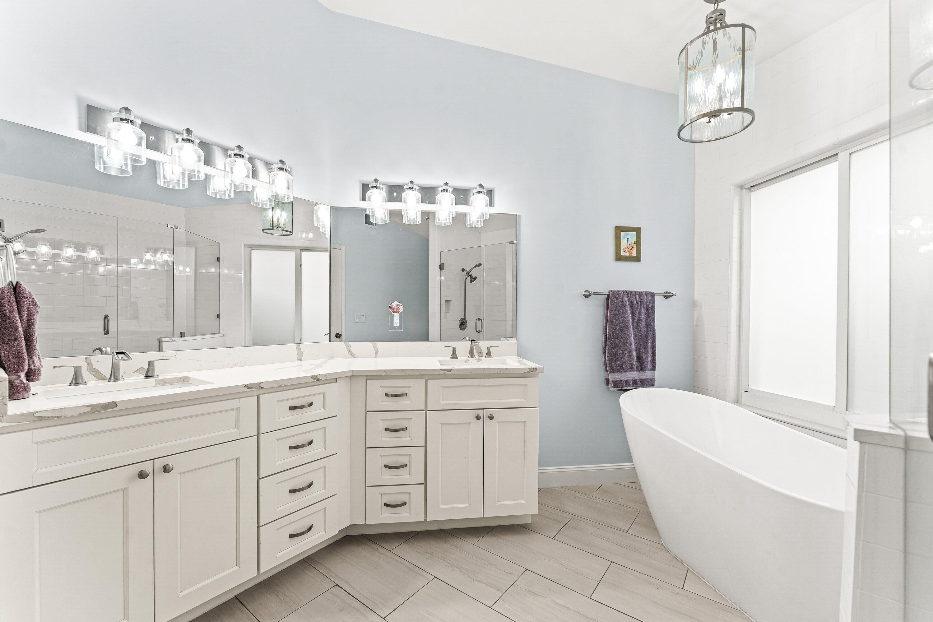 - Kitchen Island, Split Bedrooms, Impact Glass, Living/Dining Room, Eat-in Kitchen, Multiple Primary Bathrooms, Separate Shower, Soaking Tub