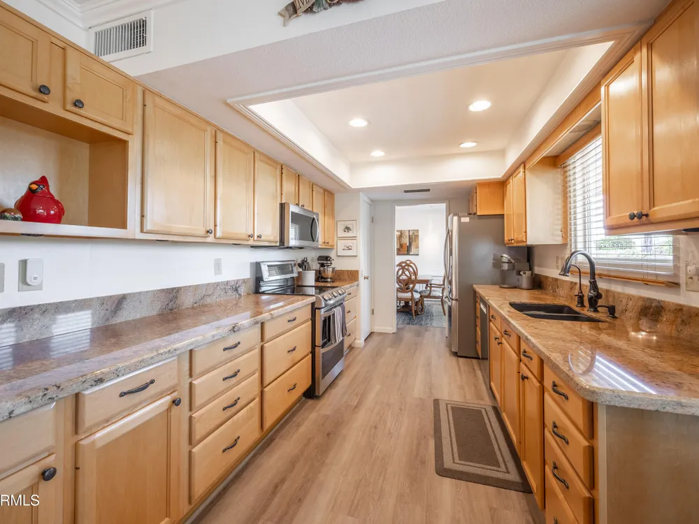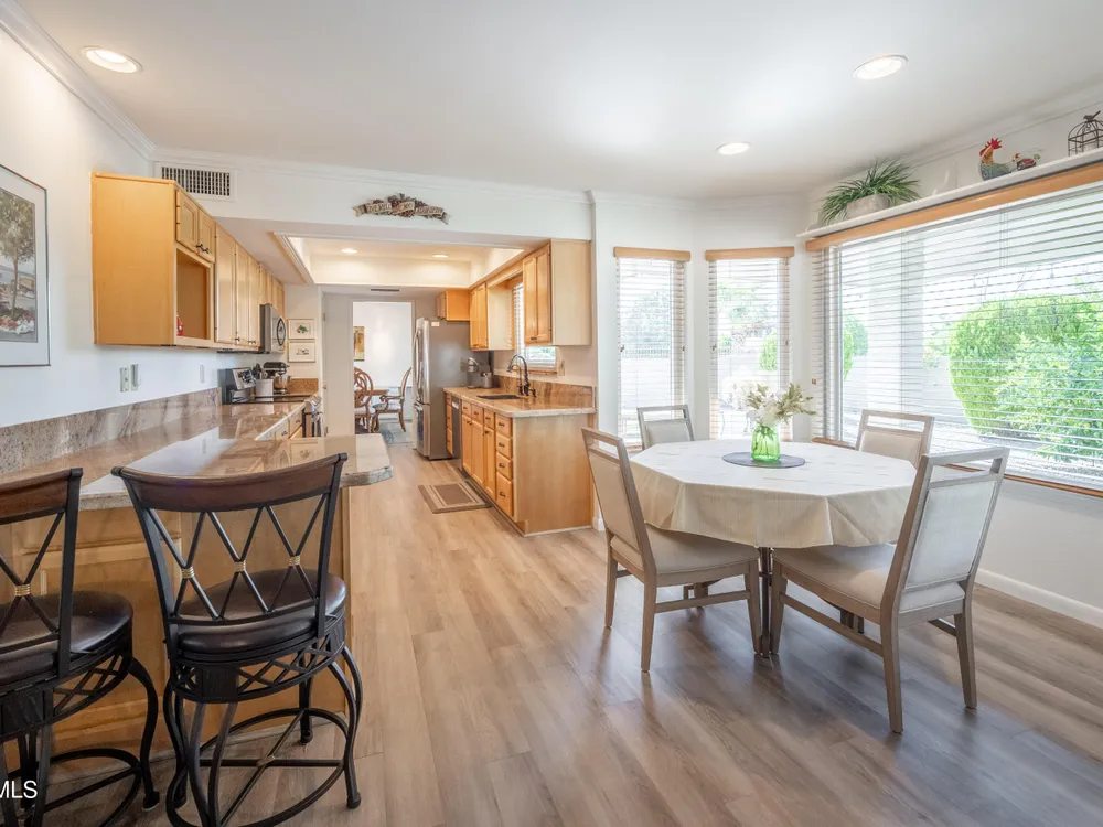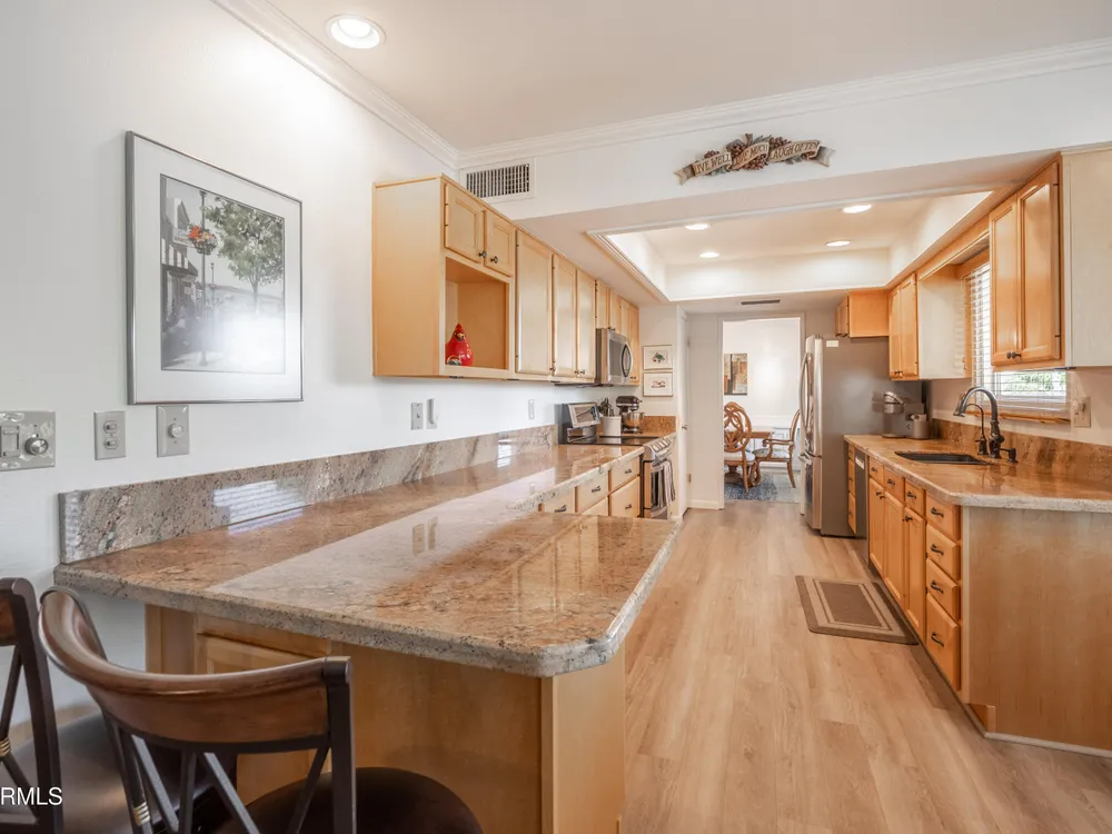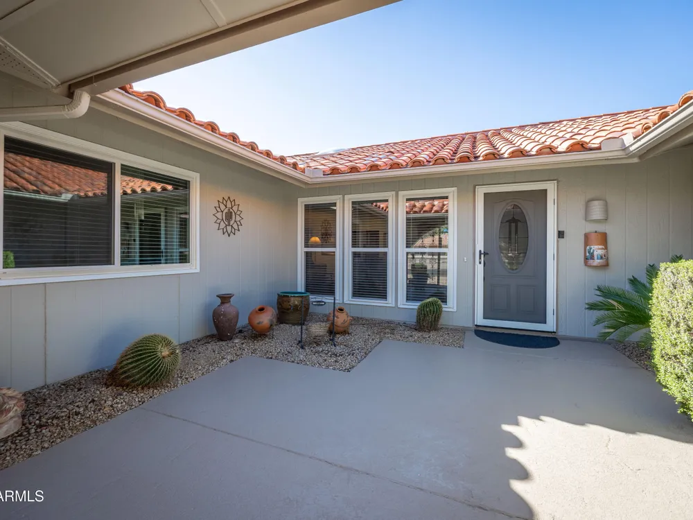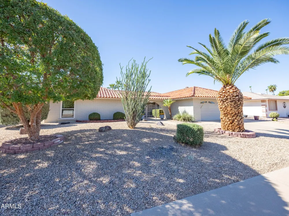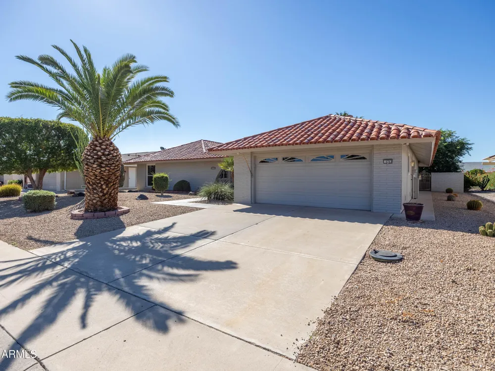 ABSOLUTELY GORGEOUS & IMMACULATE 3BR/1.75BTH W/ LARGE 2 CAR GARAGE! EXCEPTIONAL CURB APPEAL W/ PRIVATE COURTYARD ENTRANCE AND TILE ROOF INVITES YOU INTO THIS BEAUTIFUL, WELL-CARED FOR HOME! POPULAR SPLIT-BR PLAN W/ FORMAL DINING RM. SPACIOUS KITCHEN FEATURES STAINLESS STEEL APPLIANCES, MAPLE CABINETS, GRANITE COUNTERTOPS, RECESSED LIGHTING, BREAKFAST BAR, BREAKFAST NOOK, & IS OPEN TO THE FAMILY RM. PRIMARY SUITE HAS DOUBLE SINKS, SHOWER, TWO WALK-IN CLOSETS, & SITTING AREA. VANITIES IN BOTH BTHS HAVE BEEN REPLACED. DUAL PANE WINDOWS, CEILING FANS, SKYLIGHTS, POPCORN CEILINGS REMOVED, ATTACHED CABINETS & WASHER/DRYER IN GAR. FRENCH DRS TO STUNNING SOUTHERN EXPOSURE BACKYARD COMPLETE W/ LARGE COVERED PATIO & BLOCK FENCING. EXCELLENT SUN CITY LOCATION! YOU WILL LOVE IT!!