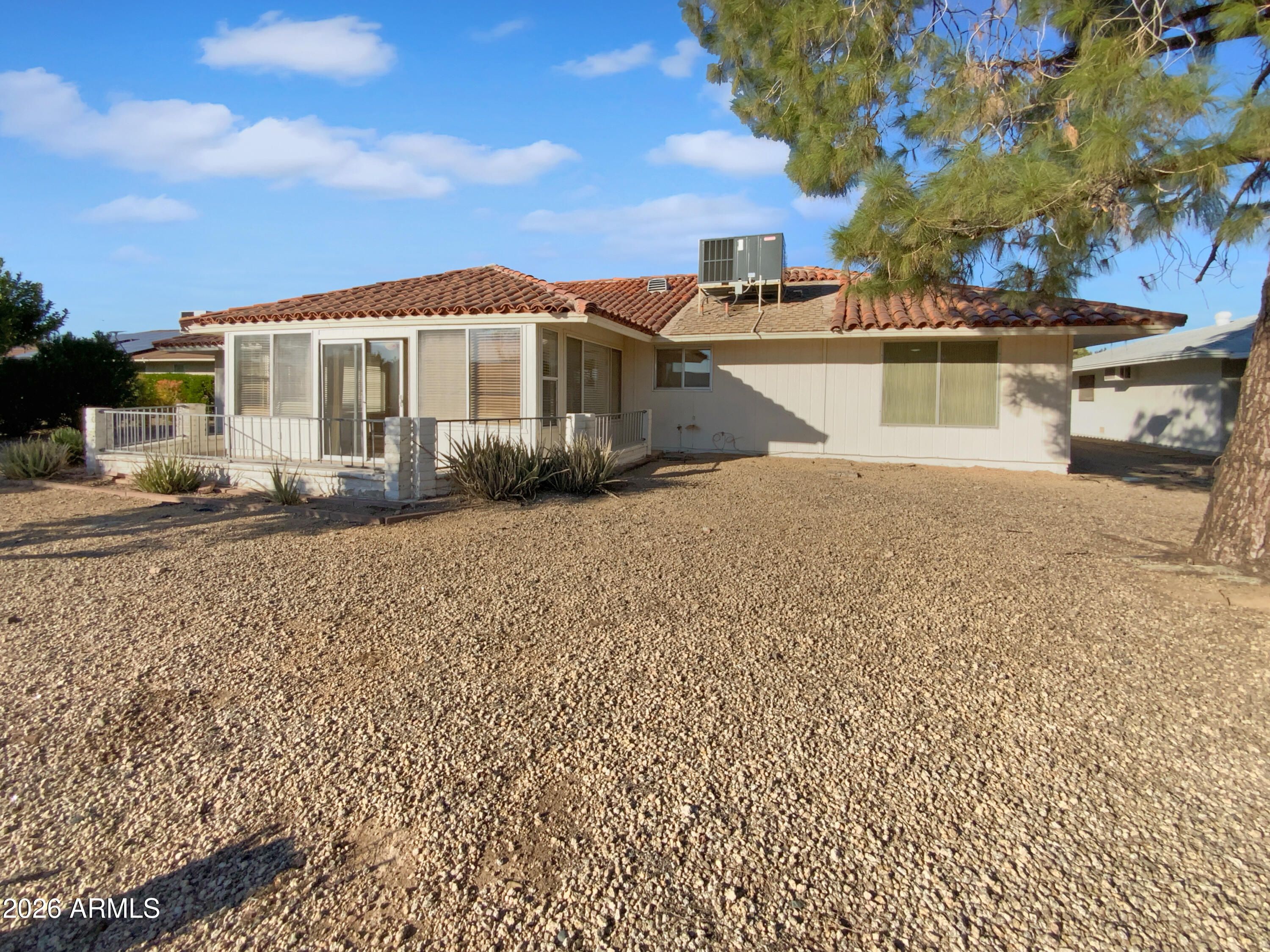 Welcome to this beautiful Sun City home, a lovely 55+ community. The kitchen is a chef's dream, boasting an accent backsplash and new appliances. All appliances are stainless steel, adding a modern touch. The fresh interior paint and new flooring throughout the home give it a clean, updated feel. The primary bedroom highlighted by a spacious walk-in closet. Outside, a covered patio extends the living space. while the fenced backyard provides a private setting and appreciate the beauty of low maintenance landscaping. Come enjoy these Arizona winters! Sun City's amenities are amazing with recreation centers, 8 golf courses, 130+ clubs, sparkling pools, pickleball, tennis, concerts, bowling. Included 100-Day Home Warranty with buyer activation.
