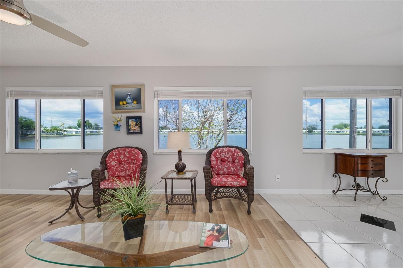 WATERFRONT LIVING IN STYLE… ENJOY YOUR NEW HOME IN THIS ACTIVE 55+ COMMUNITY JUST MINUTES FROM ST PETERSBURG & CLEARWATER!! Recently remodeled, you will love the panoramic waterfront views and gentle sunrises every day from the comfort of your kitchen, dining area, family room and coffee bar — a serene backdrop that sets the stage for peaceful mornings and relaxing afternoons. The setting is truly unique, offering a sense of escape and connection with nature right outside your door. This beautifully updated home features two spacious bedrooms and two modern bathrooms. Extensive renovations over the past three years make this residence shine including an updated kitchen with newer appliances, luxury vinyl flooring throughout and fully renovated bathrooms including widened doorways in the primary bathroom to allow easy accessibility. All doors and hardware have been replaced, five new ceiling fans bring comfort and beauty, and every window is adorned with custom blinds for privacy and style. The exterior includes a new awning, new gutters and soffits, and custom concrete curbs that frame lush flower beds and thoughtful landscaping. A brand-new tile roof, courtesy of the HOA, delivers lasting durability and protection and the new HVAC system and enhanced safety features – among other finishes – give additional peace of mind. Additionally, if you are looking for an active, centrally located retirement community where you can easily make friends and visit family, “The Mainlands” is for you! Participate in community breakfasts, bingo, dances, and more at the vibrant clubhouse and pool just blocks away. Golf enthusiasts will appreciate the nearby public course, and pet owners can enjoy strolls with their companions. Personal golf carts are welcomed, making it easy to visit local shopping, Freedom Lake Park, and explore everything the neighborhood offers. Centrally located, you’re just minutes from Tampa and St. Pete/Clearwater airports, superb dining, shopping, and the breathtaking Gulf Coast beaches. The monthly maintenance fee covers a comprehensive range of services, from roof and exterior painting, water, sewer, trash, basic cable and internet, to full lawn care and clubhouse/pool upkeep. This all-inclusive approach means you can spend more time embracing the lifestyle you love so CALL TO SCHEDULE YOUR SHOWING AND MAKE THIS YOUR NEW HOME TODAY!!