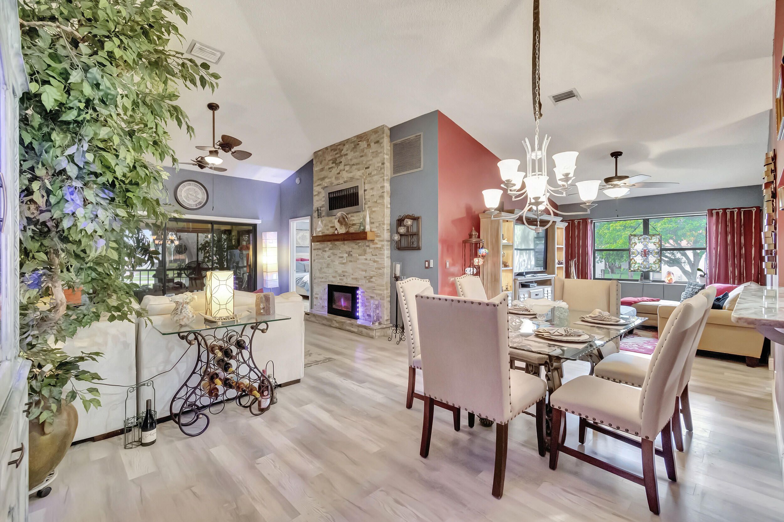 Sun Valley East, 55+ condo community, this 2-bedroom 2-bath, upper-level corner unit was. This unit is one of a kind. Walk into this home, and you will see why. The kitchen has been updated with newer appliances & granite chiseled countertops, all new wood floors throughout only completed not even a year ago, and includes high-end washer/dryer both with steam options.The living room has a 15-foot stone fireplace with a mantle and is wired for TV. AC has been redone with blue light. The house features a stair chair lift. The HOA covers all maintenance, pool, clubhouse, roadways, and buildings, also includes cable and water, but internet is not included. Hurry, kind unit won't last! FANNIE MAE APPROVED buy it w 5% down