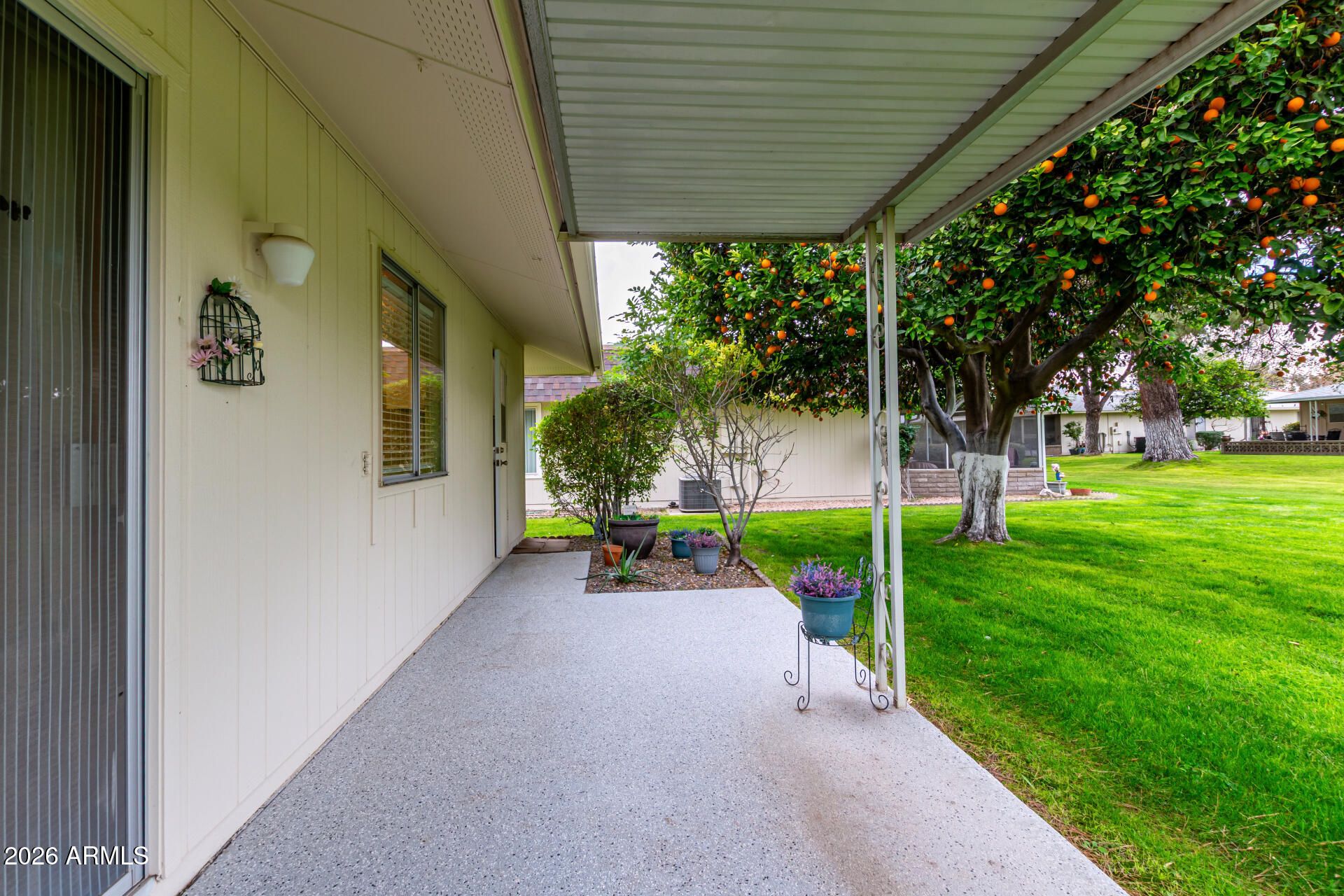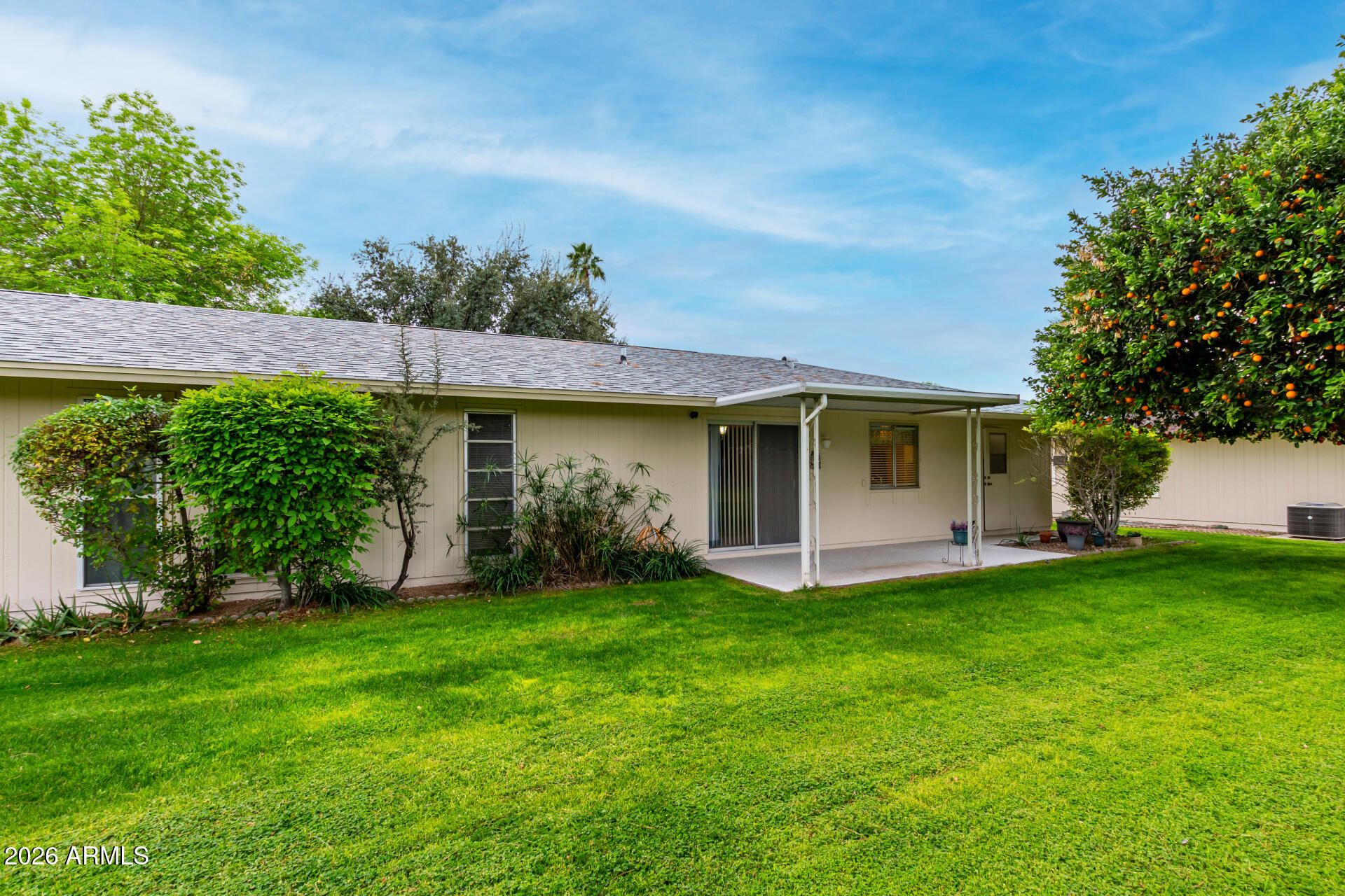 Welcome to this 55+ Sun City, where this charming retirement residence awaits you! This Gemini home offers 2 beds, 1 bath, and a 1-car garage. The interior features inviting living spaces for relaxing, gathering, and making yourself at home. The kitchen boasts built-in appliances and cabinetry for ample storage. The versatile 2-bedroom design allows one bedroom to serve as the primary retreat while the other functions beautifully as a home office. Outback, enjoy relaxing under the covered patio that overlooks a peaceful greenbelt. Sun City is more than a neighborhood, it's a way of life! Residents have access to 8 recreation centers, 11 golf courses, indoor & outdoor pools, hobby studios, and over 200 social clubs - providing endless ways to stay active and connected. Make this yours!