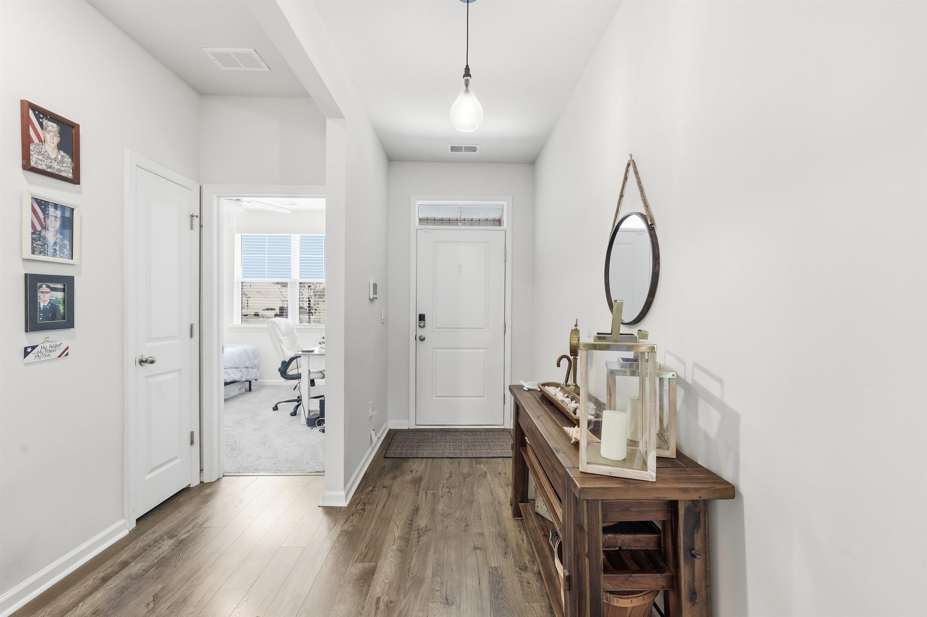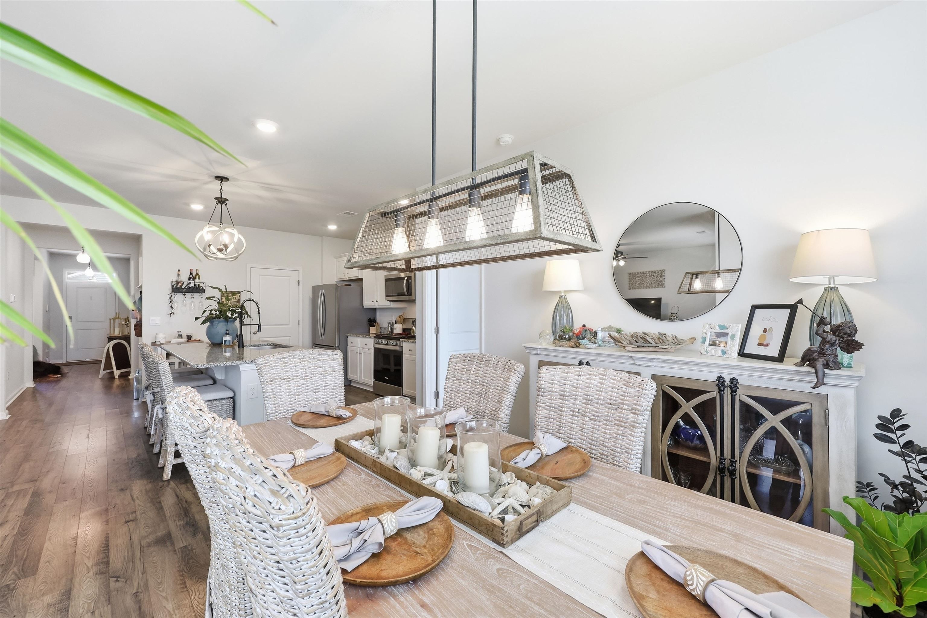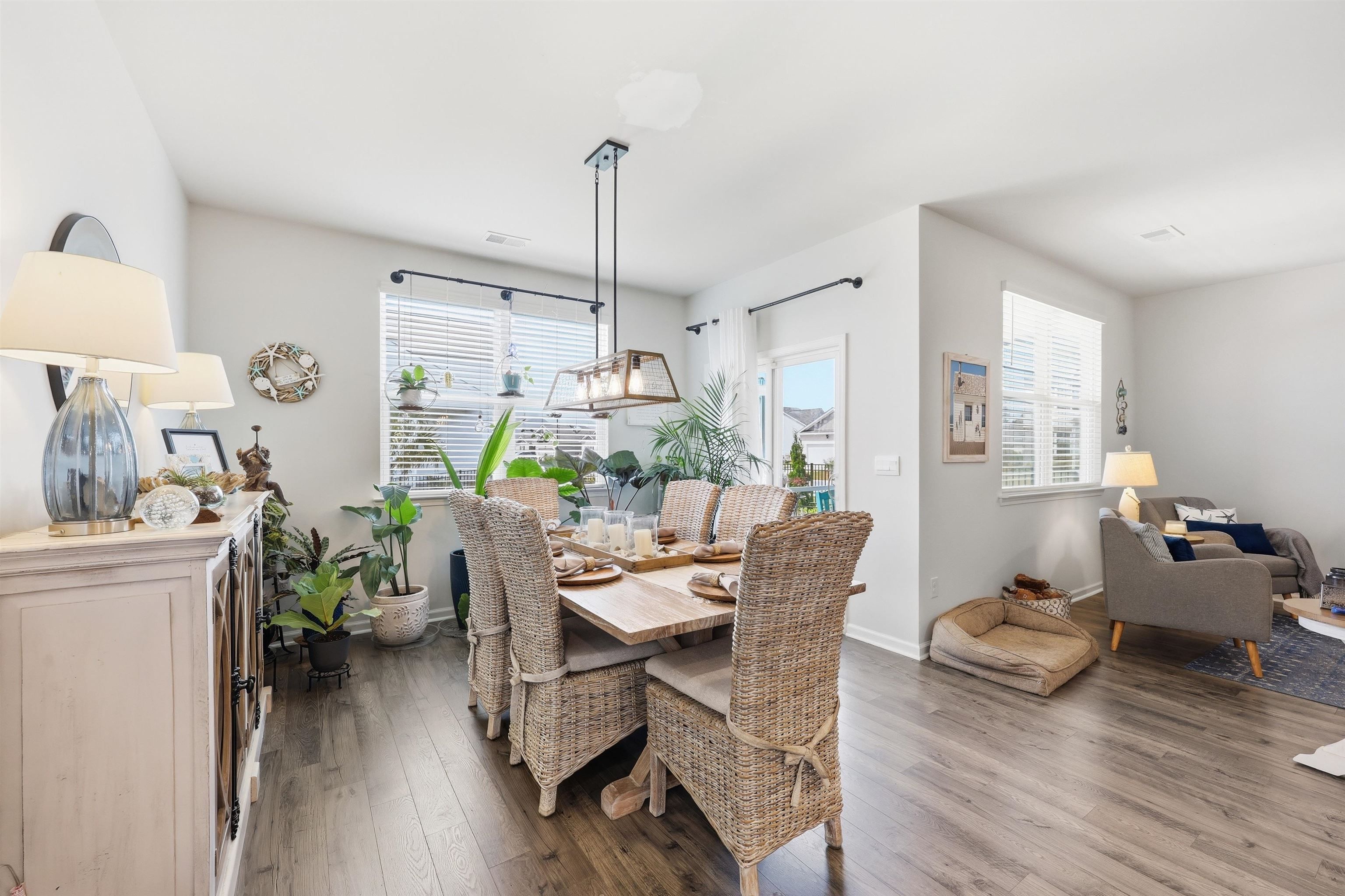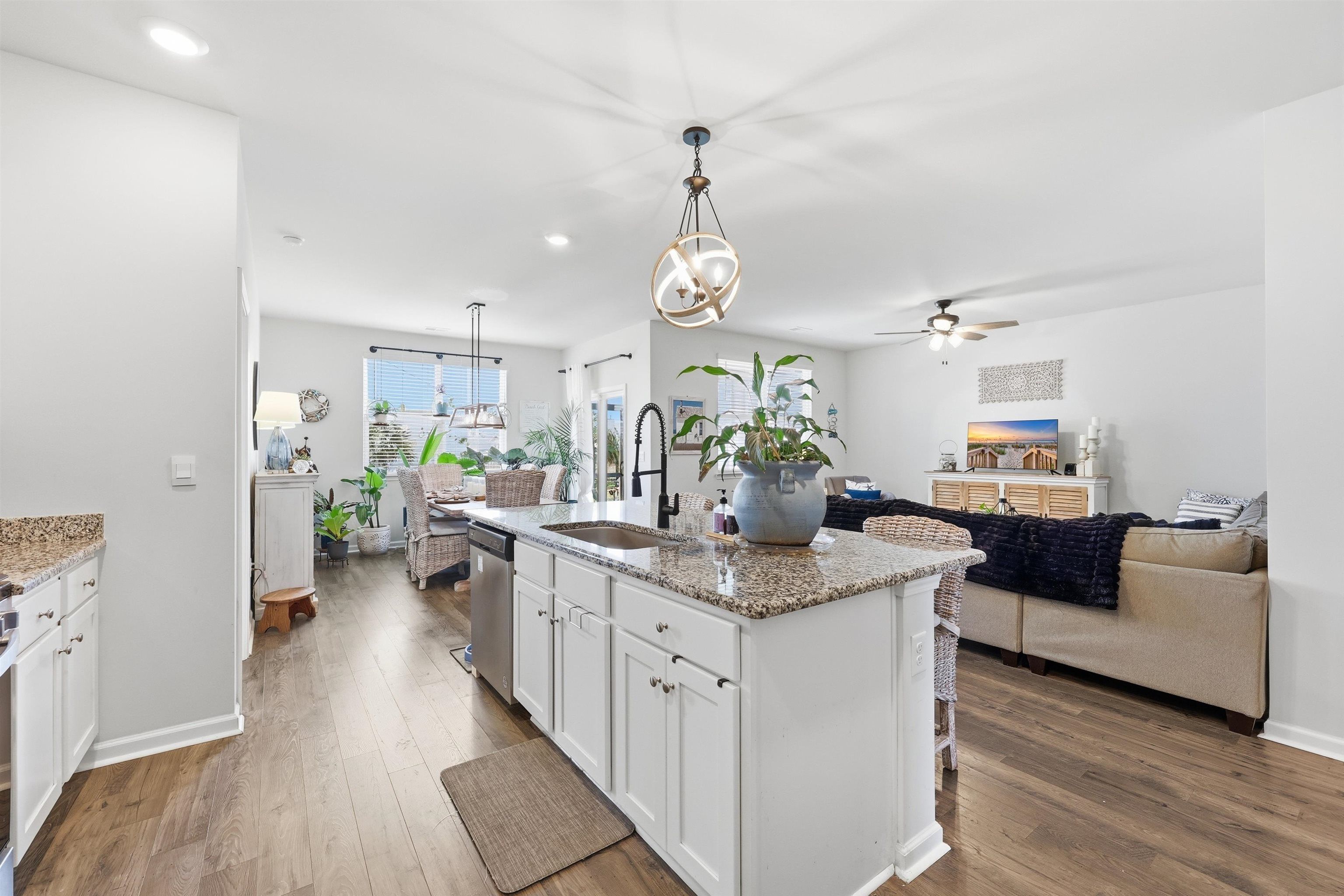 The Aria floor plan offers easy, comfortable living designed to fit every season of life whether you’re stepping into homeownership for the first time or looking to simplify with a thoughtfully designed layout. The open living and kitchen area creates a welcoming space that’s perfect for hosting friends or enjoying quiet evenings at home. You’ll love the stylish finishes, including painted cabinetry, granite countertops, stainless steel appliances, and durable wood-look flooring throughout the main living spaces. Tall ceilings enhance the airy feel, while a spacious pantry provides plenty of storage. The split-bedroom layout offers added privacy, with a serene primary suite tucked away from the secondary bedrooms. Step outside to a covered back porch overlooking a peaceful pond view even better, the yard is fully fenced, making it ideal for pets, play, or simply relaxing and enjoying the scenery. This home is also equipped with smart home technology, allowing you to control features like keyless entry and video doorbell access with ease modern convenience designed to keep up with your lifestyle. Located in a community known for its exceptional amenities, this property truly combines comfort, style, and convenience in one beautiful package. Call to book your private showing asap!