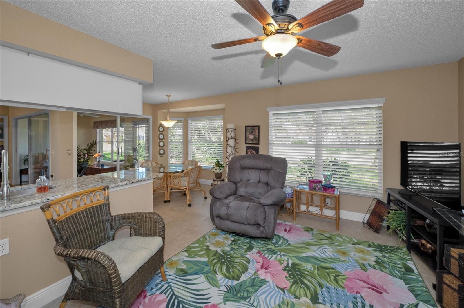 - Cathedral Ceiling(s), Ceiling Fan(s), Eat-in Kitchen, Kitchen/Family Room Combo, Living/Dining Room, Stone Counters, Walk-In Closet(s)
