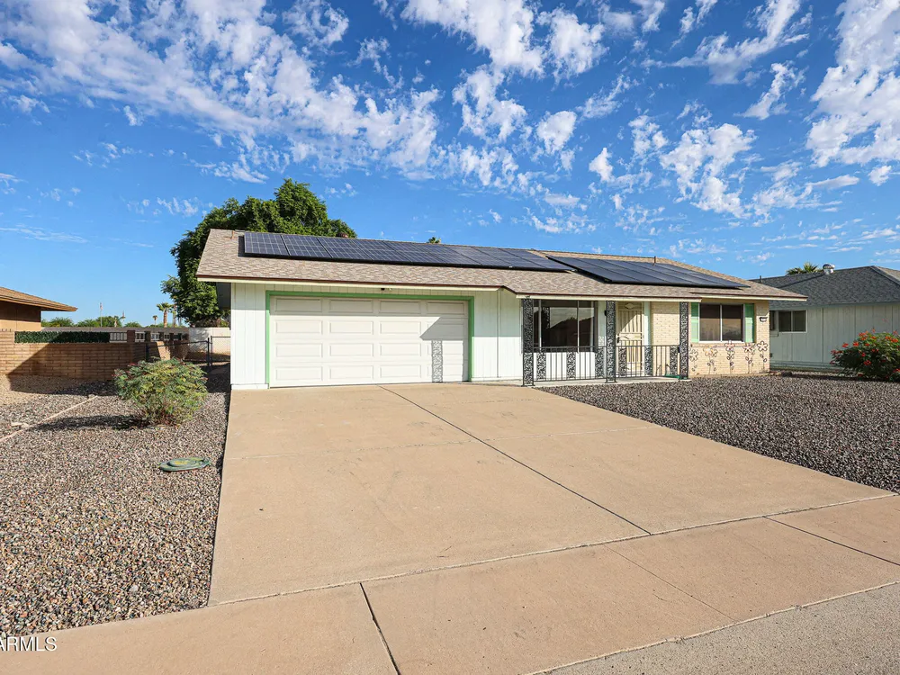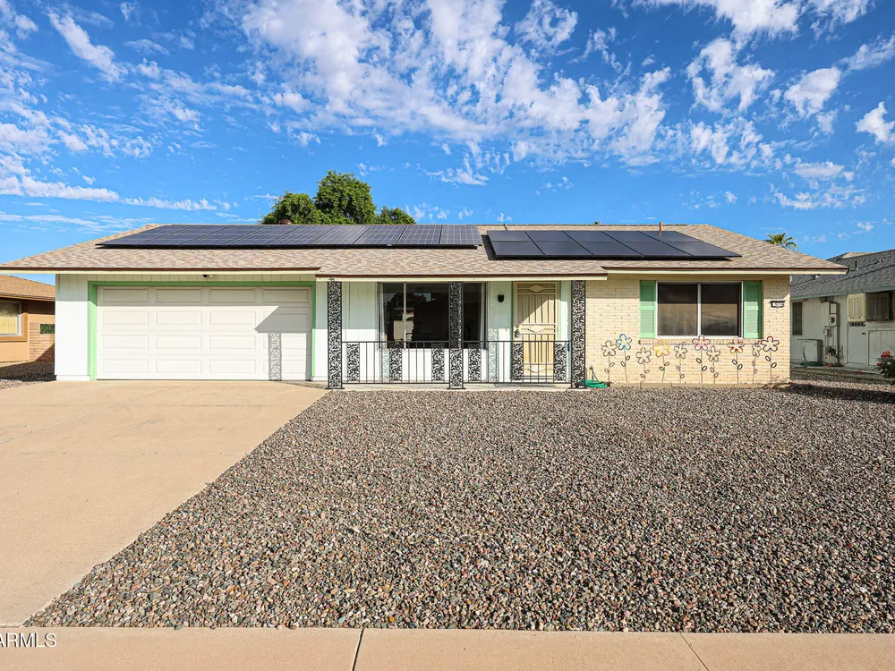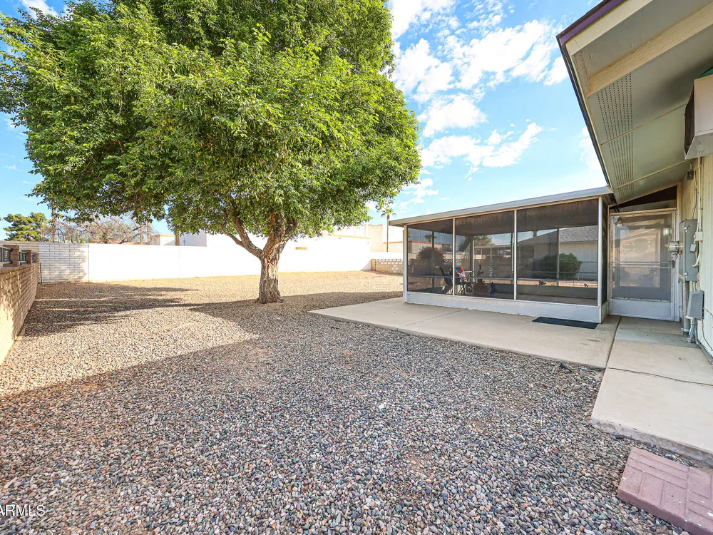 Very cute move in ready home that sits on a large low maintenance lot with no neighbors behind you. Fresh interior paint/new ceiling fans. The kitchen has refreshed cabinets with new hardware, pantry, and new stainless steel appliances. Newer roof and newer HVAC system. Nice sized 2 car garage with shelving and has an entrance to climate controlled parking for your golf cart. Both bedrooms have, walk-in closets. Very large interior laundry room that is ducted for heating and cooling. It has a fully fenced back yard. It has a large 20x20 screened in patio for those relaxing days. See Suncity.org and check out all that Sun City has to offer. Many Golf courses, Community Centers, Pools, Amenities, Sports/Fitness Activities, volunteer programs, multiple Craft/Club options and much more.
