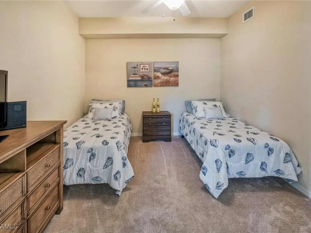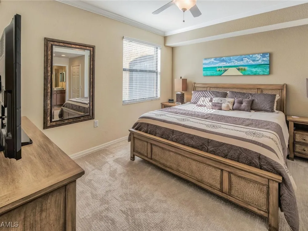New improved price makes this the lowest priced first floor end unit in Treviso! Highly sought after 2BR/2BA +Den first floor Celiana model condo located in prestigious Treviso Bay! This property comes with TPC Golf membership! Treviso Bay boasts a beautifully maintained 18-hole golf course designed by Arthur Hills, a true legend in golf course design, it also offers resort style amenities with access to Villa Rilassare club house with state-of-the-art fitness center, a Tiki bar, a beautiful resort style pool with a waterfall, a full-service spa, tennis, basketball, a bocce court, pickle ball courts and so much more. The community is truly one of a kind and the location is superb. Downtown Naples and the beautiful white sandy beaches are just 15 minutes away. Downtown offers theater, unique shopping and fine dining in a picturesque small-town setting. Other amenities in the community include satellite community pools, BBQ grills, onsite restaurants, beauty salon etc. This home features a king bed in the master, two twin beds in the den, and a queen bed in the guest room. Two full bathrooms (master ensuite and guest bathroom) as well as a lovely private lanai, stainless steel appliances, granite counters, tile throughout the main areas and carpet in the bedrooms. Don’t miss this opportunity to own a condo in paradise!