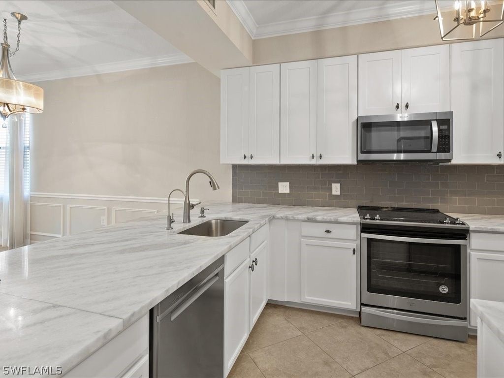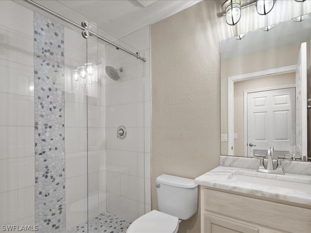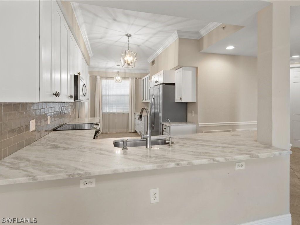 Immediate Full Golf Membership with purchase. Absolutely beautiful lake front condo with gorgeous water views. Two bedrooms and a true Den. This beautiful unit will certainly impress and includes all the wonderful amenities Treviso Bay has to offer. Completely and totally remodeled with new flooring in bedrooms and Den, new cabinets, Quartz countertops, new shower in both baths, paint, light fixtures, all new appliances, backsplash, crown molding with woodworking on walls for accent in main living area, custom closet built ins in Primary bedroom and closet inserts in Guest bedroom, reverse osmosis system and all done in light coastal colors. Treviso Bay boasts a 55,000 square foot clubhouse with restaurant, bar, and numerous club and social events, tennis, lake front beach area, large resort style pool, lap pool, hot tub, pickleball, fire pits, state of the art fitness center with access to personal trainers and fitness classes. Full service spa and bocce round out this amenity rich neighborhood. Located 5 miles to 5th Ave and the Gulf.