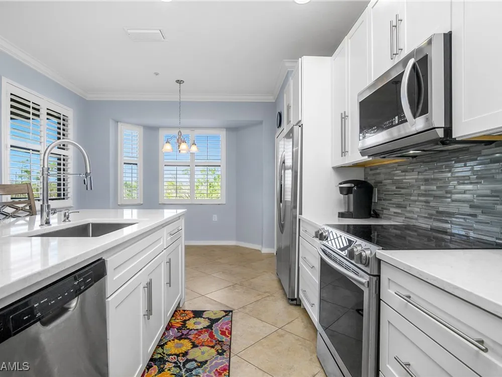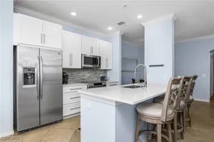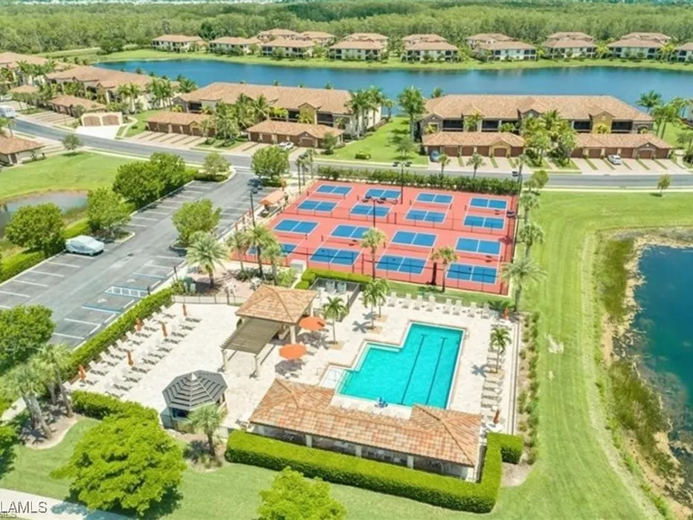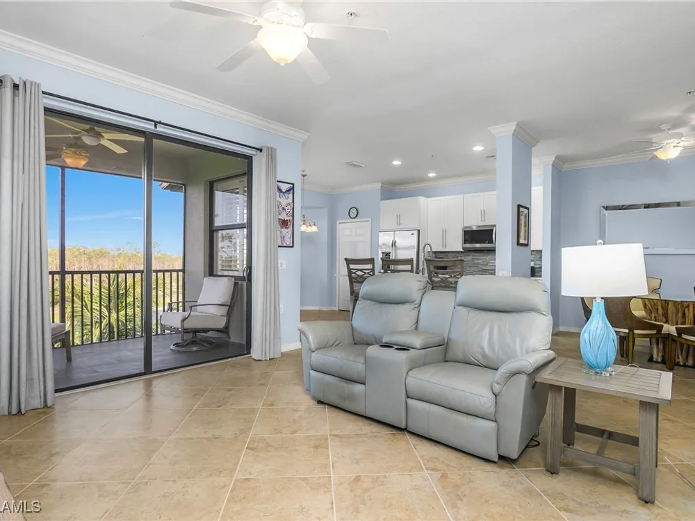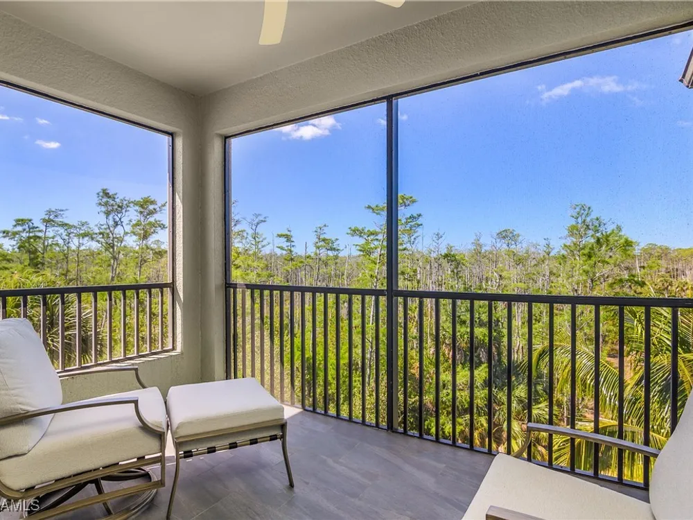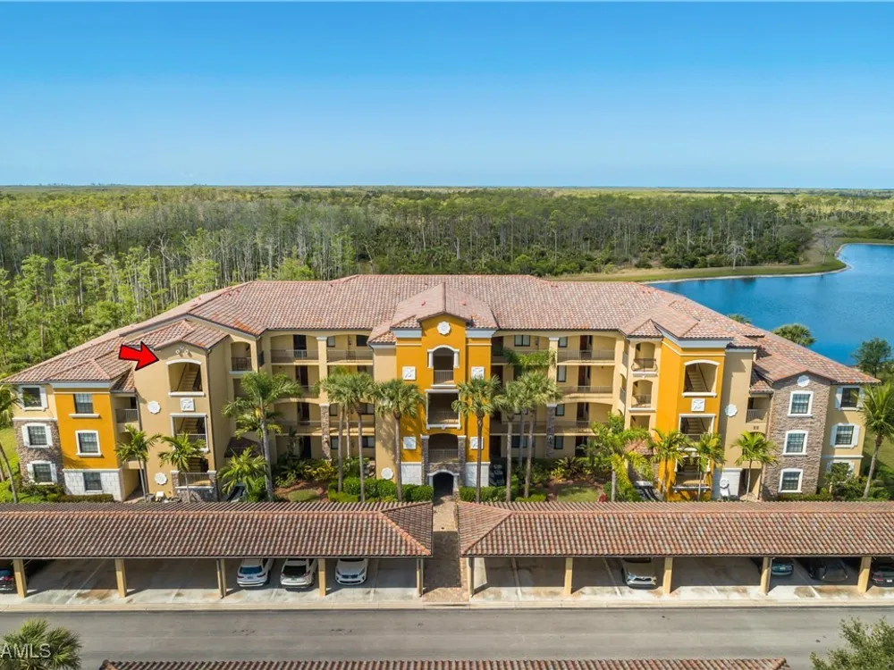 PRICED TO MOVE! This beautifully updated 2 bedroom, 2 bathroom condo with IMMEDIATE GOLF MEMBERSHIP in Treviso Bay offers the perfect blend of style, comfort, and resort-style living. Located on the 4th floor and positioned as a top floor corner unit, it provides added privacy and sweeping views of the serene lake and lush preserve. Inside, the updated kitchen features white cabinetry, white countertops, a tile backsplash, and upgraded hallway lighting, all creating a bright and modern aesthetic. The primary bedroom includes a custom California closet, and the condo also boasts the largest storage room available in the community, complete with built-in shelving for optimal organization. Enjoy the outdoors year-round from the tiled lanai, enjoying breathtaking views of the lake and Rookery Bay Preserve or welcome the breeze through the manual front door screen. Treviso Bay residents enjoy an unmatched lifestyle with access to a private TPC golf course, resort-style pool with poolside restaurant and bar, state-of-the-art fitness center, full-service spa, tennis, pickleball, and bocce courts, and a vibrant social calendar. The main clubhouse offers a golf pro-shop indoor/outdoor dining and bars, activity room, events room, private dining room, library and business center. The community is conveniently located just minutes from downtown Naples, world-class dining, shopping, and the Gulf beaches. This is your chance to experience the ultimate in Naples living in a home that truly has it all.