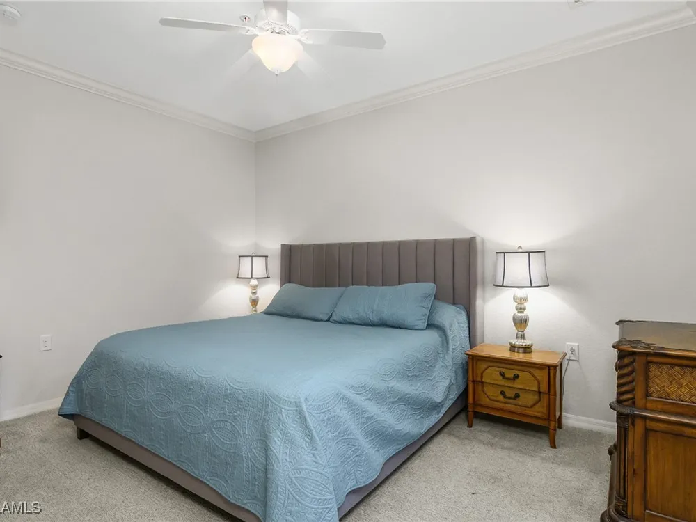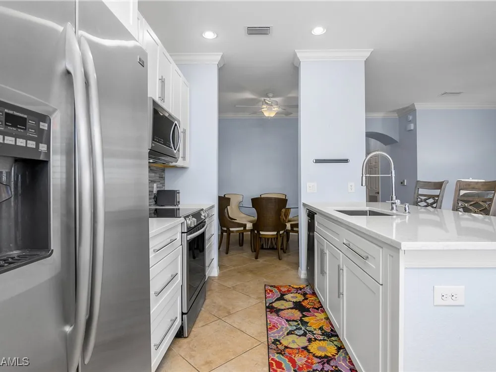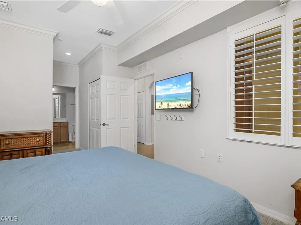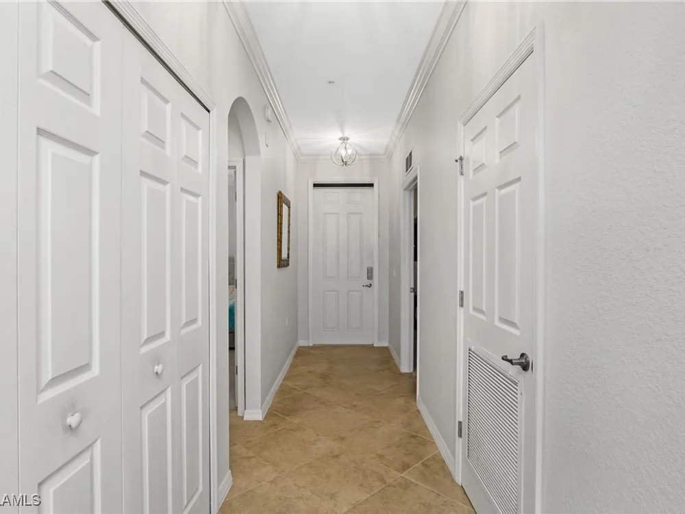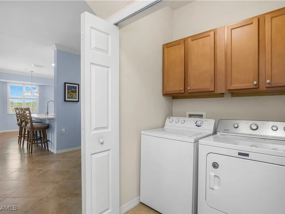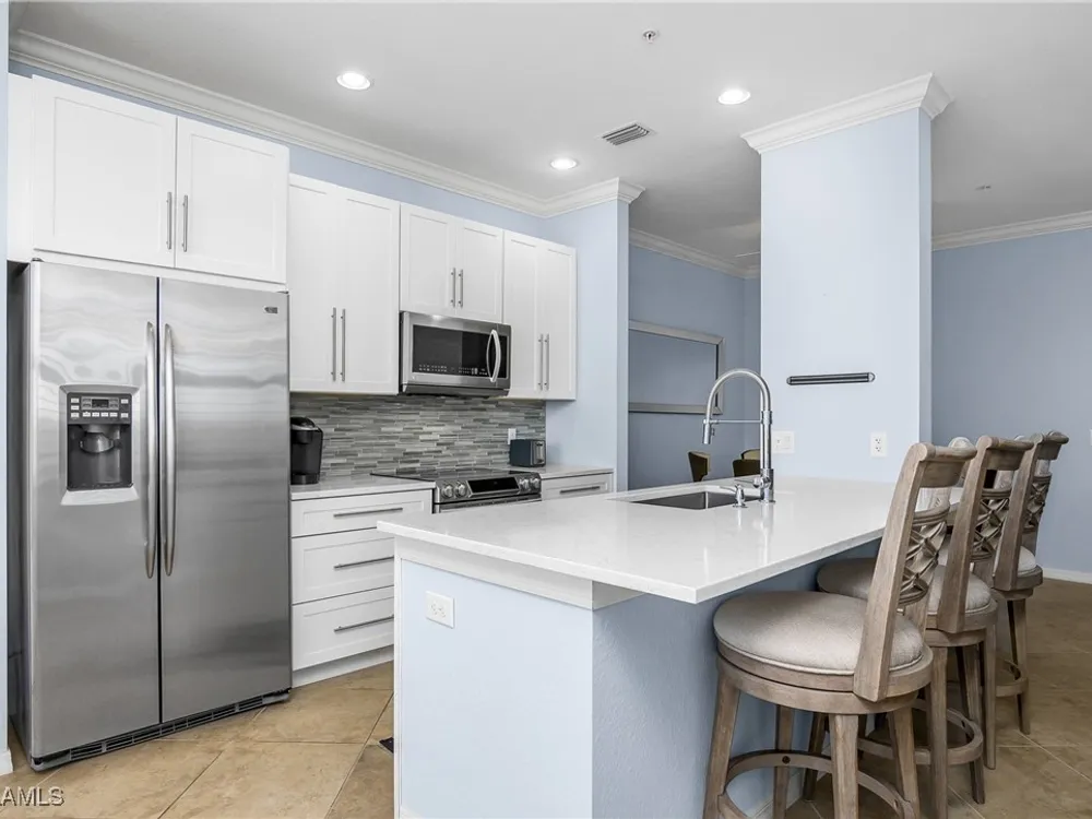 PRICED TO MOVE! This beautifully updated 2 bedroom, 2 bathroom condo with IMMEDIATE GOLF MEMBERSHIP in Treviso Bay offers the perfect blend of style, comfort, and resort-style living. Located on the 4th floor and positioned as a top floor corner unit, it provides added privacy and sweeping views of the serene lake and lush preserve. Inside, the updated kitchen features white cabinetry, white countertops, a tile backsplash, and upgraded hallway lighting, all creating a bright and modern aesthetic. The primary bedroom includes a custom California closet, and the condo also boasts the largest storage room available in the community, complete with built-in shelving for optimal organization. Enjoy the outdoors year-round from the tiled lanai, enjoying breathtaking views of the lake and Rookery Bay Preserve or welcome the breeze through the manual front door screen. Treviso Bay residents enjoy an unmatched lifestyle with access to a private TPC golf course, resort-style pool with poolside restaurant and bar, state-of-the-art fitness center, full-service spa, tennis, pickleball, and bocce courts, and a vibrant social calendar. The main clubhouse offers a golf pro-shop indoor/outdoor dining and bars, activity room, events room, private dining room, library and business center. The community is conveniently located just minutes from downtown Naples, world-class dining, shopping, and the Gulf beaches. This is your chance to experience the ultimate in Naples living in a home that truly has it all.