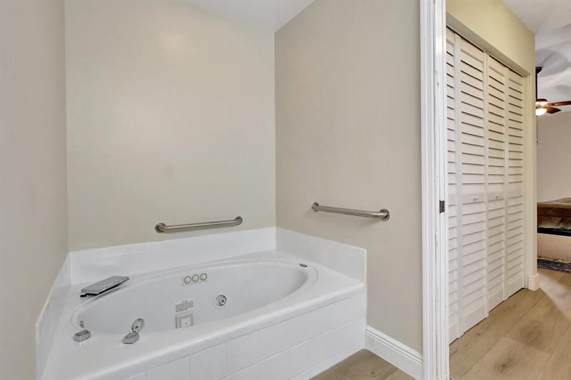 - Closet Cabinetry, Roman Tub, Split Bedroom, Volume Ceilings, Walk-In Closets