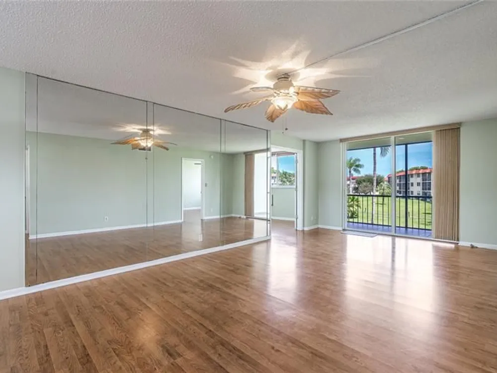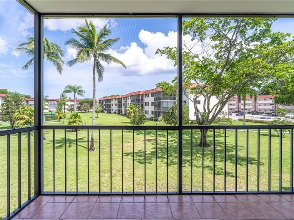 MOST DESIRABLE 2ND floor 2BR.1.5BA. Open and Bright garden, pool and BBQ view from designed tiled and screened balcony. Updated newer kitchen. Impact Windows and door. Recreation Lease PAID IN FULL. PERFECT FOR SNOWBIRDS OR ENJOYABLE ANNUAL LIVING. Amenities include Restaurant, Billiard Room, Bbq/Picnic Area, Clubhouse, Courtesy Bus, Exercise Room, Heated Pool, Library, Putting Green, Sauna, Shuffleboard, Tennis, Pickle Ball, Vehicle Wash Area, Electric Car Charging Station. Close to shopping, dining, highways, International Airports, and top rated medical facilities. 15 min. to the beach. CLEAN AND MOVE-IN READY! PRICED FOR FAST SALE!