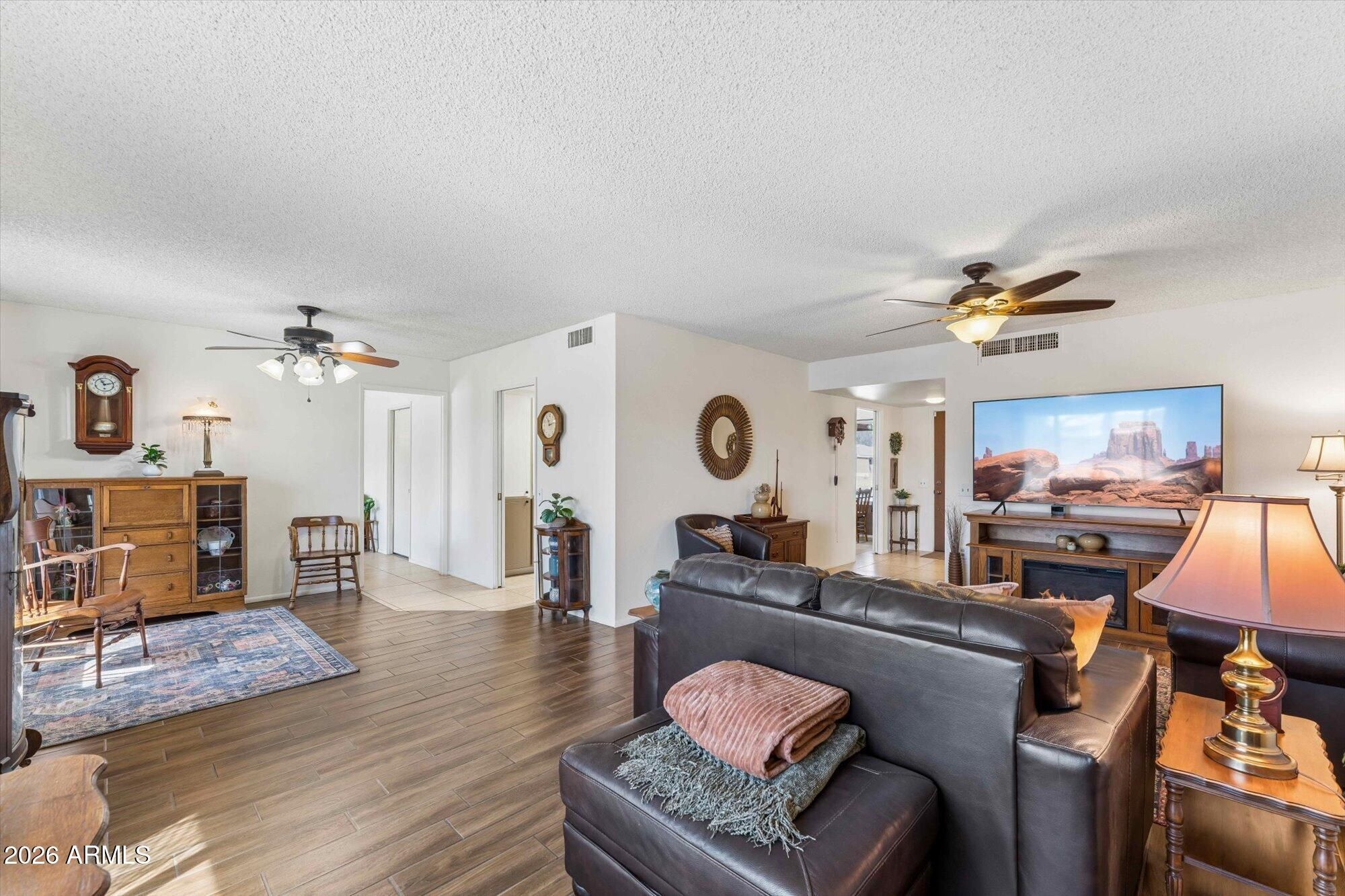 This 1,832 sq ft Sun City home delivers one of the community's most comfortable, functional layouts with easy flow and generous room sizes. Attractive flooring extends through the main living areas, and the semi-updated kitchen adds a fresh, inviting feel. The 3-bed, 2-bath design includes a 2-car garage and sits on a .20-acre lot in an established 55+ community. The floor plan offers strong separation between living spaces and bedrooms for privacy and flexibility. A large living area supports multiple furniture setups, and the dining space connects naturally to the kitchen. Well-proportioned bedrooms allow room for full-size furniture or a dedicated office. Its location provides quick access to recreation centers, golf, and neighborhood amenities, making it a great fit for new buyers!
