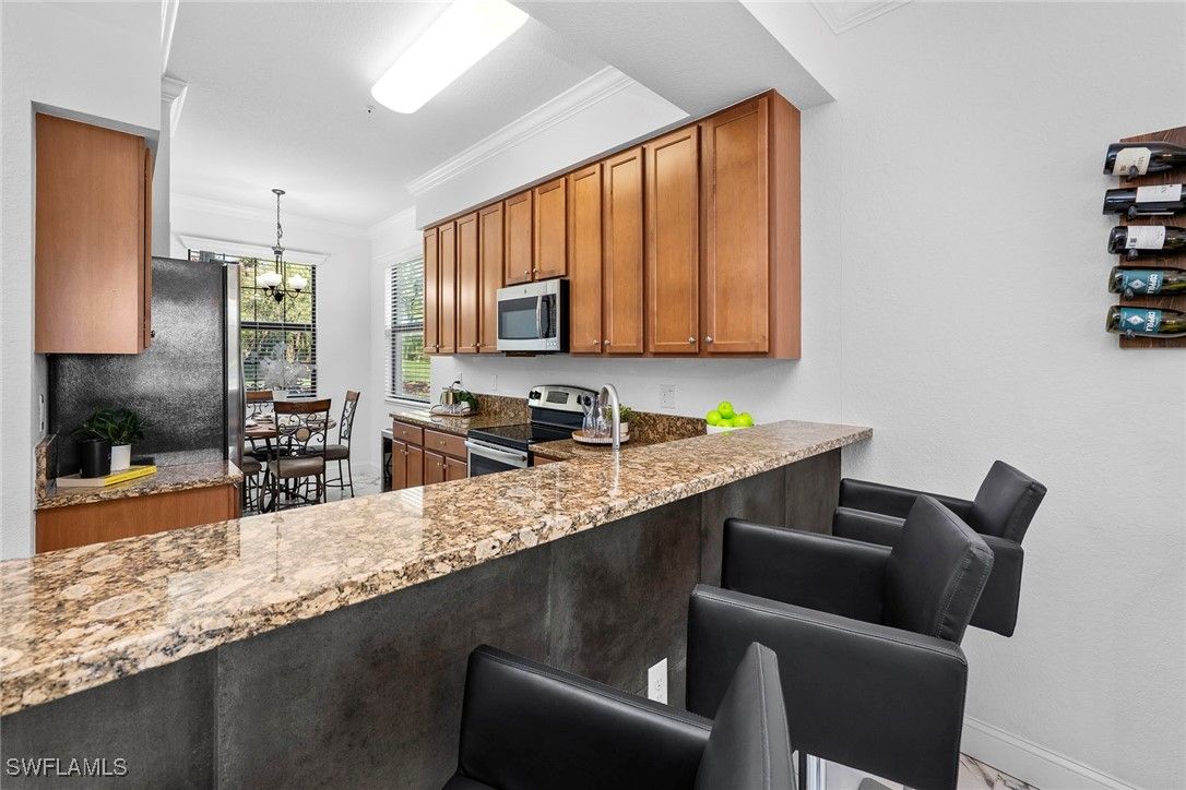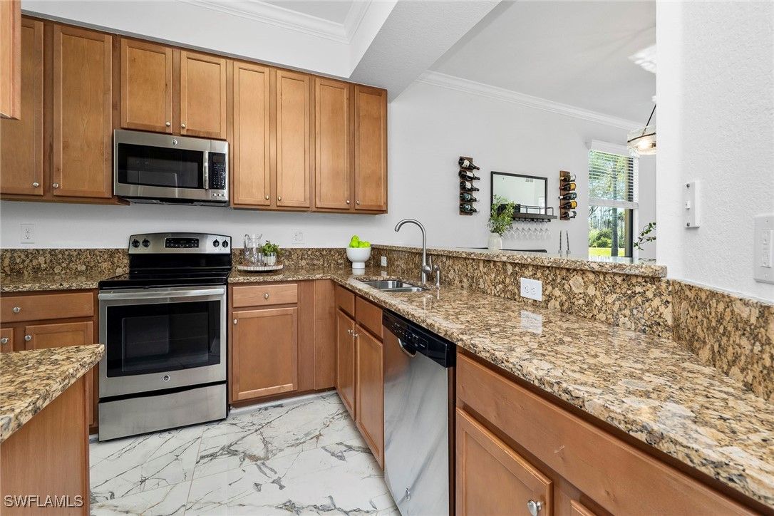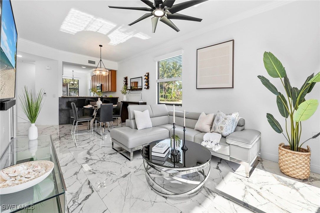 Own a FULL TPC Golf Membership with access to Treviso Bay’s renowned 18-hole Arthur Hills–designed championship golf course in this FIRST-FLOOR END-UNIT condo, located in one of Naples’ most desirable golf communities. This highly sought-after 2-bedroom plus den, 2-bath residence is situated in the Acqua subdivision of Treviso Bay and offers effortless, stair-free living with an open, light-filled layout. Recent updates include new flooring in the bedrooms and updated bathrooms featuring elegant marble finishes. The open-concept kitchen flows seamlessly into the living and dining areas and is highlighted by a clean white backsplash, stainless steel appliances, and ample cabinetry, while marble flooring enhances the main living spaces. The flexible den is ideal for a home office or guest space. Enjoy peaceful lake and preserve views from the private screened lanai, perfect for relaxing mornings or evenings. Treviso Bay offers a resort-style lifestyle with the Villa Rilassare clubhouse, fitness center with classes, full-service spa and salon, resort-style pool with waterfall and tiki bar, tennis, pickleball, bocce, basketball, on-site dining, and more, all within a 24-hour guard-gated community conveniently located minutes from downtown Naples, Fifth Avenue South, shopping, dining, and world-famous beaches.