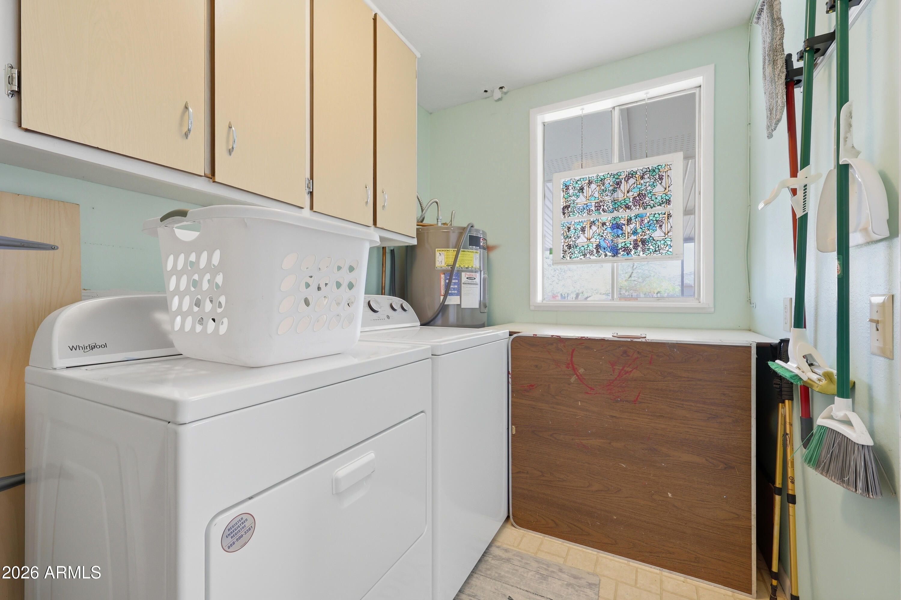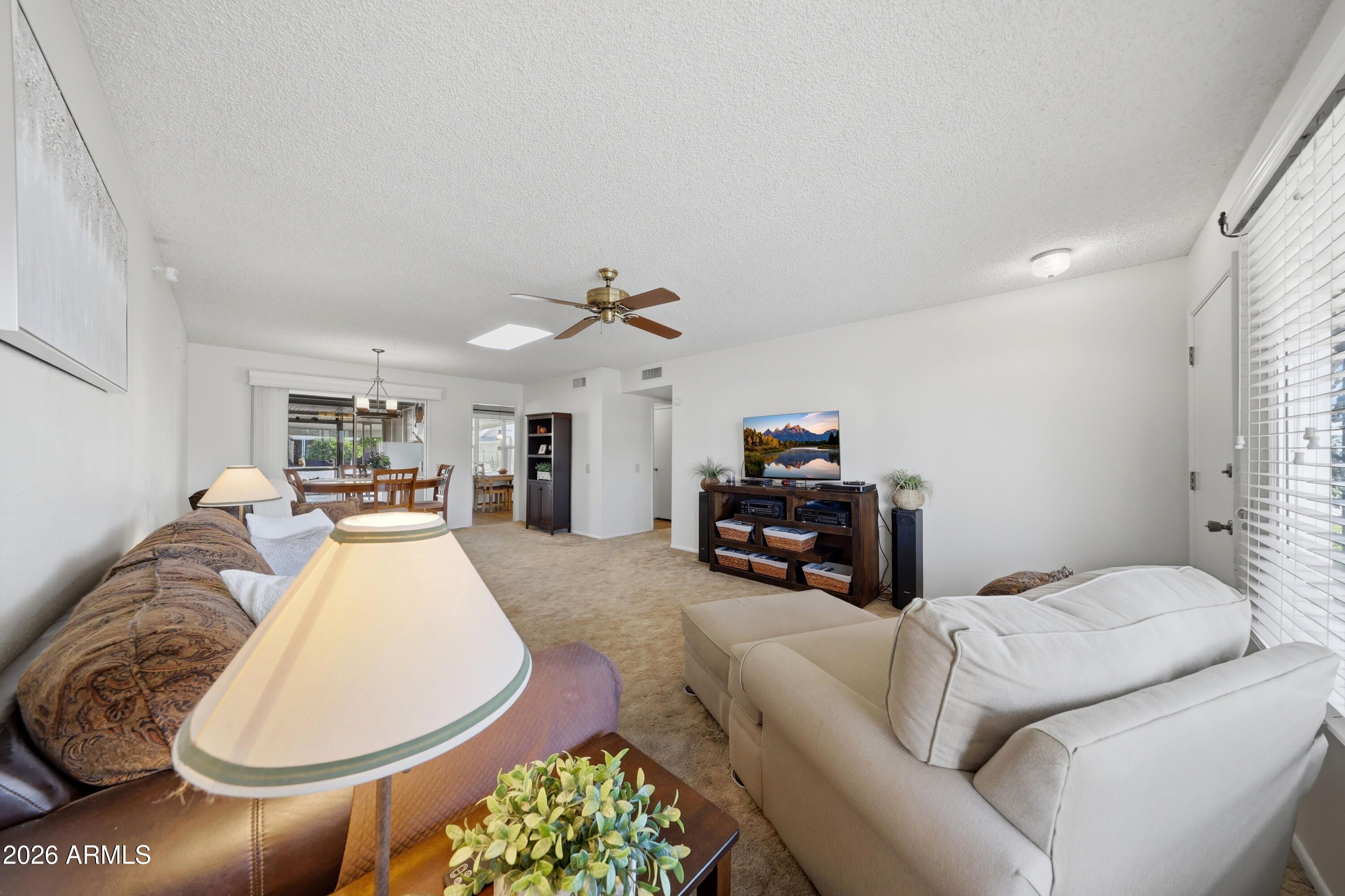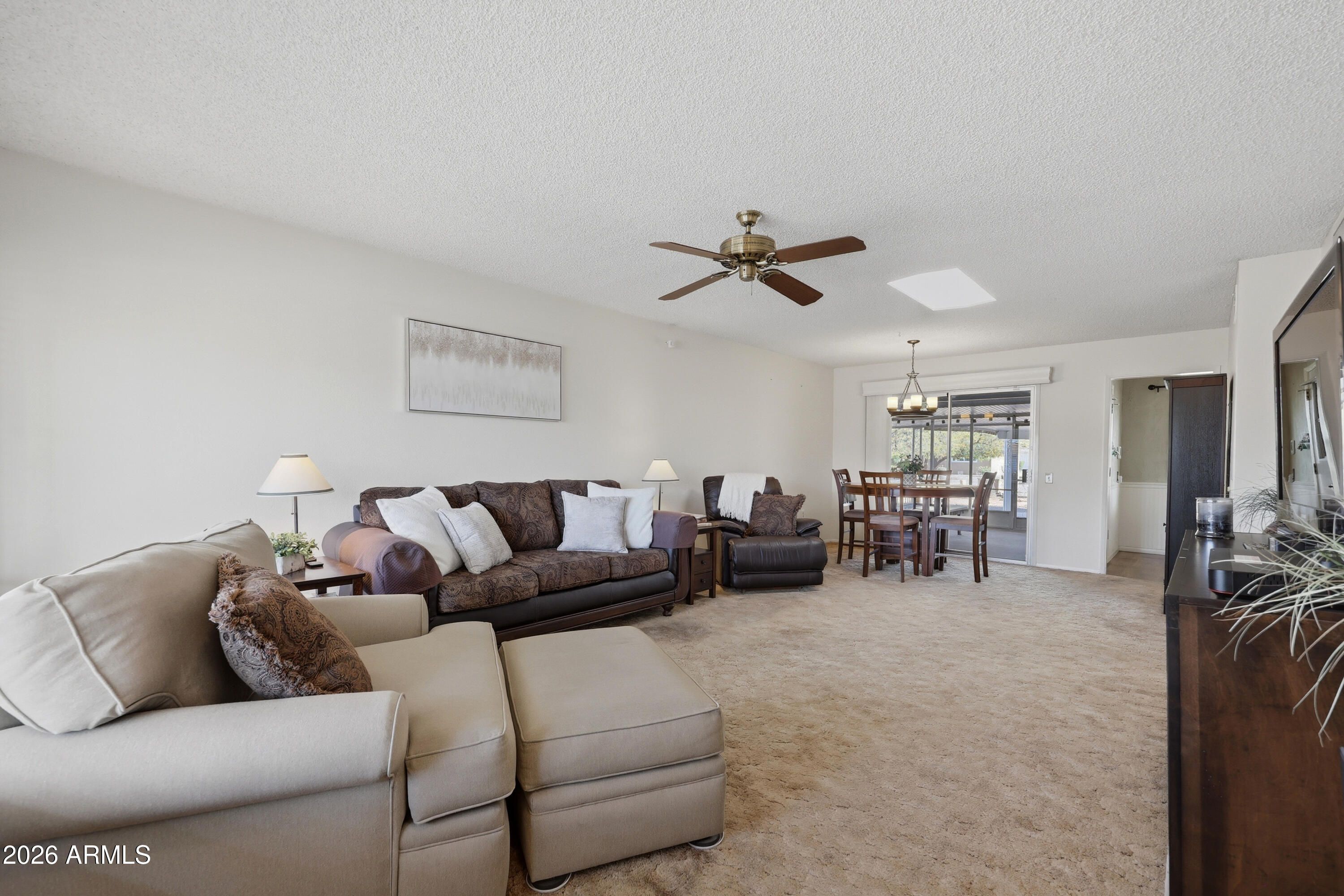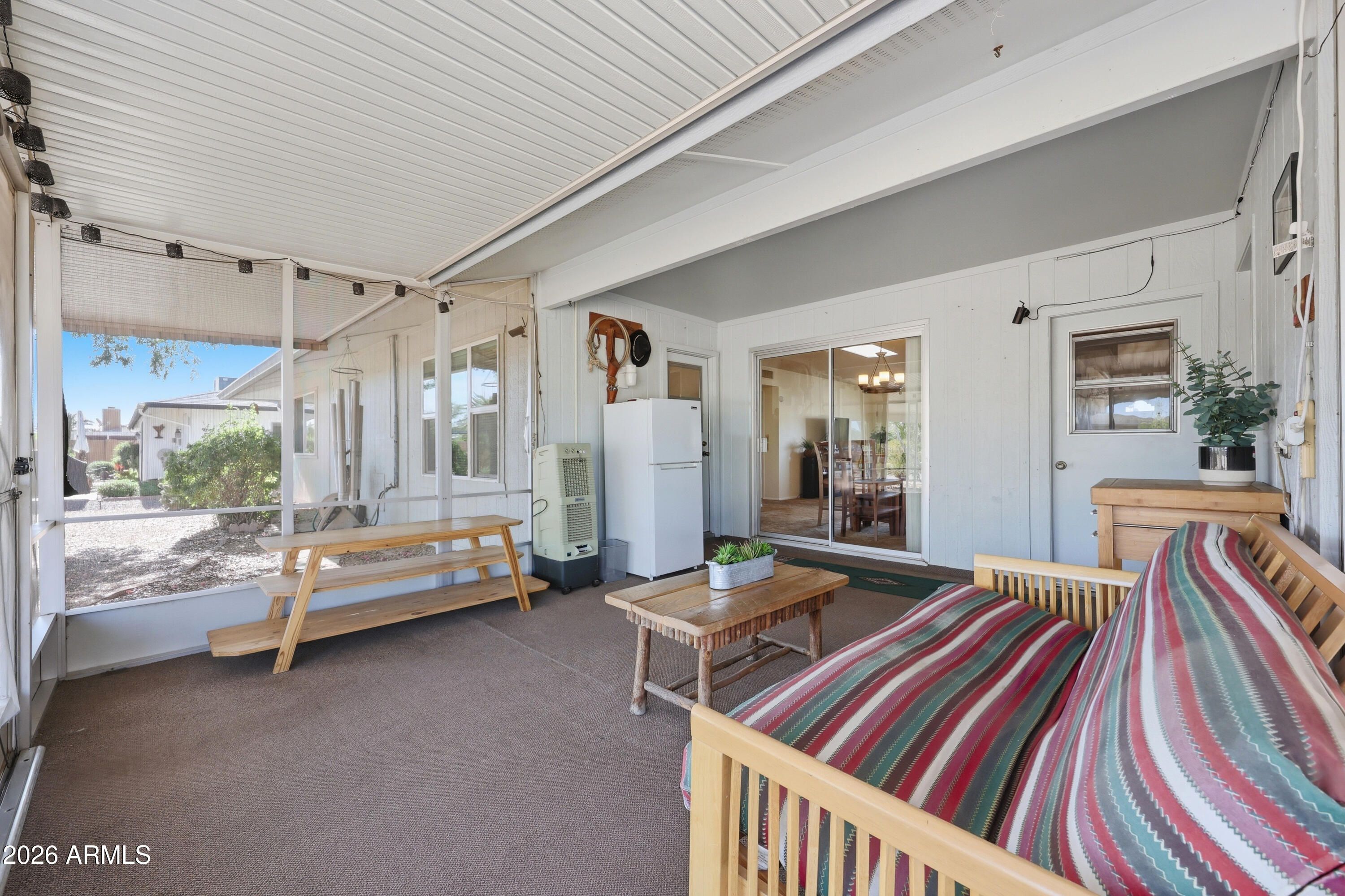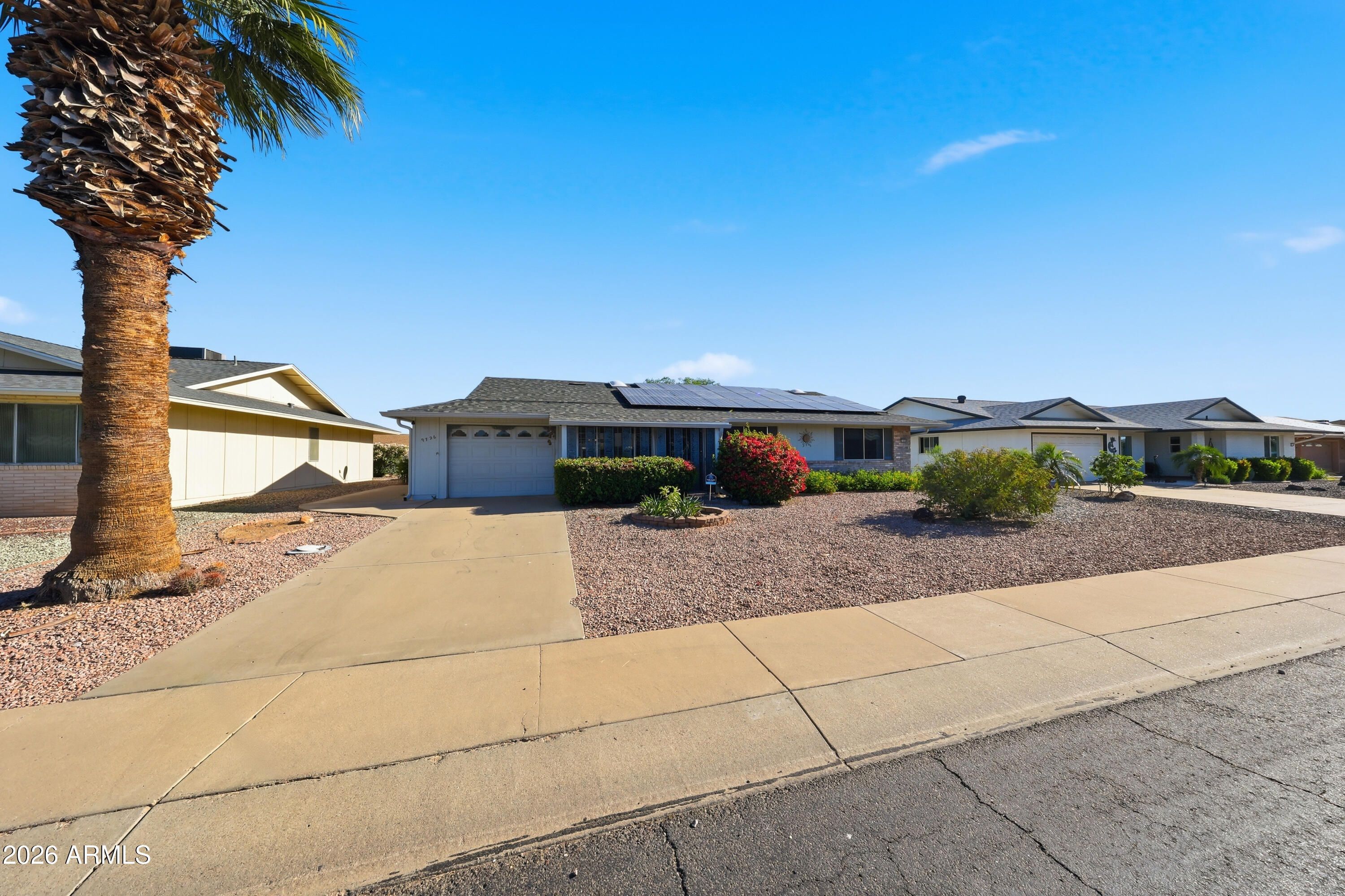 Discover the charm of Sun City living in this beautifully updated 3-bedroom, 1.75-bath home with no HOA and thoughtful upgrades throughout. If you love relaxing Arizona evenings, you will absolutely appreciate the unique covered patio and fully screened Arizona room, creating the perfect spaces for outdoor entertaining, morning coffee, or unwinding at the end of the day. This move-in ready home features new luxury vinyl flooring, newer water heater, and a new roof replaced just 3 months ago in 2026, offering peace of mind for years to come. The kitchen and laundry setup are even more functional with a GE washer and dryer installed in 2025. Outside, enjoy easy-care desert landscaping in both the front and back yards, complete with irrigation for shrubs a and trees. The screened Arizona room sits adjacent to a golf cart parking area or workshop space, adding flexibility for hobbies, storage, or extra utility. Additional features include a security system, 1-car garage with opener, and a location in a great neighborhood close to shopping, dining, and easy freeway access. With no HOA, modern updates, and classic Sun City appeal, this home is an exceptional opportunity for buyers seeking comfort, convenience, and low-maintenance Arizona living.