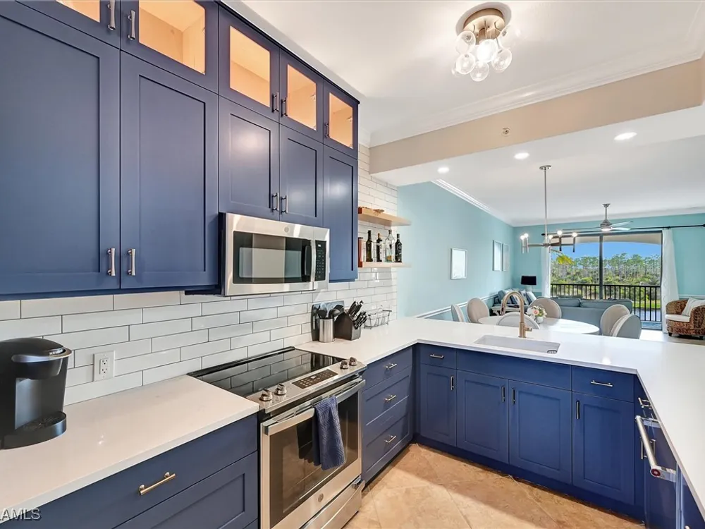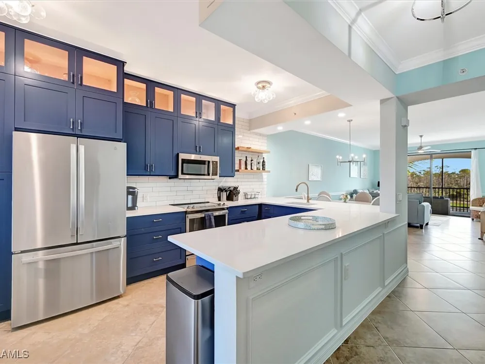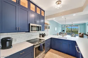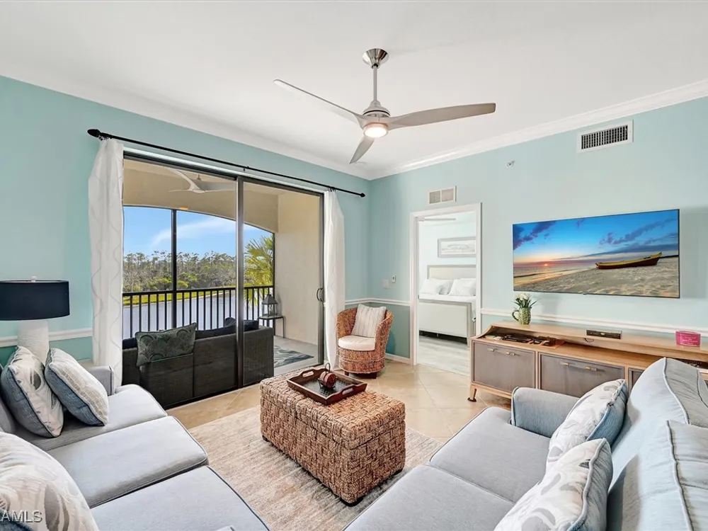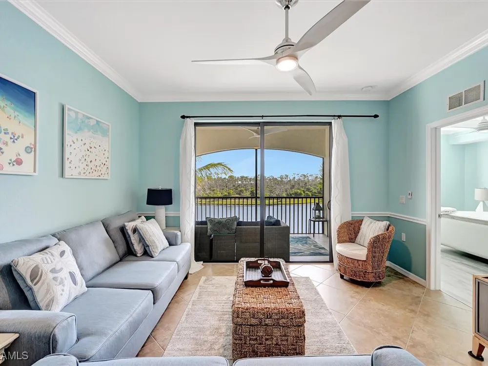 Golf enthusiasts, your dream home awaits! This turnkey, third-floor retreat boasts a highly sought-after, transferable FULL TPC TREVISO BAY GOLF MEMBERSHIP, along with over $80,000 in premium renovations. Enjoy stunning water views from your lanai, bathed in breathtaking southwest sunsets. Inside, discover a completely redesigned open kitchen with custom cabinetry, quartz countertops, and stainless steel appliances. New LVP flooring in the bedrooms and an upgraded primary bathroom with a custom double vanity add to the elegance. Fresh paint, updated millwork, lighting, and impact-resistant windows complete the picture. This 2-bed, 2-bath haven includes a deeded storage room and carport, with a satellite pool just steps away. Treviso Bay's renowned amenities, from an 18-hole TPC golf course to multiple dining options and a full-service spa, are all at your fingertips. Plus, you’re just a short drive to the vibrant heart of Naples, ensuring you can seamlessly balance your passion for golf with the excitement of city life. Live the dream, where every day feels like a vacation.