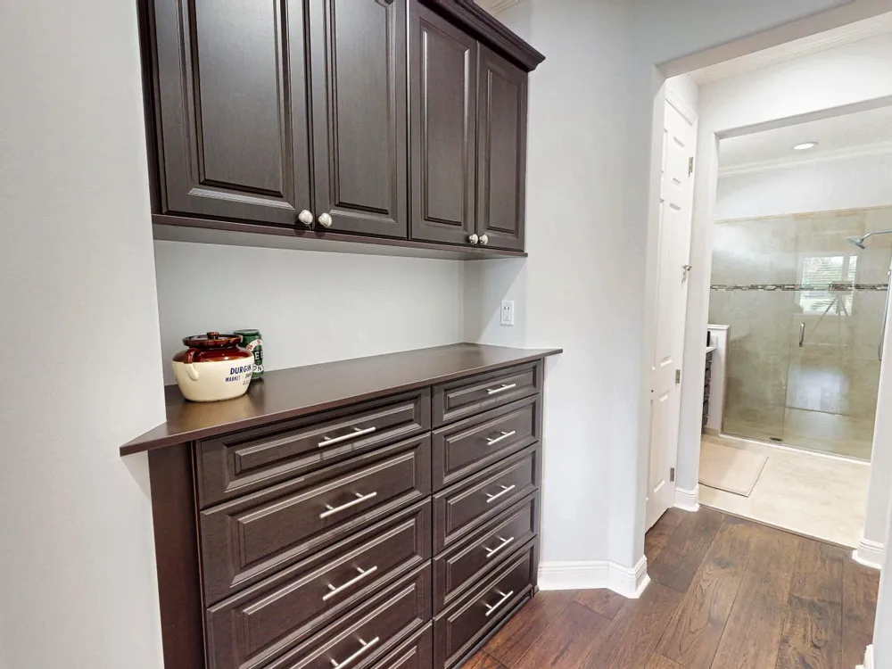 - Closet Cabinetry, Entry Level Living Area, Entrance Foyer, Kitchen Island, Pantry, Walk-In Closet(s), Attic, Home Office, Family Room, Florida Room, Breakfast Area, Family/Dining Room, Eat-in Kitchen, Snack Bar, Dual Sinks, Primary Downstairs