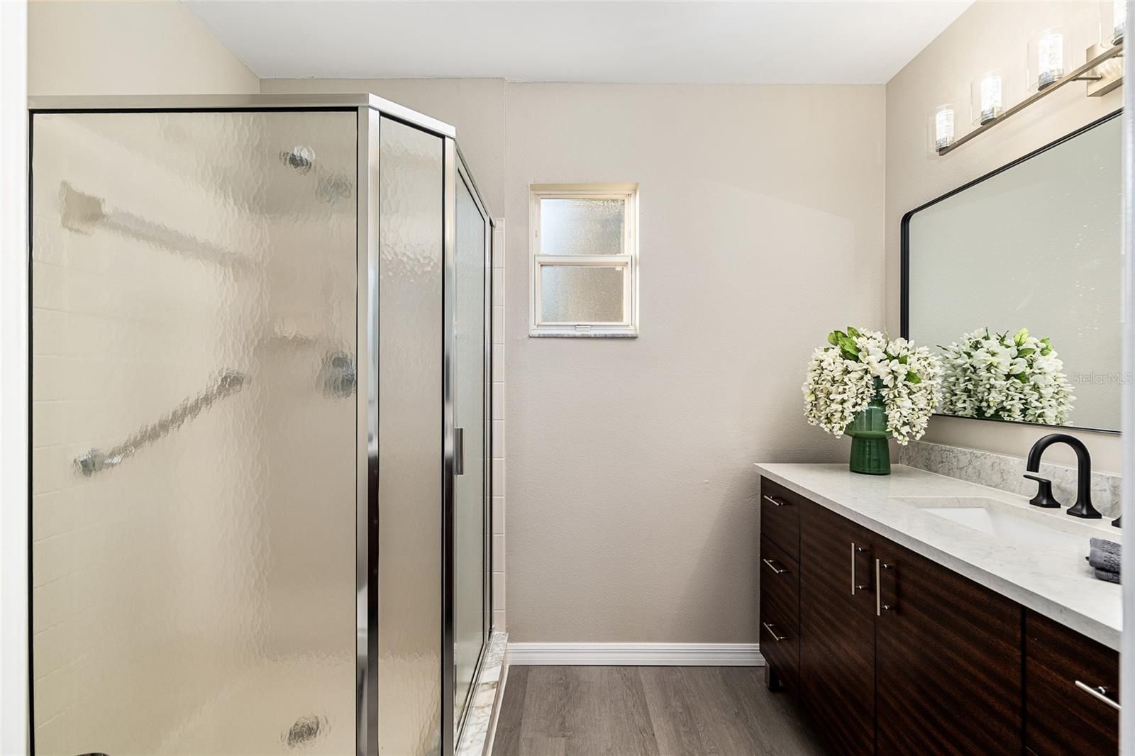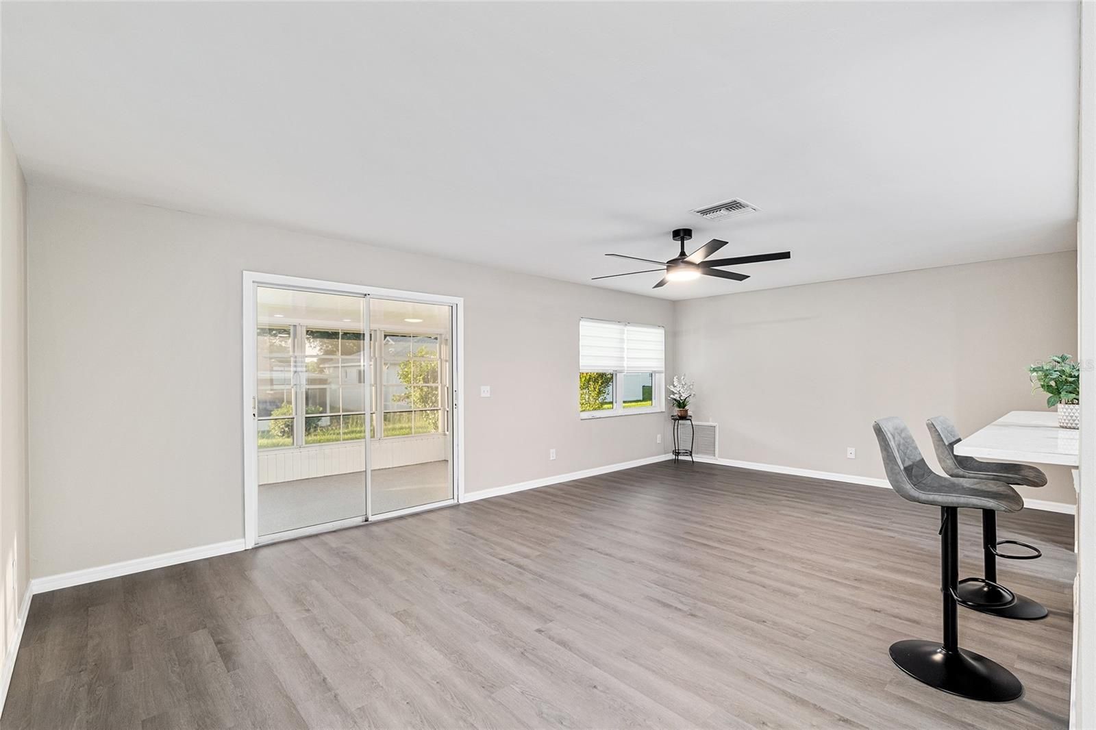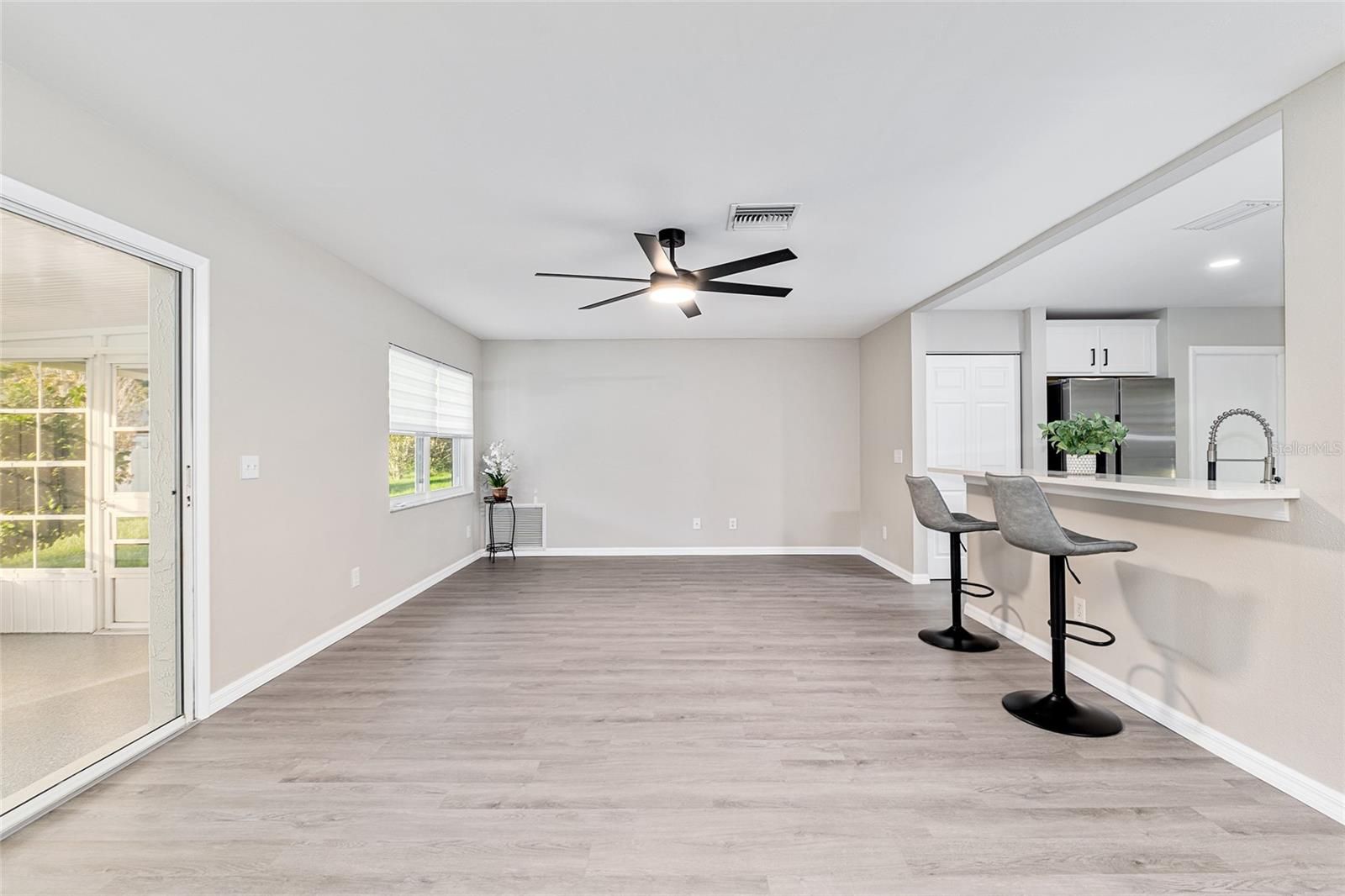 Remodeled and move-in ready, 2-bedroom, 2-bathroom, with a screened in lanai, and a 1.5 car garage Granada floor plan home in the Crescent Ridge area of On Top of the World. Sellers spared no expense when renovating this beautiful home. The home was just painted inside and out, the popcorn ceiling removed and you will fall in love with the beautiful kitchen featuring, quartz countertops, marble backsplash, brand new, top of the line, soft close, white cabinets, new stainless steele appliances, (gas stove); recess lights and fan have been added and half of the wall leading to the living room has been removed, creating a perfect sitting area that makes the home feel more open and bright. A coffee station has also been added next to the breakfast nook. New LVP floors throughout, new fans and new lights in every room; New vanities and mirrors and comfort high toilets. A new Rain Bird system for the sprinklers has been added. New washer. The extra-long garage (34x15.5) allows space for not only a vehicle but can also give you extra storage space. Added benefits of this home include a newer ROOF in 2016, HVAC October 2025, Windows 2007, Epoxy flooring in the garage and lanai. Located in the heart of On Top of the World, a premier 55+ active adult community. This home is close to amenities and features golf cart access to local dining, shopping, entertainment, healthcare, and banking.