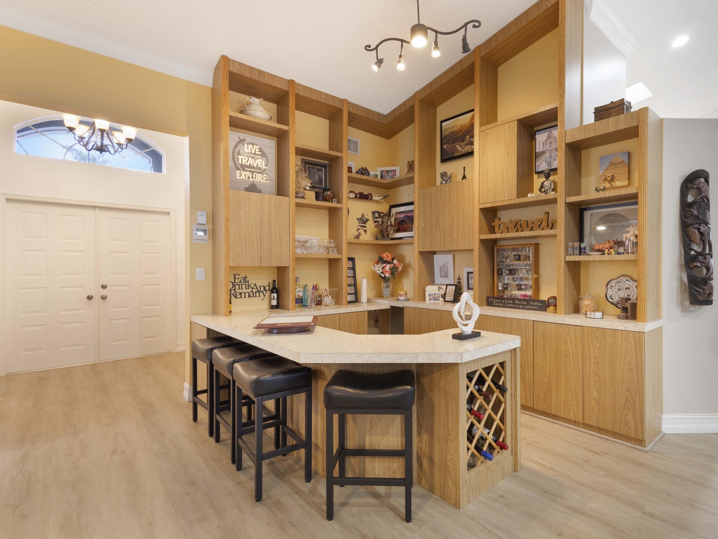 - Bar, Built-in Shelving, Cathedral Ceiling(s), Entry Level Living Area, Pantry, Skylights, Walk-In Closet(s), Attic, Converted Bedroom, Home Office, Breakfast Area, Family/Dining Room, Living/Dining Room, Kitchen/Dining Combo, Separate/Formal Dining Room, Snack Bar, Blinds, Dual Sinks, Separate Shower, Storm Shutters, Washer/Dryer Hookup