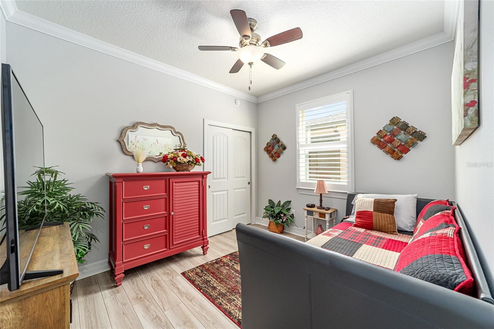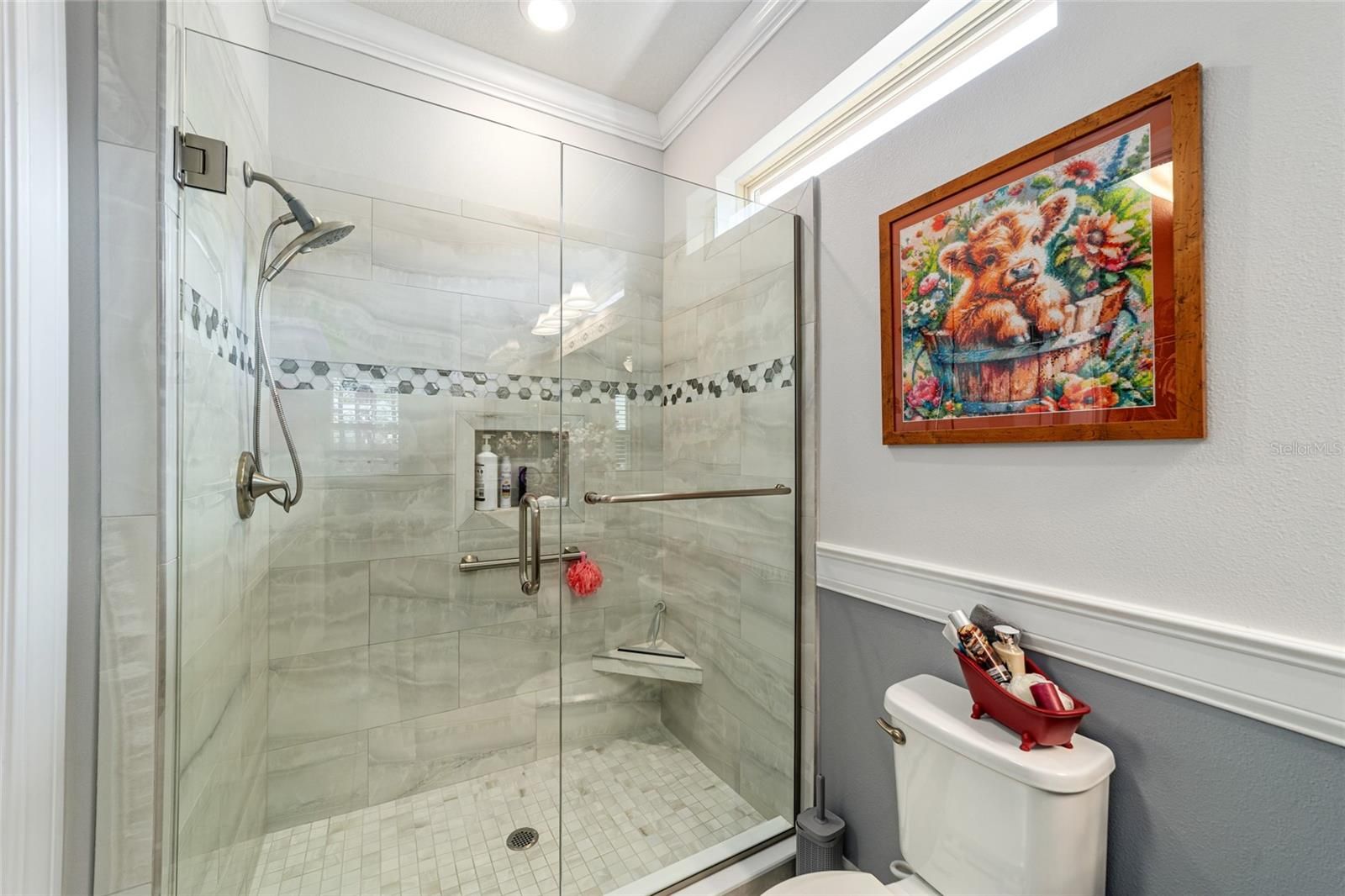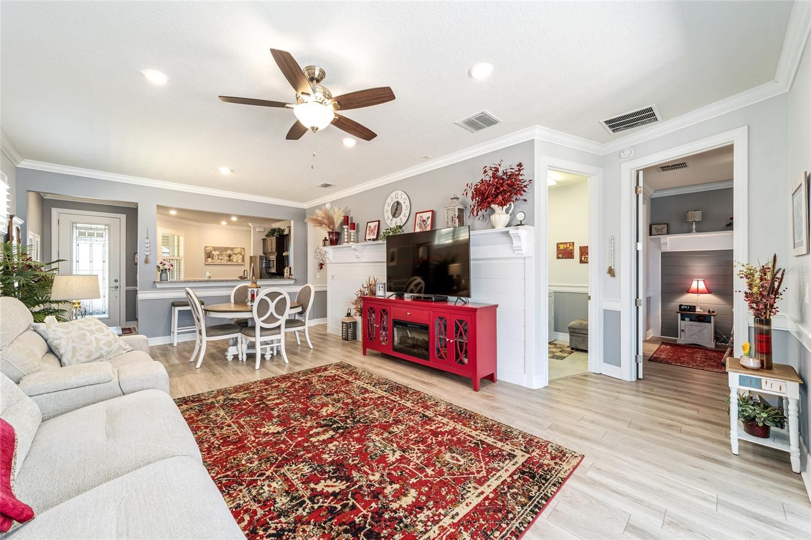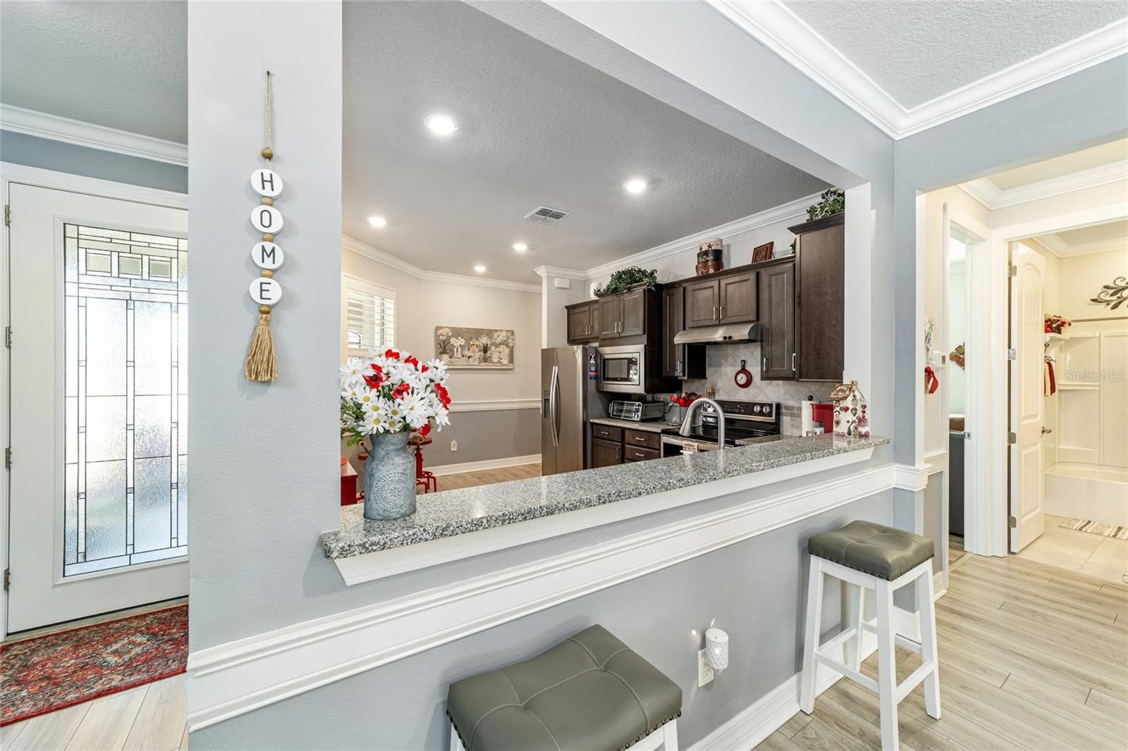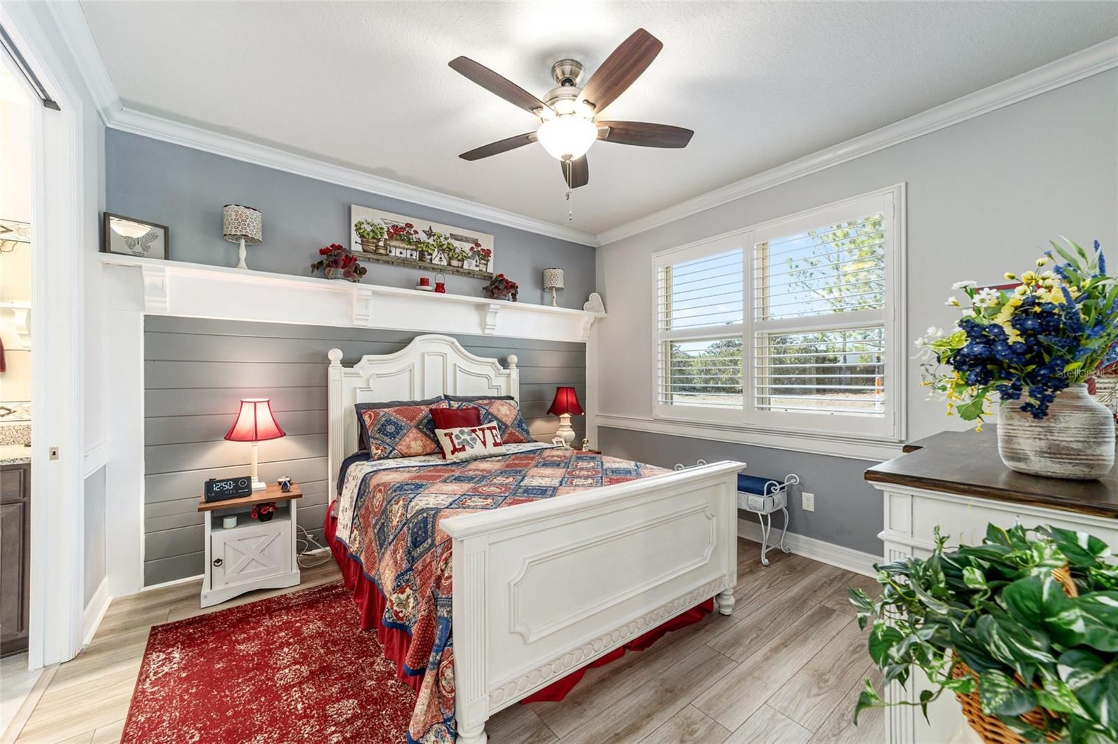 - Built-in Features, Ceiling Fan(s), Chair Rail, Crown Molding, Eat-in Kitchen, High Ceilings, Living/Dining Room, Main Level Primary, Split Bedrooms, Stone Counters, Walk-In Closet(s), Window Treatments