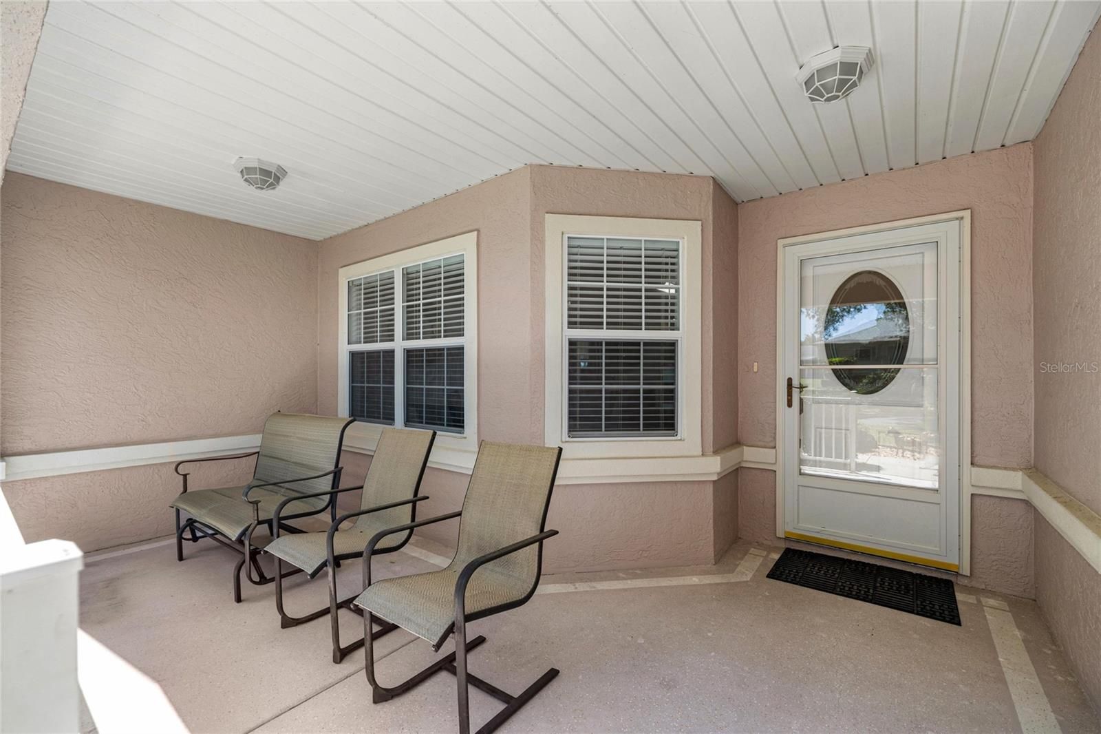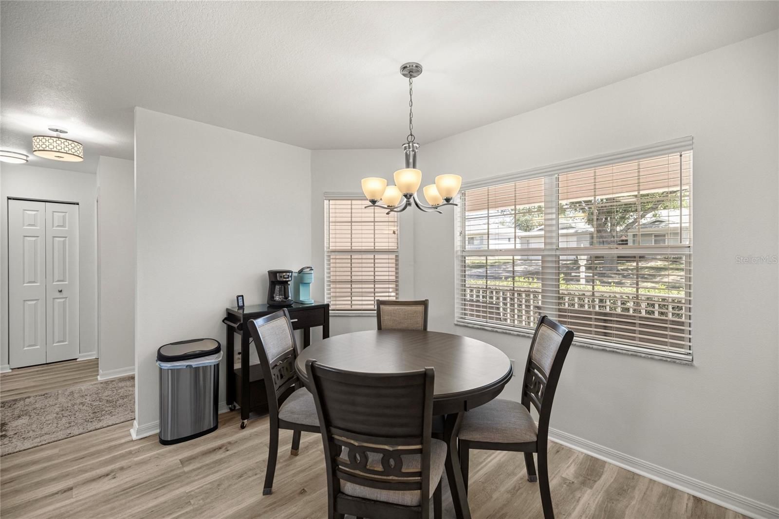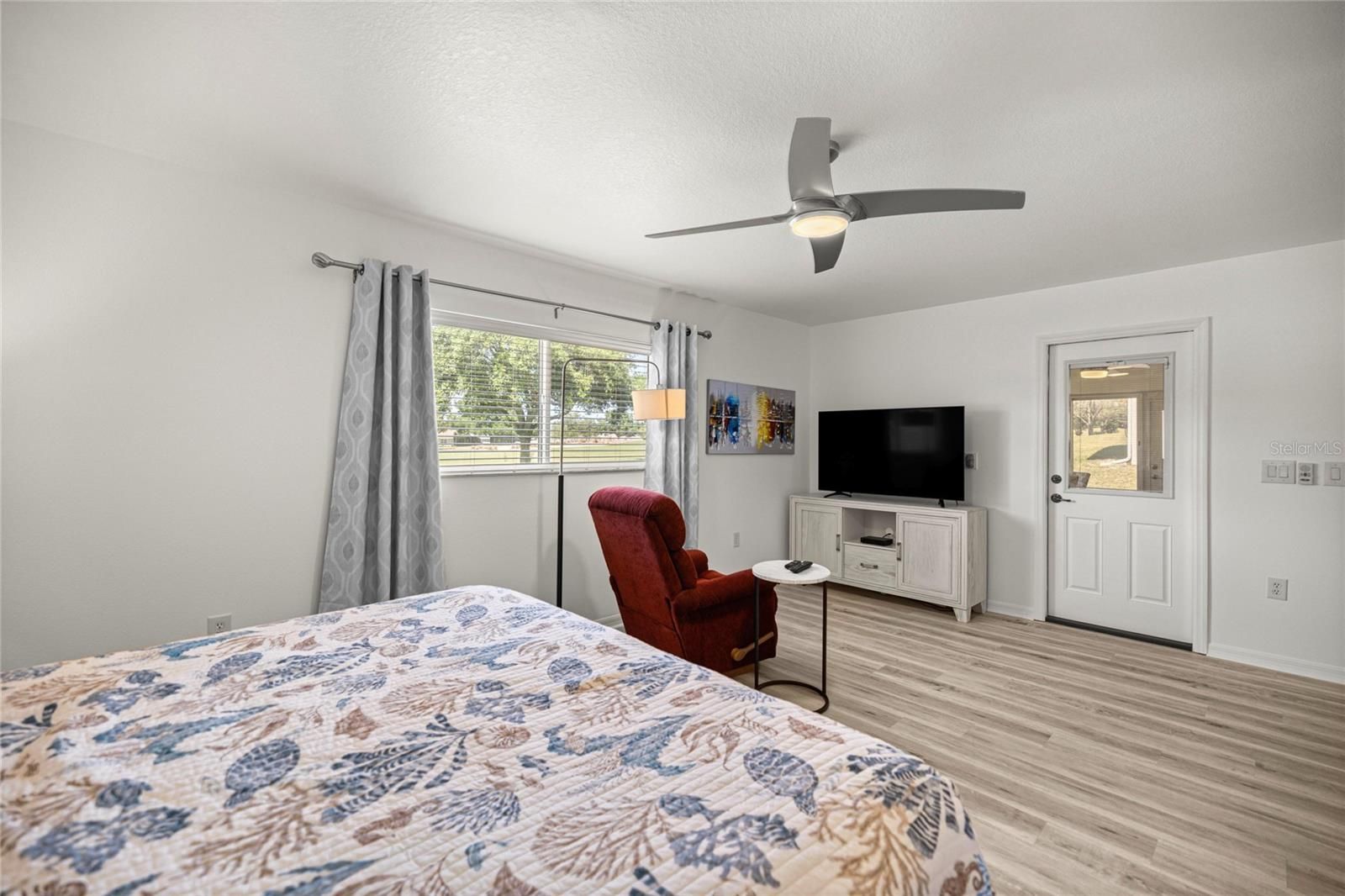 GOLF COURSE VIEW! We welcome you to view this stunning Wyngate model home, ideally located on the third hole of The Links Golf Course on a tree-lined street in the desirable Crescent Green neighborhood. Breathtaking views of the golf course can be seen throughout much of the house. The home features a charming front porch, luxury vinyl plank flooring throughout, neutral interior paint and a new roof installed in 2021. The expansive great room and dining room offer open concept living and flows seamlessly into the enclosed lanai. The split floor plan includes a spacious master suite with two generous walk-in closets. The master bathroom boasts dual vanities with quartz countertops, a large step-in shower and a linen closet. The updated kitchen is equipped with modern cabinetry, quartz countertops, stainless steel appliances, a reverse osmosis system and a cozy breakfast nook. Located in On Top of the World, Ocala’s premier gated 55+ community. Residents enjoy world-class amenities and golf cart access to nearby shopping, dining, and medical facilities. Plus, you’ll be just a short drive from the renowned World Equestrian Center. Schedule your private tour today—please note, verbal offers will not be accepted.
