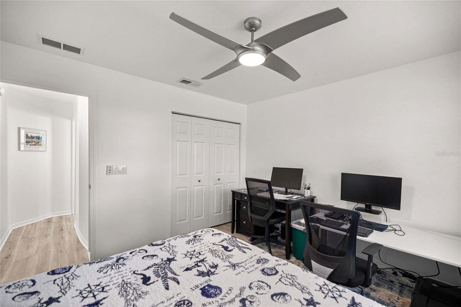- Ceiling Fan(s), Eat-in Kitchen, Living/Dining Room, Solid Surface Counters, Split Bedrooms, Walk-In Closet(s)