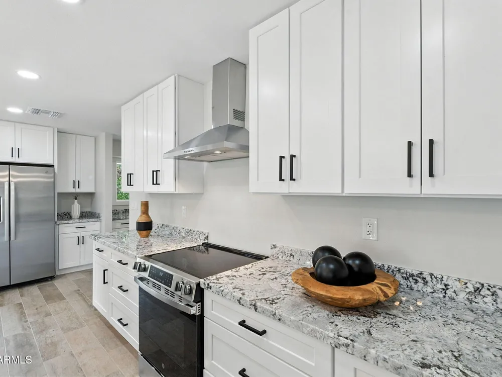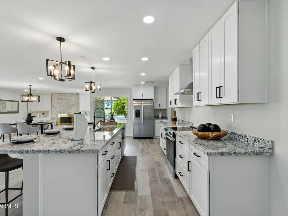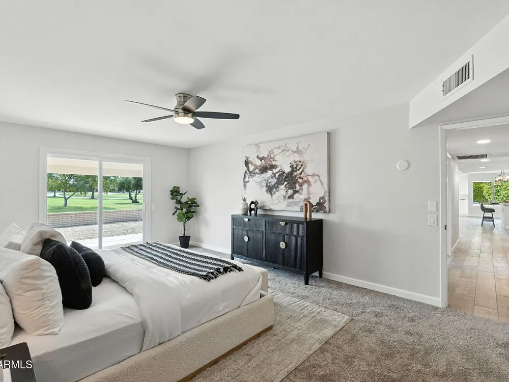 LOCATION, LOCATION, LOCATION. STUNNING REMODEL ON AND EVEN MORE STUNNING LOT. located on Union Hills Golf Club were in a new development this might be the first lot sold! Nestled in a serene cul-de-sac, this unique property sits on a peninsula that extends into Union Hills Golf Club, offering unparalleled views and privacy. With the 9th green and fairway on one side, the 10th tee box and fairway on the other, stunning mountain views straight ahead, and adjacent to the clubhouse, this is a golfer's dream location. Inside you will find new kitchen with white shaker cabinets, stainless appliances, and granite counters. A/C 2025. Windows and Sliders replaced 2025. Roof 2019. New tile throughout with carpet in the bedrooms. Outside you will find a huge screened in patio