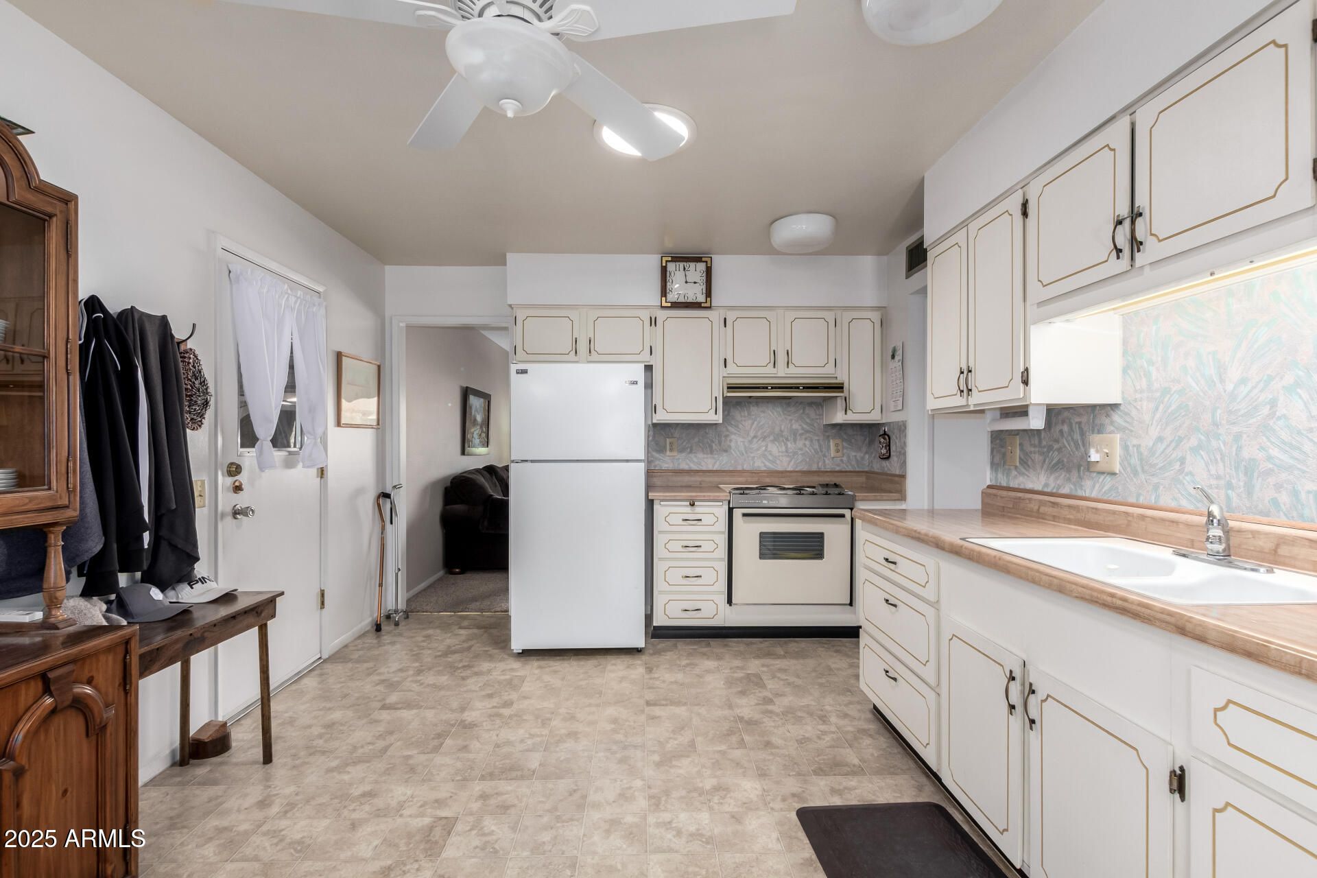 2 bedroom, 2 bathroom home featuring a spacious Eat-in kitchen and an enclosed Arizona room for added living space. Both bedrooms offer walk-in closets. Newer roof replaced in 2021, dual pane windows throughout. Conveniently located near Quail Run Golf Course, with easy access to nearby amenities & close to 101.