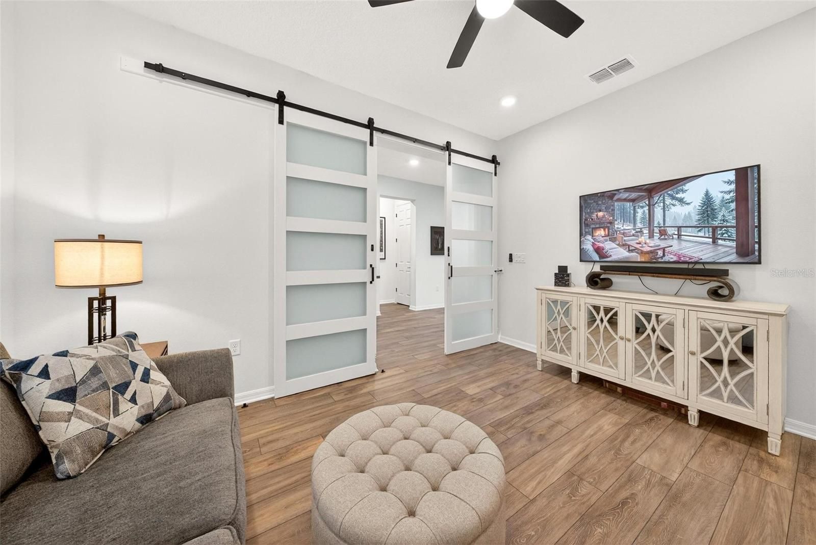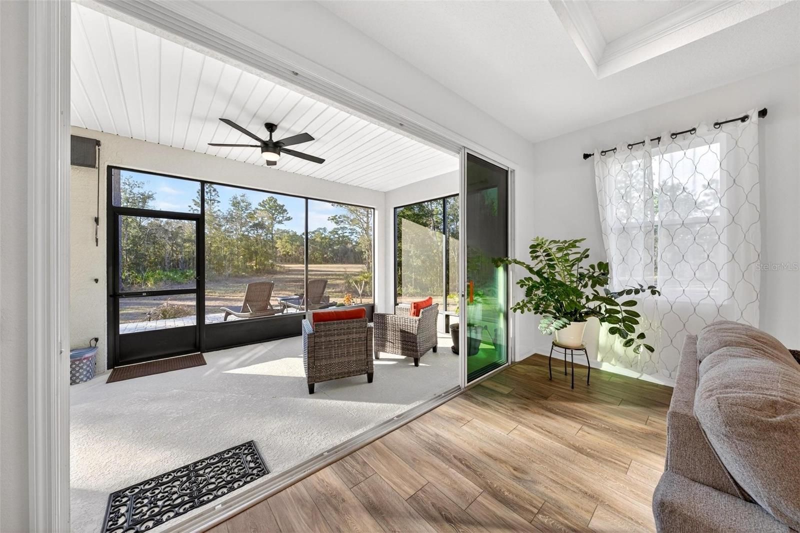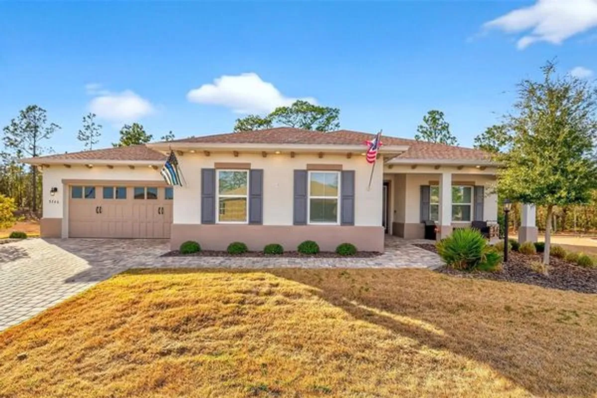 Set on a rare .32-acre privacy lot backing to a tranquil wooded preserve, this gently lived-in Magnolia model offers a peaceful retreat in On Top of the World’s desirable Longleaf Ridge, where privacy and community come together. Inside, expansive rear windows fill the home with natural light while framing serene, wooded views, creating a seamless connection to the outdoors and an ideal setting for birdwatching. The thoughtfully designed floor plan includes a primary suite with en-suite bath, a guest bedroom with a private bath, a den well-suited for a home office or quiet sitting room, an additional flex space ideal for hobbies or reading, and a convenient half bath for guests. The light and bright kitchen features quartz countertops with a coordinating backsplash, two-tone and soft close cabinetry with dedicated spice storage, stainless steel appliances, under-cabinet lighting, and a walk-in pantry. Luxury vinyl plank flooring flows throughout the home, complemented by a tray ceiling in the living room, ceiling fans, and a whole-home water softener system. Step outside to an extended patio overlooking the preserve, perfect for relaxing and enjoying the peaceful surroundings. The expanded garage includes a full two-car garage plus a separate golf cart bay, along with a built-in workbench and additional storage. Residents enjoy an unmatched lifestyle with golf-cart access to shopping, dining, swimming, clubs, pickleball, mini golf, dog parks, and more. This private, move-in-ready home offers an ideal blend of comfort, flexibility, and setting in one of Ocala’s most sought-after communities. Schedule your private tour today!