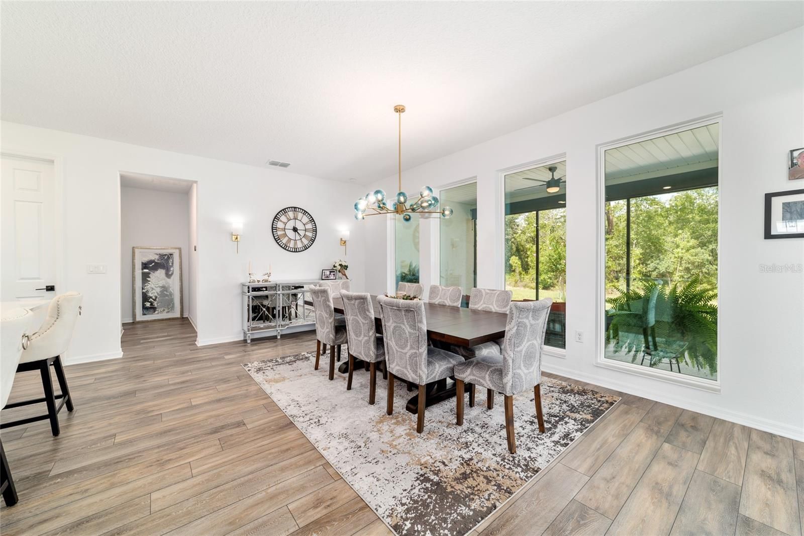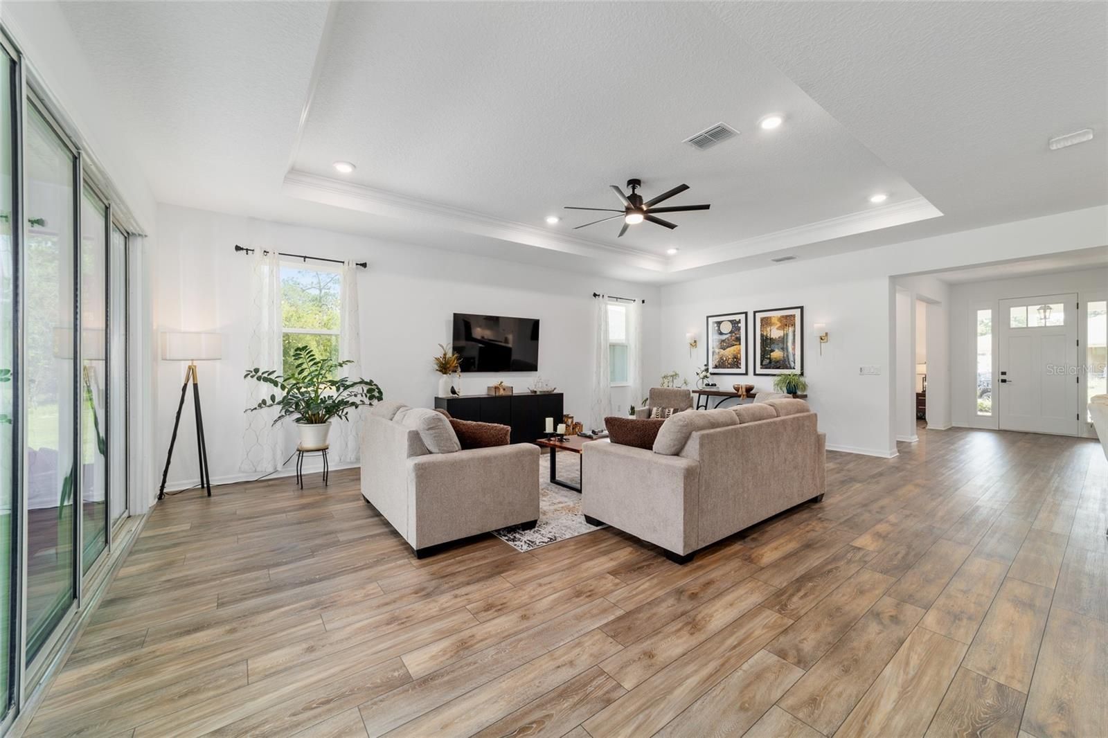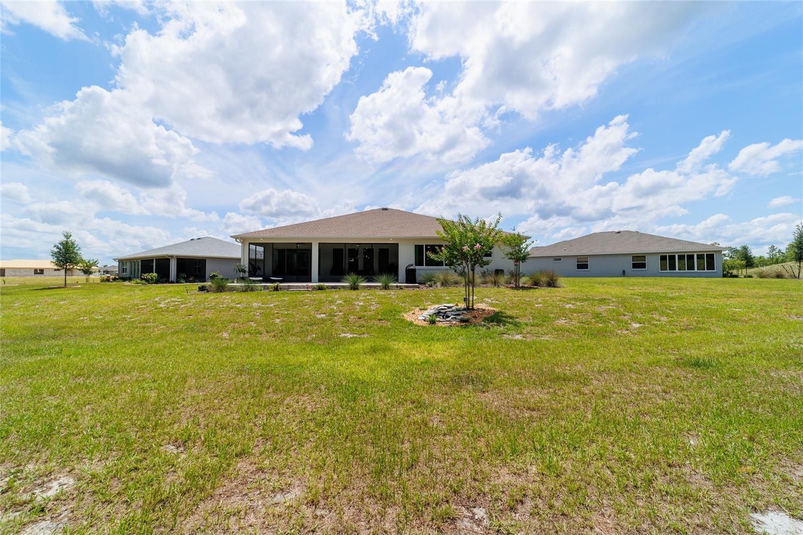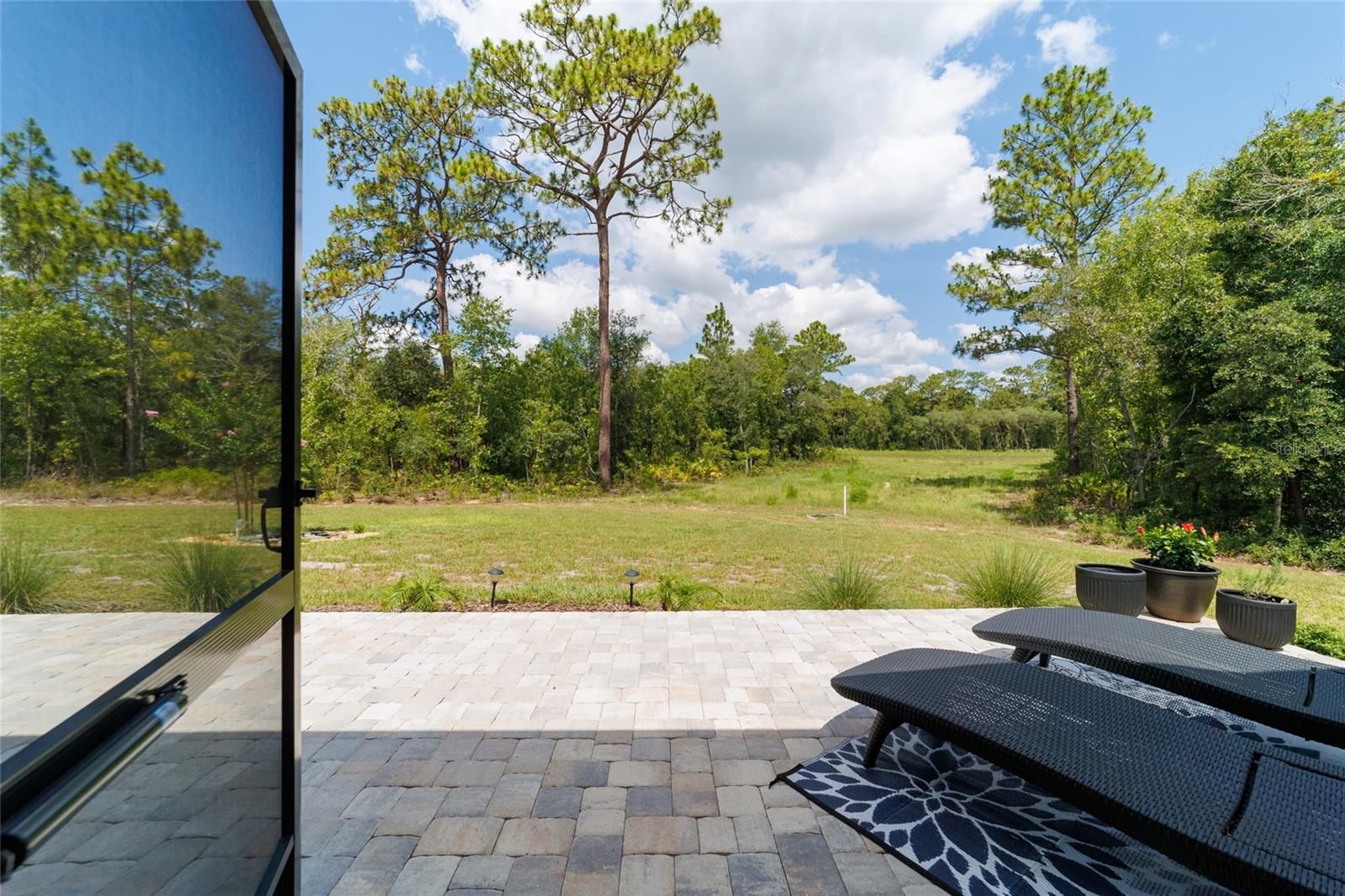 Privacy Lot on .32 Acres in On Top of the World's Longleaf Ridge! Built in 2023 and owner-occupied since January 2024, this beautifully upgraded Magnolia model offers views of a private wooded area—you never know what wildlife will stop by the watering hole. Inside, the spacious open-concept layout features two en-suite bedrooms as well as a convenient hallway half bath. The home includes two versatile flex spaces that add maximum flexibility to your Florida living — one located at the front of the home currently used as a cozy den, and the second set up as an office that could easily serve as a reading nook or hobby space. The expanded 2.5-car garage includes a golf cart parking area, built-in workbench, and additional storage, maximizing functionality. The gourmet kitchen boasts quartz countertops and a seamless backsplash, two-tone cabinetry, built-in oven and microwave, stainless steel appliances, under-cabinet lighting, gold fixtures, soft-close cabinets, and a dedicated spice drawer. Expansive windows along the rear of the home fill the living areas with natural light and showcase tranquil wooded views. Upgrades throughout include tray ceilings, LVP flooring, a great room bump-out, extended patio, ceiling fans, gutters, and a whole-home water softener system. Curbside trash service is also included. Enjoy a prime location near the new Summit Clubhouse (currently under construction), The Arbors, and the Recreation Center. There’s always something to do at On Top of the World—from swimming, clubs, and pickleball to mini golf and dog parks. Located in Ocala’s premier 55+ golf cart community, residents enjoy access to two shopping centers by golf cart. Bonus: The home’s furnishings, a Predator 9500/Max30 portable whole-house generator, and a natural gas grill are available for separate purchase. Schedule your showing today to experience this stunning, private Longleaf Ridge home!