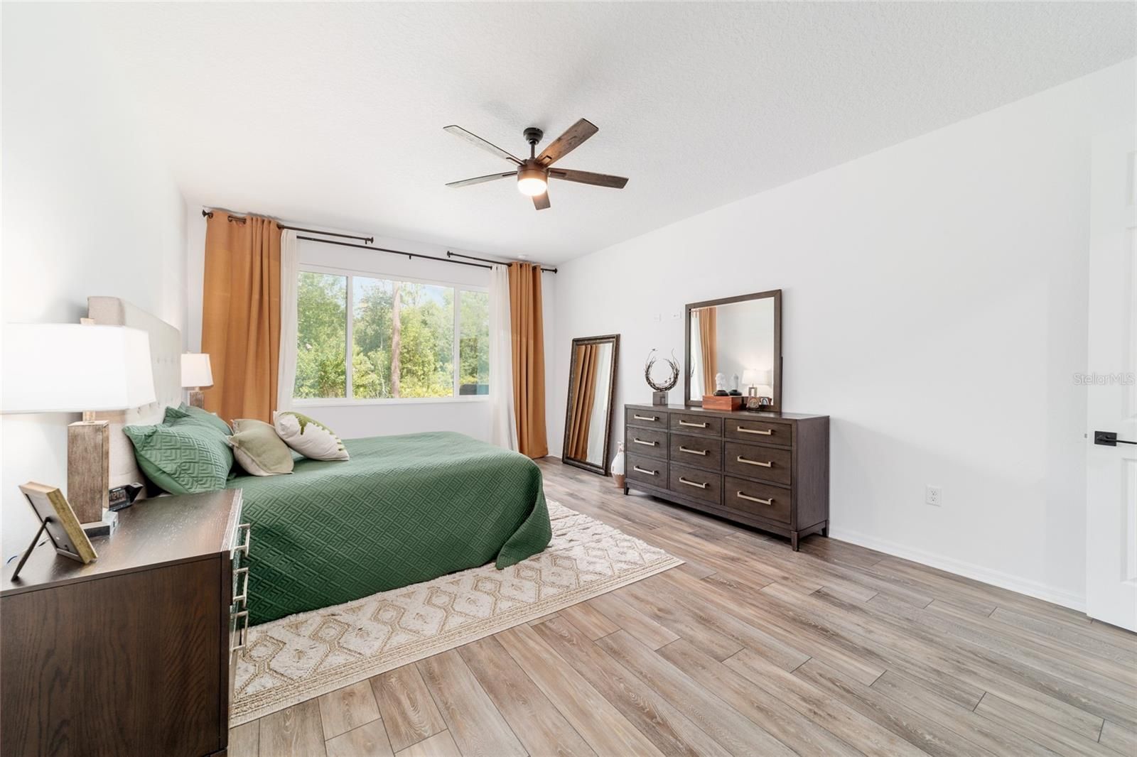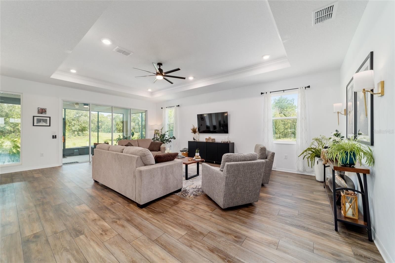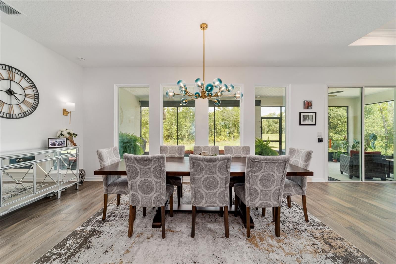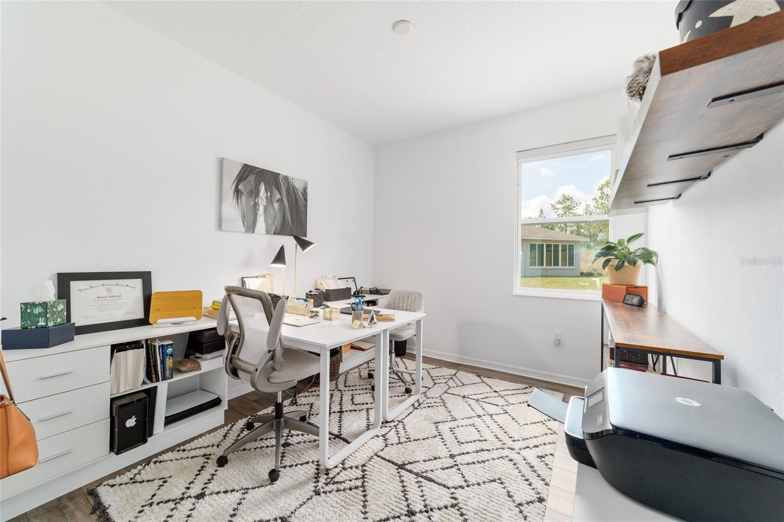 Privacy Lot on .32 Acres in On Top of the World's Longleaf Ridge! Built in 2023 and owner-occupied since January 2024, this beautifully upgraded Magnolia model offers views of a private wooded area—you never know what wildlife will stop by the watering hole. Inside, the spacious open-concept layout features two en-suite bedrooms as well as a convenient hallway half bath. The home includes two versatile flex spaces that add maximum flexibility to your Florida living — one located at the front of the home currently used as a cozy den, and the second set up as an office that could easily serve as a reading nook or hobby space. The expanded 2.5-car garage includes a golf cart parking area, built-in workbench, and additional storage, maximizing functionality. The gourmet kitchen boasts quartz countertops and a seamless backsplash, two-tone cabinetry, built-in oven and microwave, stainless steel appliances, under-cabinet lighting, gold fixtures, soft-close cabinets, and a dedicated spice drawer. Expansive windows along the rear of the home fill the living areas with natural light and showcase tranquil wooded views. Upgrades throughout include tray ceilings, LVP flooring, a great room bump-out, extended patio, ceiling fans, gutters, and a whole-home water softener system. Curbside trash service is also included. Enjoy a prime location near the new Summit Clubhouse (currently under construction), The Arbors, and the Recreation Center. There’s always something to do at On Top of the World—from swimming, clubs, and pickleball to mini golf and dog parks. Located in Ocala’s premier 55+ golf cart community, residents enjoy access to two shopping centers by golf cart. Bonus: The home’s furnishings, a Predator 9500/Max30 portable whole-house generator, and a natural gas grill are available for separate purchase. Schedule your showing today to experience this stunning, private Longleaf Ridge home!