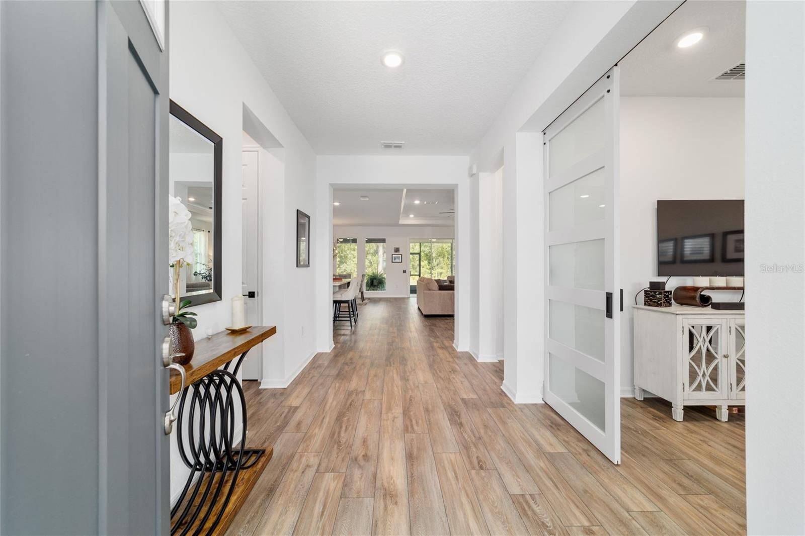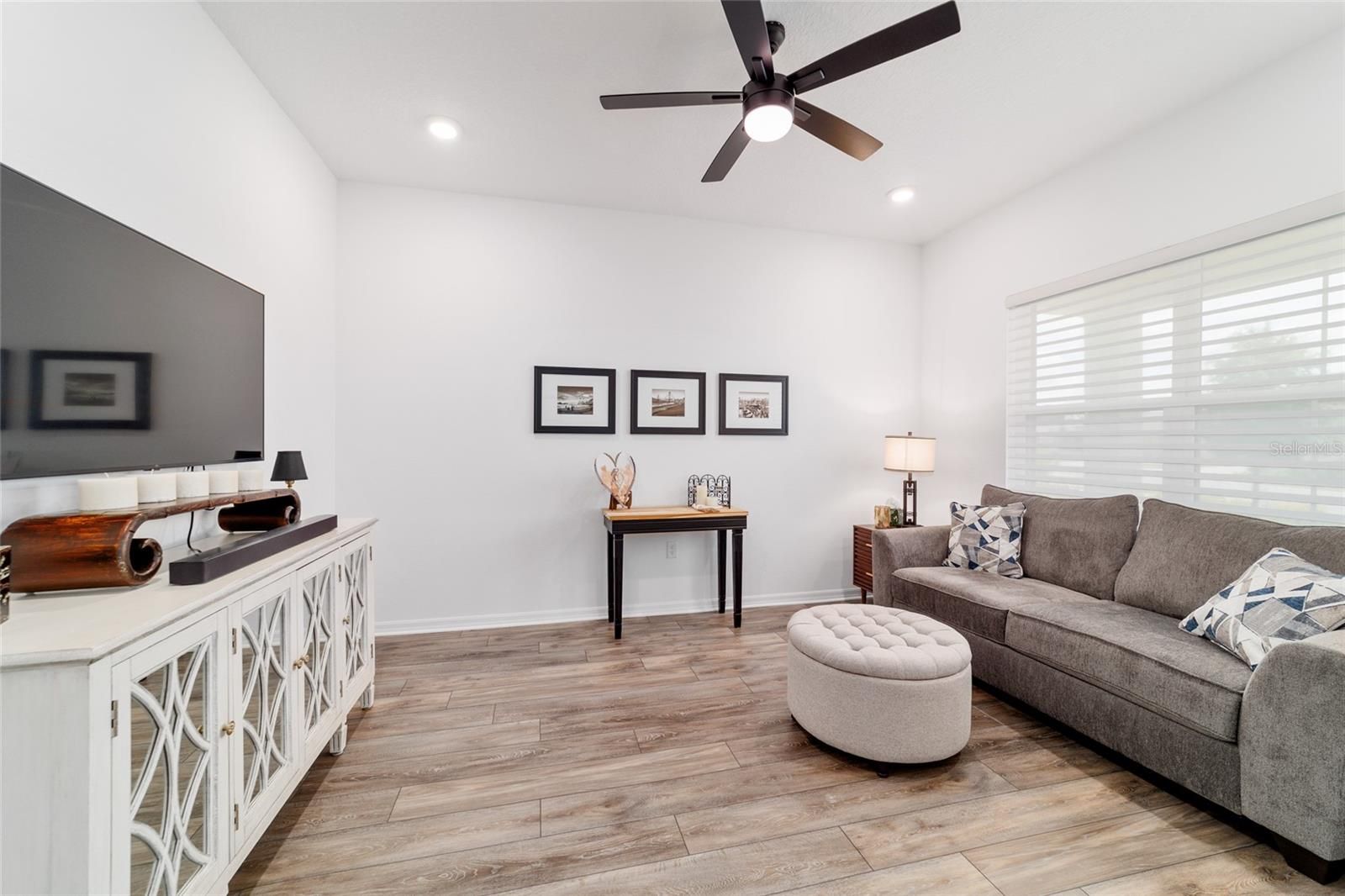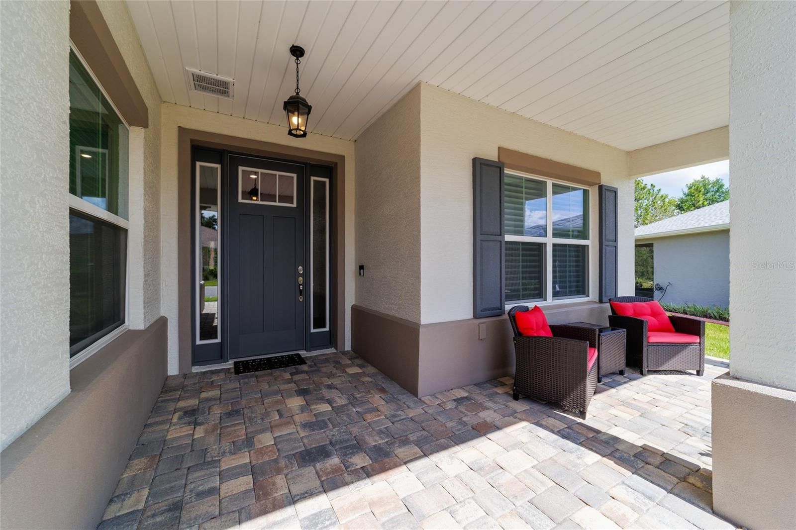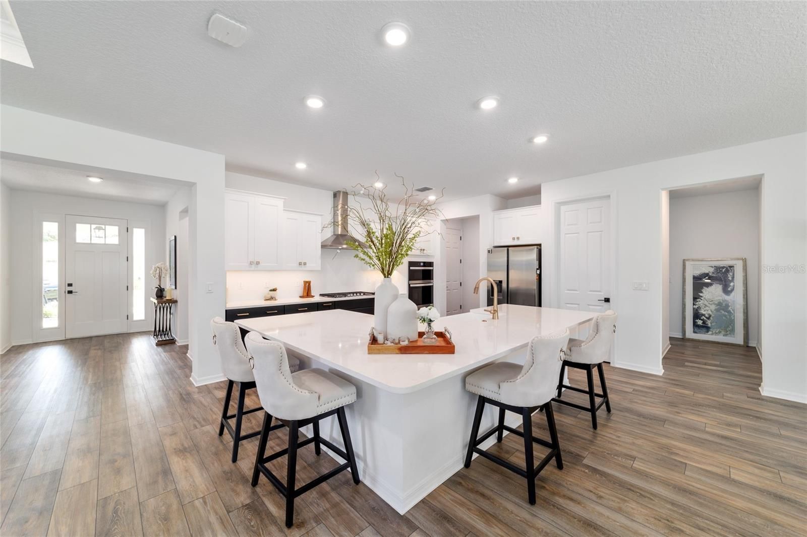 Privacy Lot on .32 Acres in On Top of the World's Longleaf Ridge! Built in 2023 and owner-occupied since January 2024, this beautifully upgraded Magnolia model offers views of a private wooded area—you never know what wildlife will stop by the watering hole. Inside, the spacious open-concept layout features two en-suite bedrooms as well as a convenient hallway half bath. The home includes two versatile flex spaces that add maximum flexibility to your Florida living — one located at the front of the home currently used as a cozy den, and the second set up as an office that could easily serve as a reading nook or hobby space. The expanded 2.5-car garage includes a golf cart parking area, built-in workbench, and additional storage, maximizing functionality. The gourmet kitchen boasts quartz countertops and a seamless backsplash, two-tone cabinetry, built-in oven and microwave, stainless steel appliances, under-cabinet lighting, gold fixtures, soft-close cabinets, and a dedicated spice drawer. Expansive windows along the rear of the home fill the living areas with natural light and showcase tranquil wooded views. Upgrades throughout include tray ceilings, LVP flooring, a great room bump-out, extended patio, ceiling fans, gutters, and a whole-home water softener system. Curbside trash service is also included. Enjoy a prime location near the new Summit Clubhouse (currently under construction), The Arbors, and the Recreation Center. There’s always something to do at On Top of the World—from swimming, clubs, and pickleball to mini golf and dog parks. Located in Ocala’s premier 55+ golf cart community, residents enjoy access to two shopping centers by golf cart. Bonus: The home’s furnishings, a Predator 9500/Max30 portable whole-house generator, and a natural gas grill are available for separate purchase. Schedule your showing today to experience this stunning, private Longleaf Ridge home!