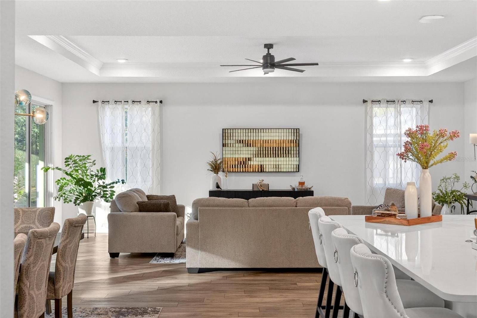 - Ceiling Fan(s), Crown Molding, High Ceilings, Open Floorplan, Main Level Primary, Smart Home, Stone Counters, Tray Ceiling(s), Walk-In Closet(s)