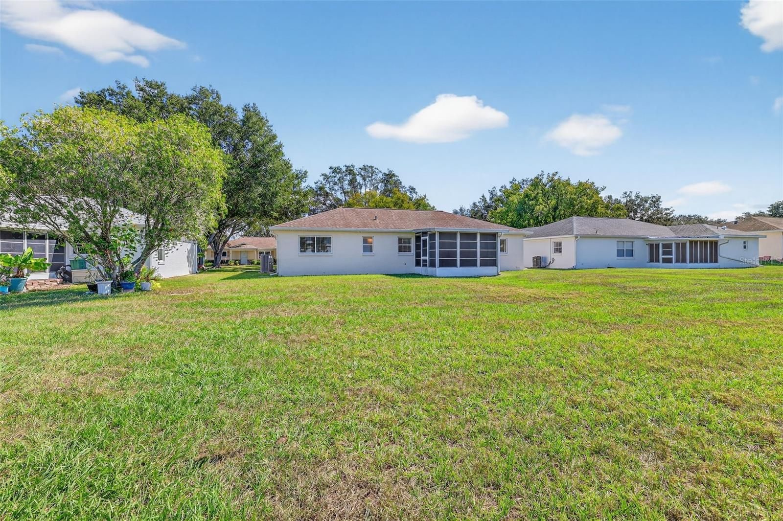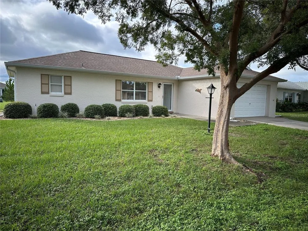 Beautifully maintained single family home with extra large backyard. This home is being sold turnkey! Bring your clothes and move in on closing day. Home features 2 generously sized bedrooms located on separate sides of the home, large living room and stunning eat in kitchen. All appliances convey including refrigerator and washer/dryer. Home features a 1.5 car garage with extra storage space on either side. Plenty of room for a car and a golf cart! A rear enclosed Florida room rounds out this beauty for your four season living. Home is priced to sell quick so don't delay! Roof 2018 and HVAC 2021. All of this and located inside one of the greatest 55+ community On Top of the World. HOA includes Basic Spectrum Cable, roof repairs, exterior painting every seven years, irrigation water, exterior maintenance and insurance on the exterior of the home, landscaping, trash and recycling, 24/7 gated security, and access to all of On Top of the World’s resort-style amenities. Enjoy three pools (one indoor pool), two state-of-the-art fitness centers, pickleball, billiards, archery, cornhole, bocce ball, tennis, shuffleboard, horseshoes, remote-control flying and race car fields, 175+ clubs, a woodworking shop (small additional fee), art, sewing, library, and more! This golf-cart-friendly community offers convenient access to three shopping centers, is just 20 minutes from the World Equestrian Center, an easy drive to four cruise ports and major airports, and within close proximity to Orlando’s top entertainment and attractions.