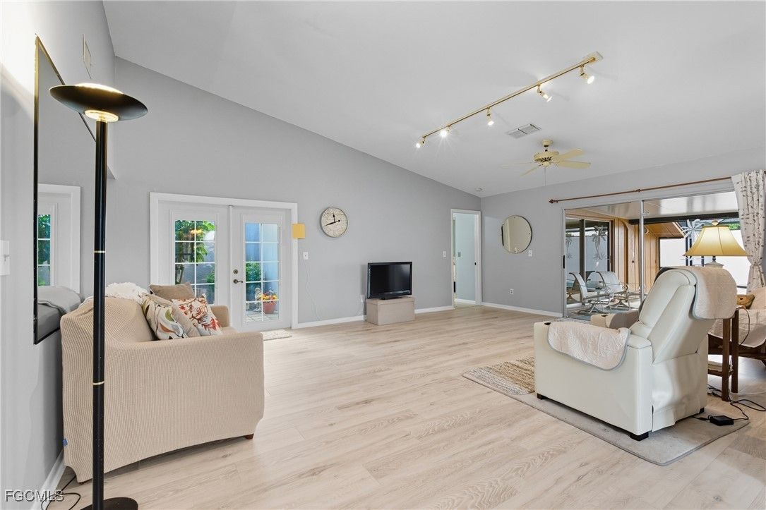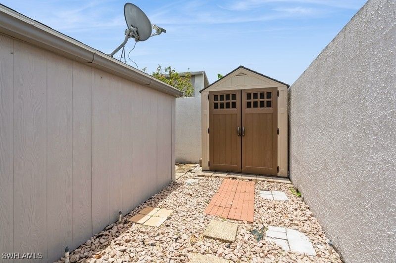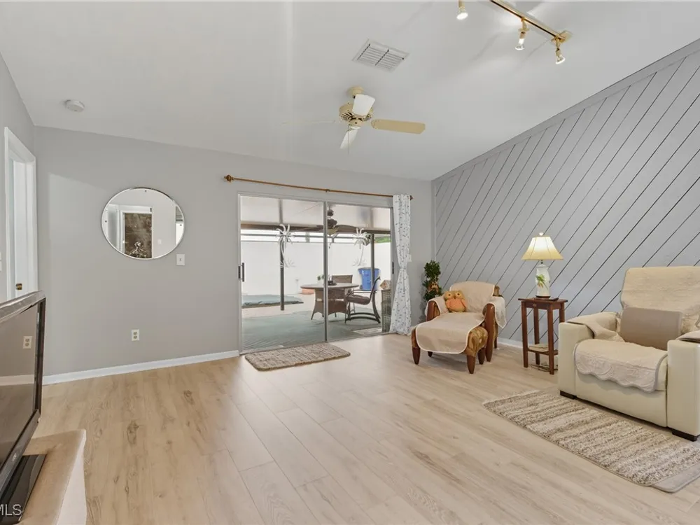 Welcome to your large spacious home in Woodcrest Village. This fabulous Pet Friendly 55 + community is centrally located in Lehigh Acres. Shopping, Post Office, and restaurants are nearby. With nearly 1900 sq ft of living space, you will have plenty of room for relaxing, crafting, exercising, or enjoying a great book. Step out back into your private oasis. The large screened-in lanai offers both a covered and uncovered area. Perfect for enjoying a peaceful cup of morning coffee or an evening cocktail without the summertime pests. Inside you will find 3 spacious bedrooms, upgraded guest bath, both a living and family room, and a beautiful dining room overlooking the community pool. Storage is not an issue with 2 sheds, a tool room and an indoor laundry. Just off the living room, is a beautiful outdoor atrium. Great for tropical Florida flowers, butterfly garden, or a lovely sitting area. The kitchen features a gas cooktop, gas wall oven, large pantry and ample counterspace. A rare find in this community... This home was the model home when the community was built so the garage has been converted to extra living space. Best of all, Seller is paying for a 1 yr Home Warranty for the new Buyer! Whether you are downsizing or just ready for a lifestyle upgrade, this home offers comfort, convenience and a welcoming community vibe. Come see it for yourself!