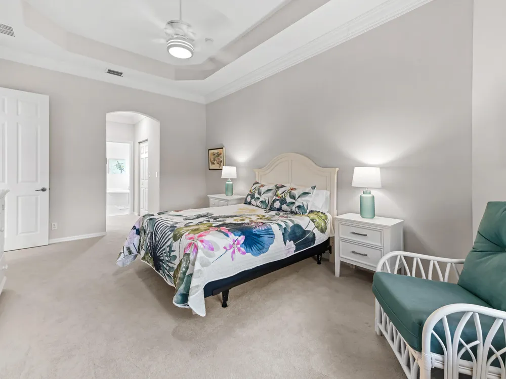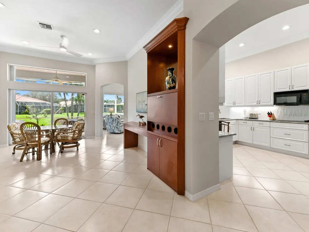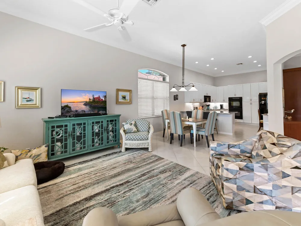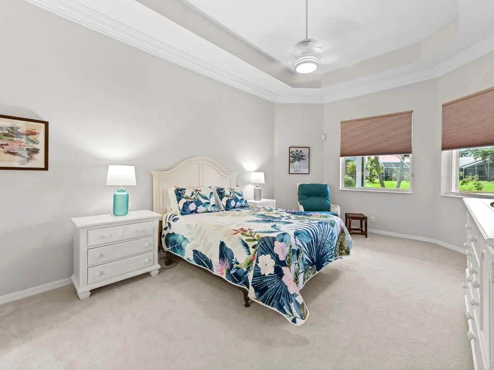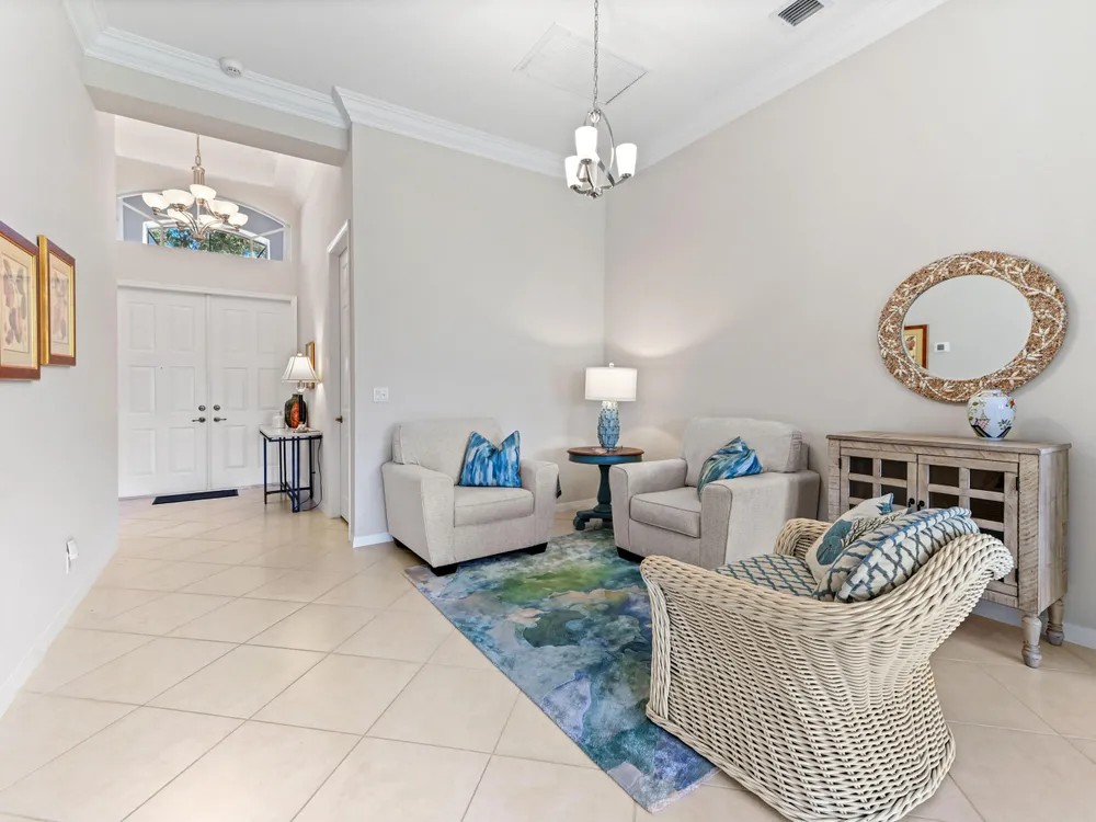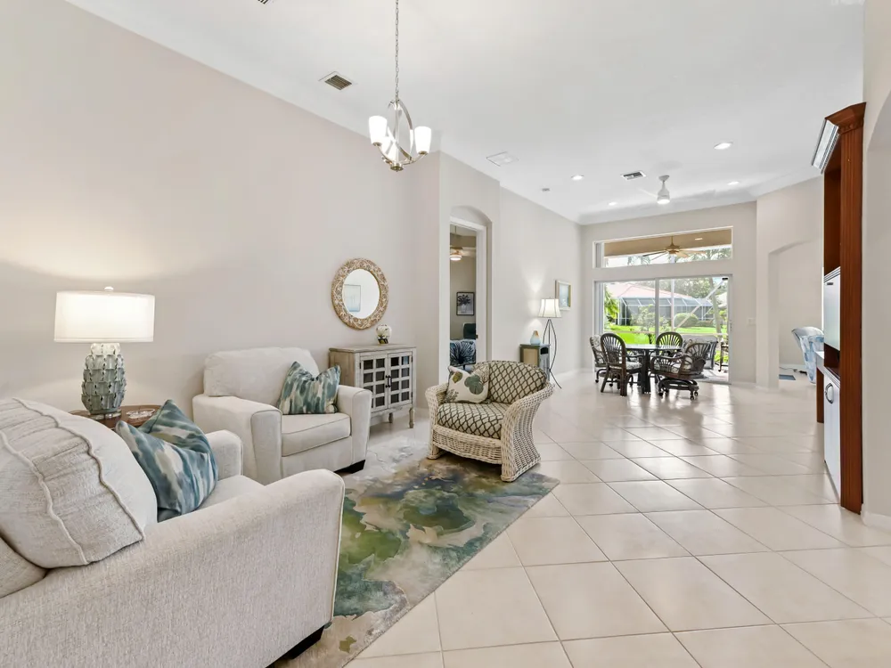 This beautiful residence offers the epitome of the Bellaggio lifestyle, combining modern comfort with stunning water views!Prepare to be captivated by the picturesque, south-facing lake views from this meticulously maintained Novara model. Boasting over 2,000 square feet of air-conditioned living space, this spacious home is bathed in natural light and features high ceilings complemented by elegant crown molding throughout. The entire interior is painted in a light, neutral color, offering a fresh, bright, and move-in-ready feel. Adding to its appeal, the main living areas feature beautiful tile flooring laid on the diagonal, enhancing the expansive, open design.