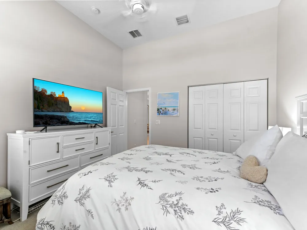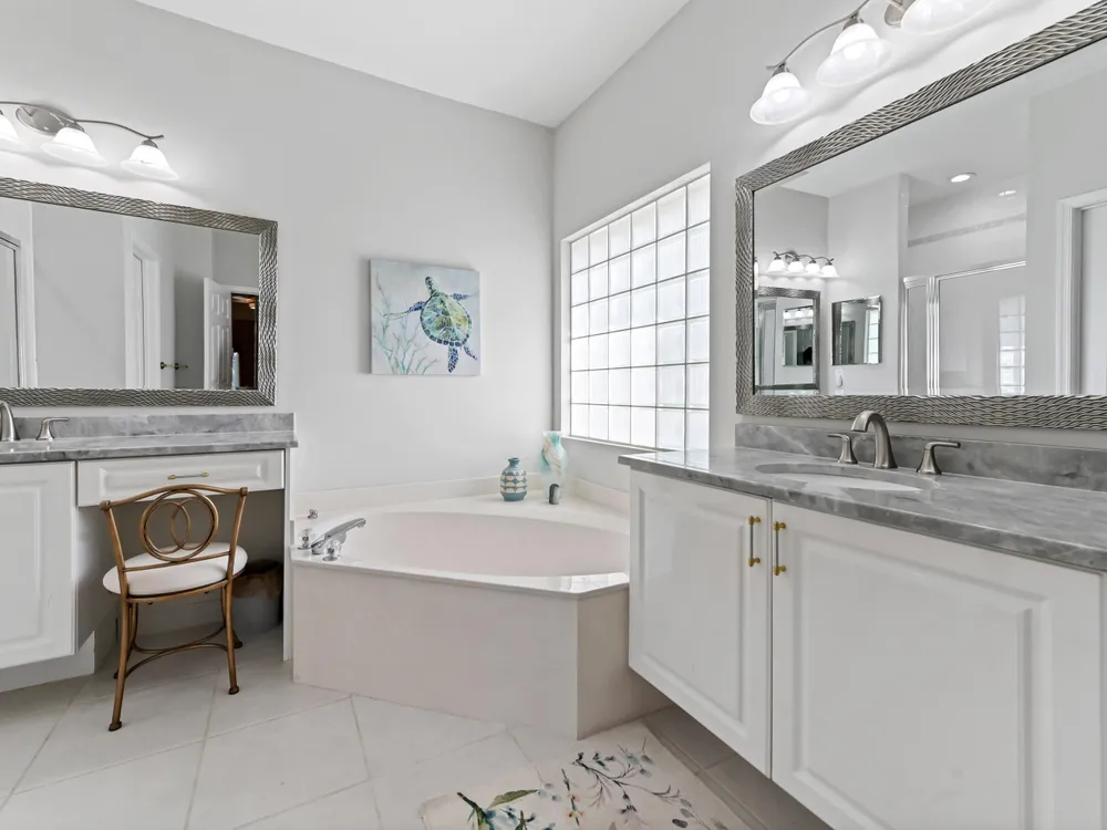 - Cathedral Ceiling(s), Entry Level Living Area, Garden Tub/Roman Tub, Split Bedrooms, High Ceilings, Walk-In Closet(s), Home Office, Family Room, Great Room, Living/Dining Room, Bay Window, Blinds, Dual Sinks, Primary Downstairs, Sitting Area In Primary Bedroom, Separate Shower, Storm Shutters